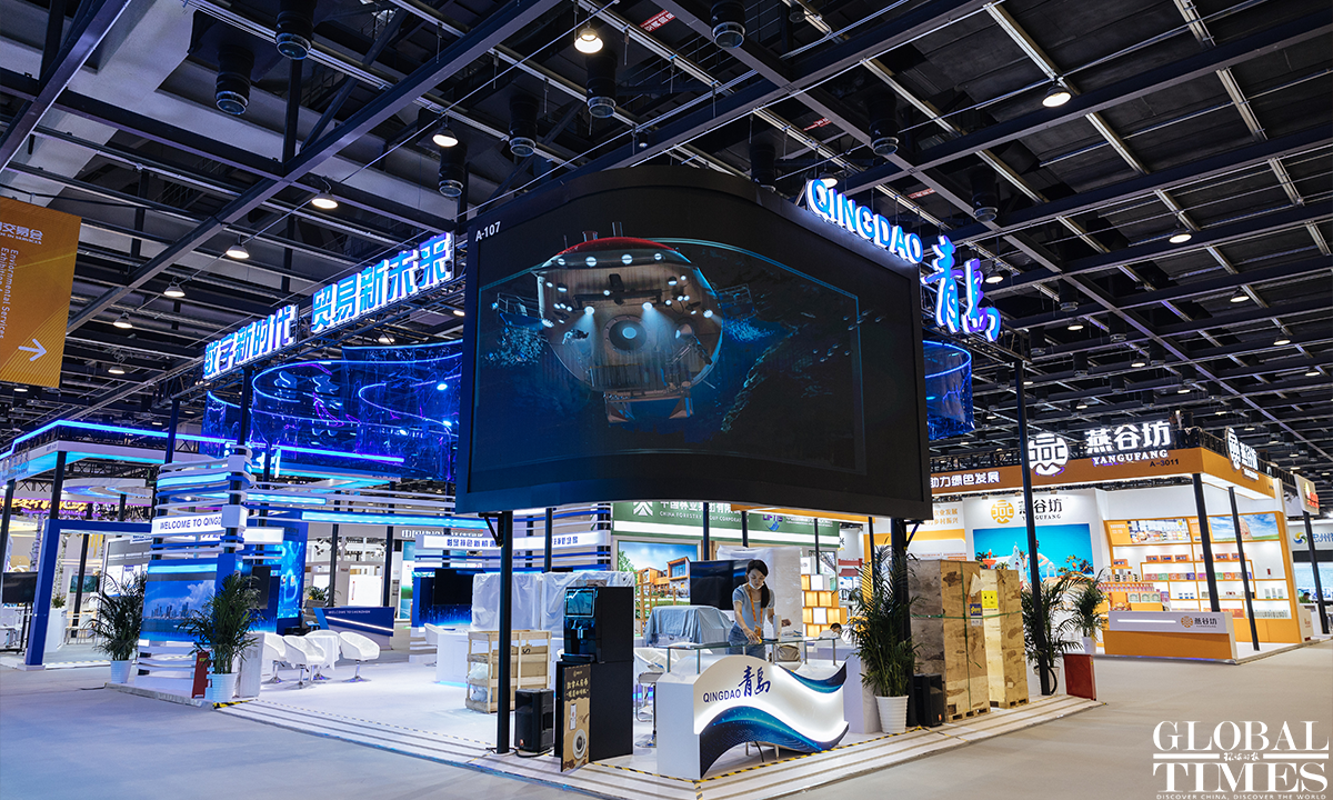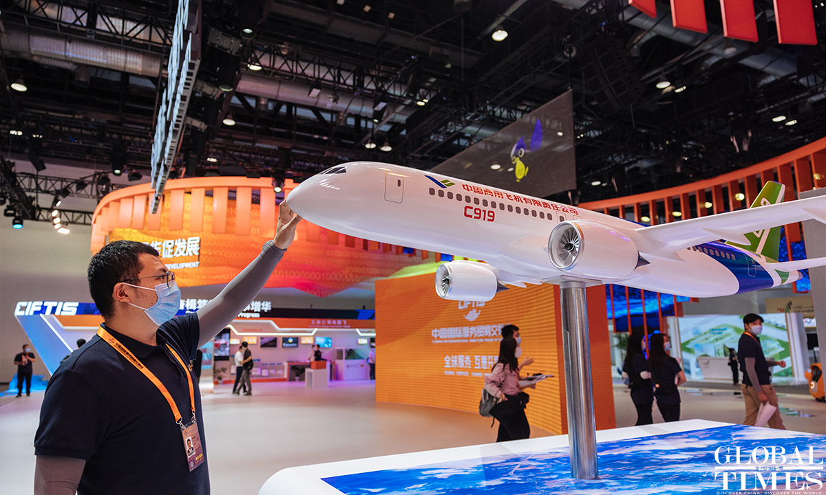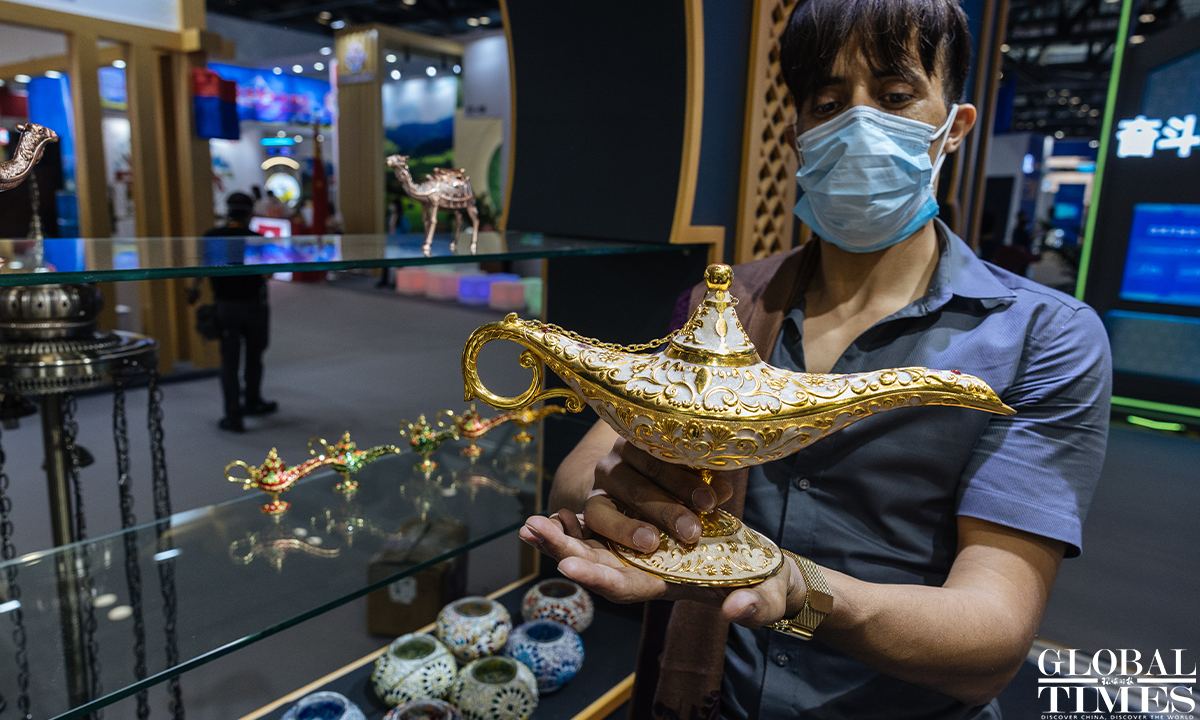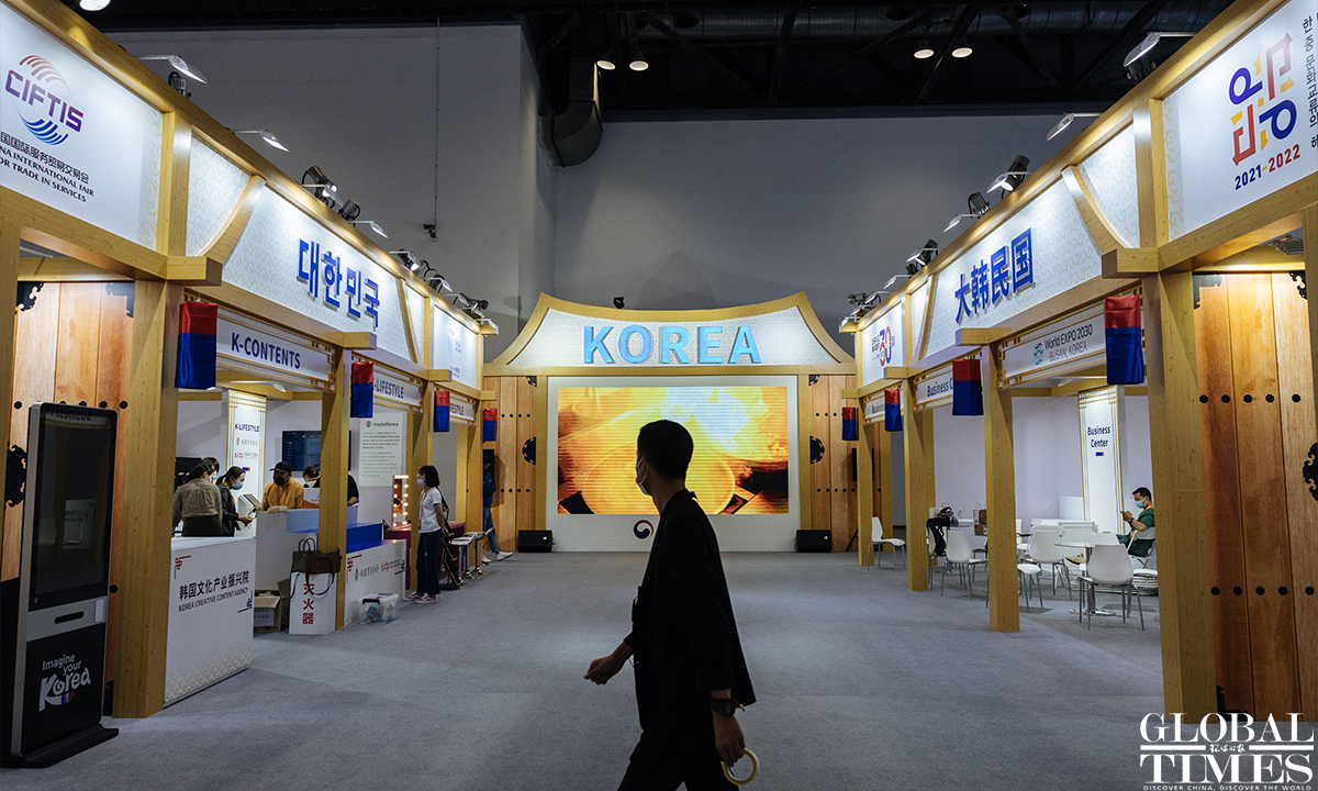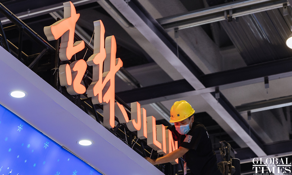 The 2022 China International Fair for Trade in Services (CIFTIS) is set to kick off on Aug 31 in Beijing. Staff members can be seen arranging the exhibits at the exhibition hall of the National Convention Center on Monday. Photos: Li Hao/GT