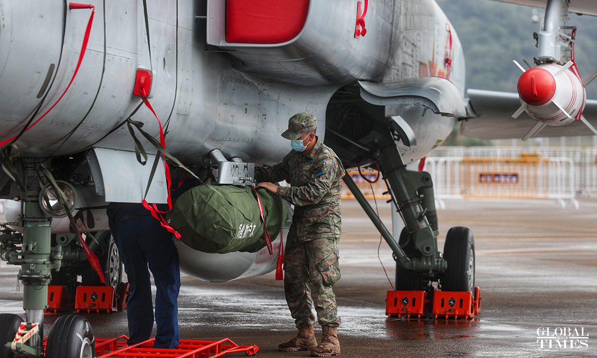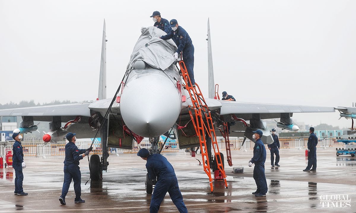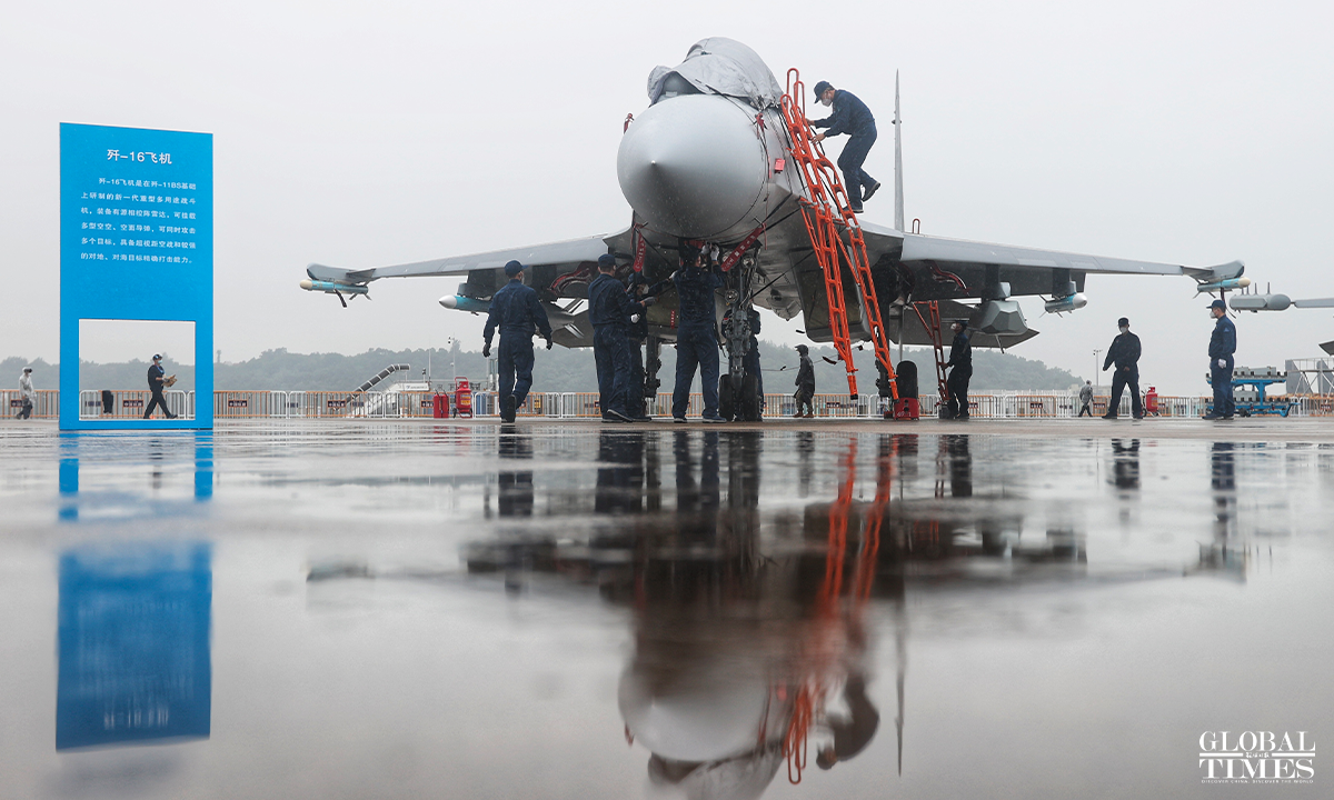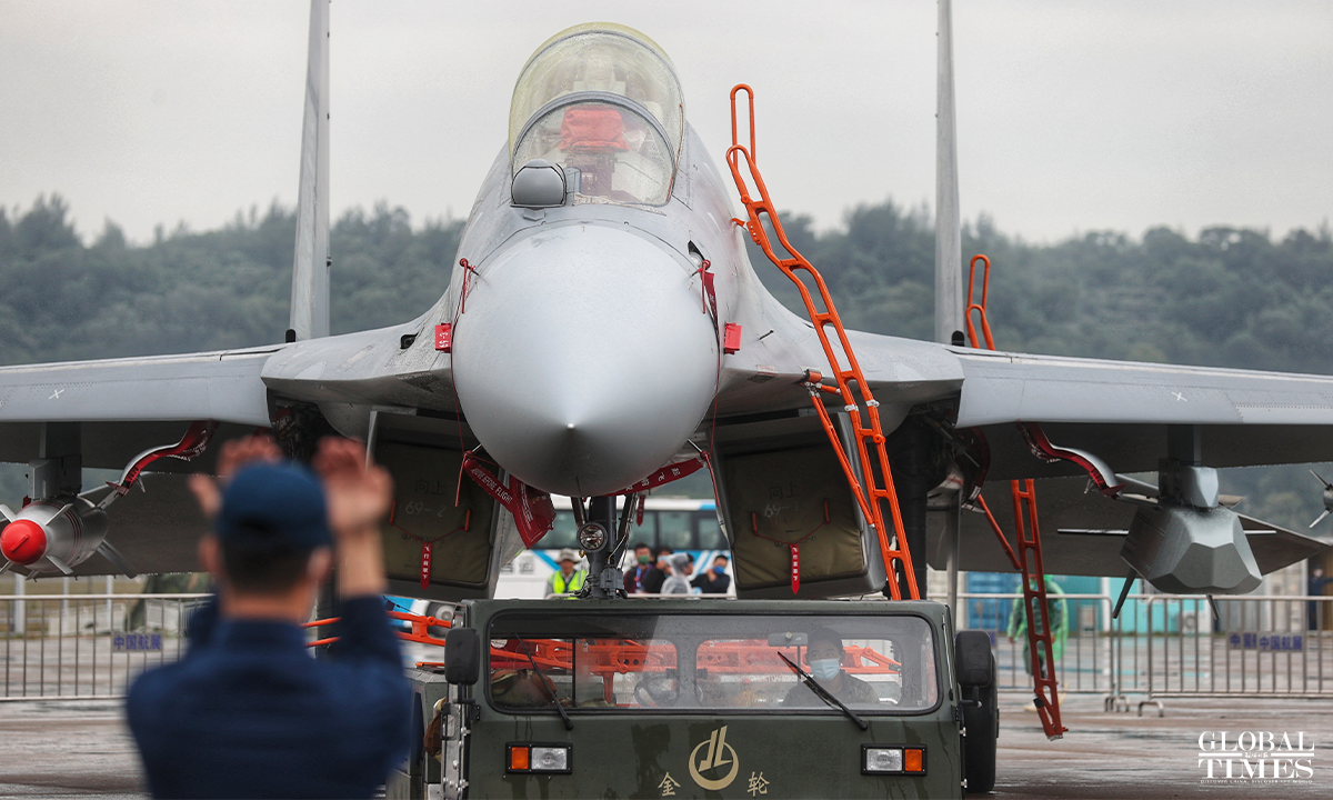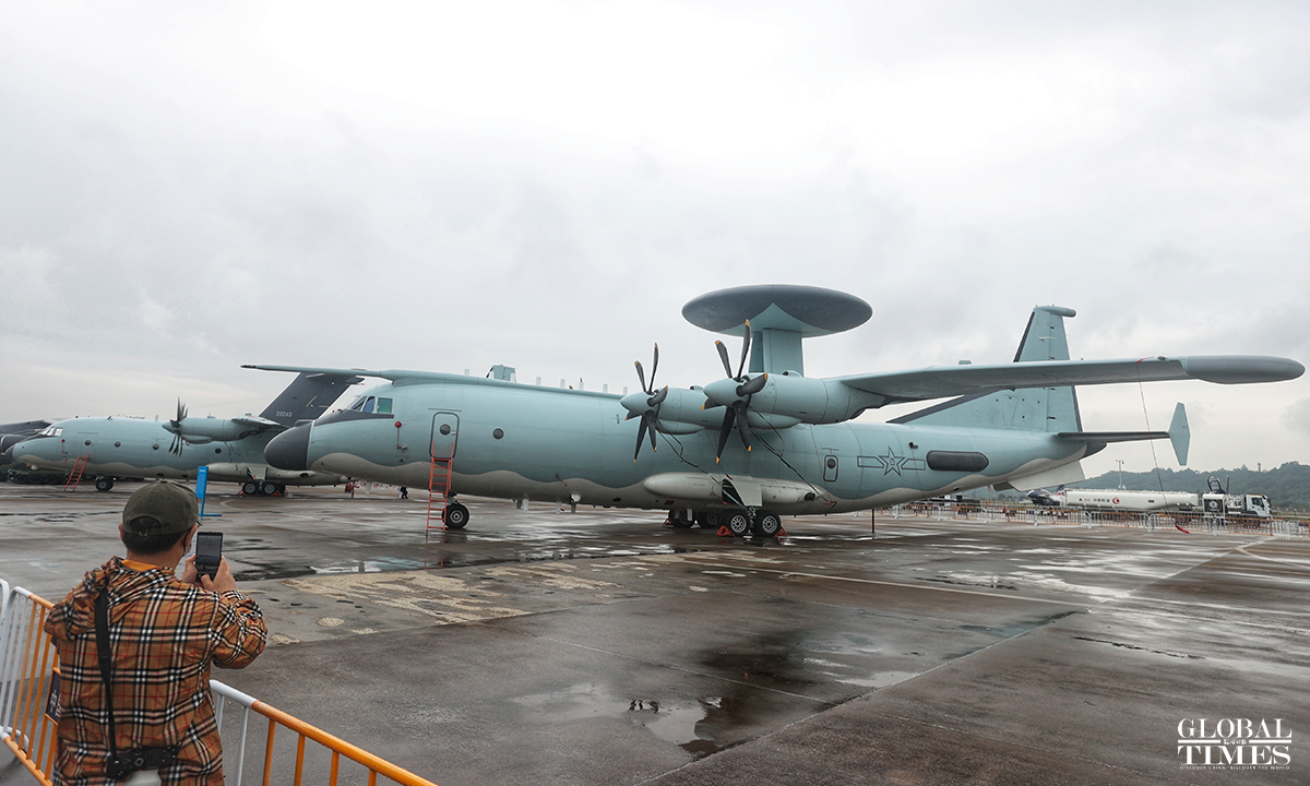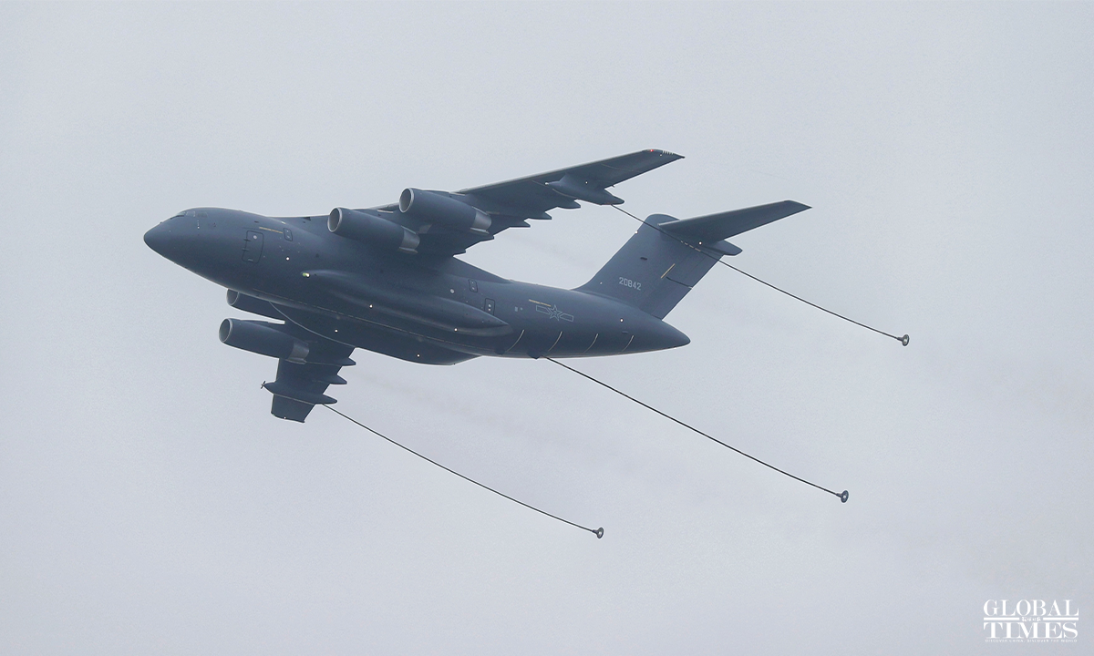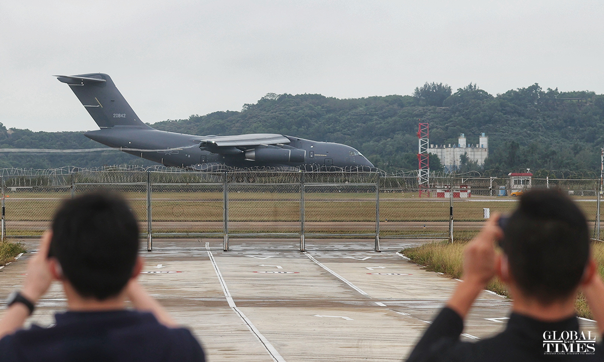 The 14th China International Aviation and Aerospace Exhibition, also known as Airshow China will be held from November 8 to 13 in Zhuhai, South China's Guangdong Province and many "star products" such as the J-20, Y-20 will be exhibited. The China's Air Force multi-type aircrafts conducted the test flight training at Zhuhai Jinwan Airport before the exhibition. Photos: Cui Meng/GT