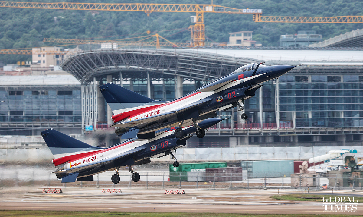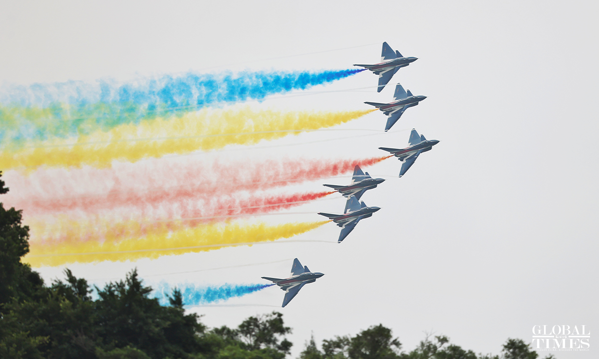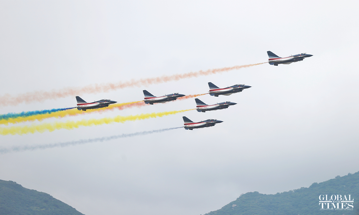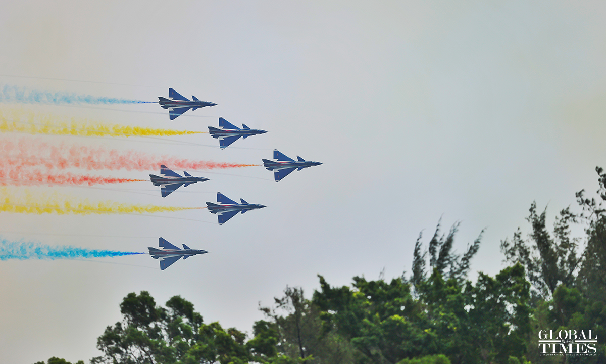 The 14th China International Aviation and Aerospace Exhibition, also known as Airshow China, kicked off on Tuesday in Zhuhai, South China’s Guangdong Province. The Bayi Aerobatic Team showcased flight performances on the opening day. Photos: Cui Meng/GT