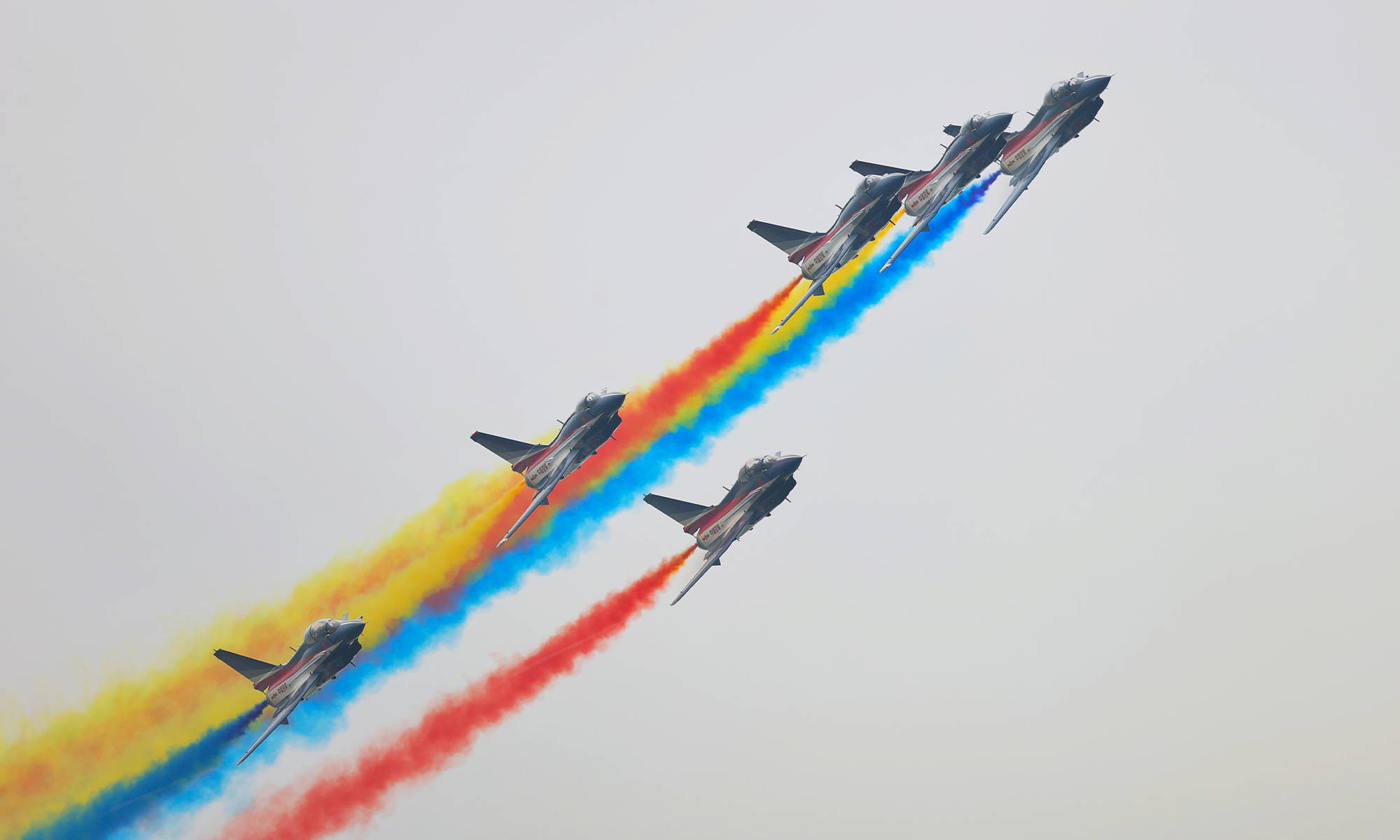 China's Bayi Aerobatic Team performs on the opening day of the 14th Airshow China