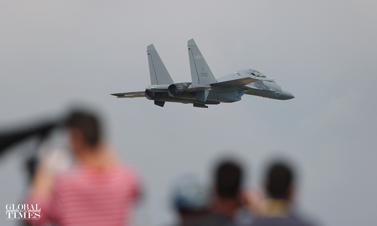 The J-16 fighter jet took part in a flying display at the 14th China International Aviation and Aerospace Exhibition, or Airshow China 2022, in Zhuhai, South China's Guangdong Province, on November 9, 2022. Photos: Cui Meng/GT