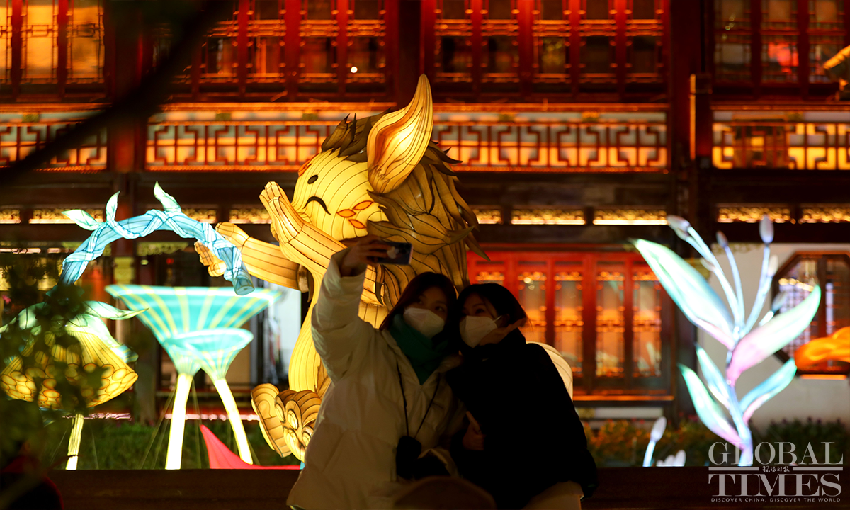 The annual Yuyuan Garden lantern show in Shanghai on Tuesday attracted visitors from across the country to enjoy the beautiful night amid the gradual business resumption. The show featuring gorgeous rabbit lanterns, is a traditional celebration of the Chinese New Year. The event will last till February 15, 2023, according to the organizers. Photos: Chen Xia/GT