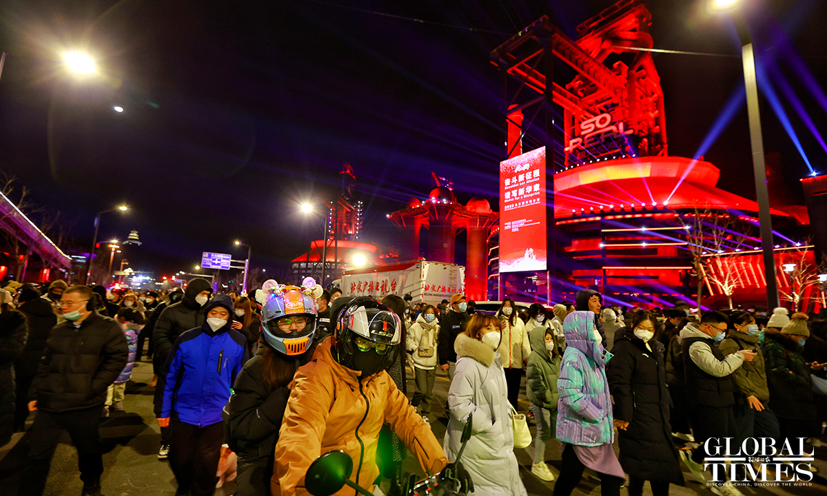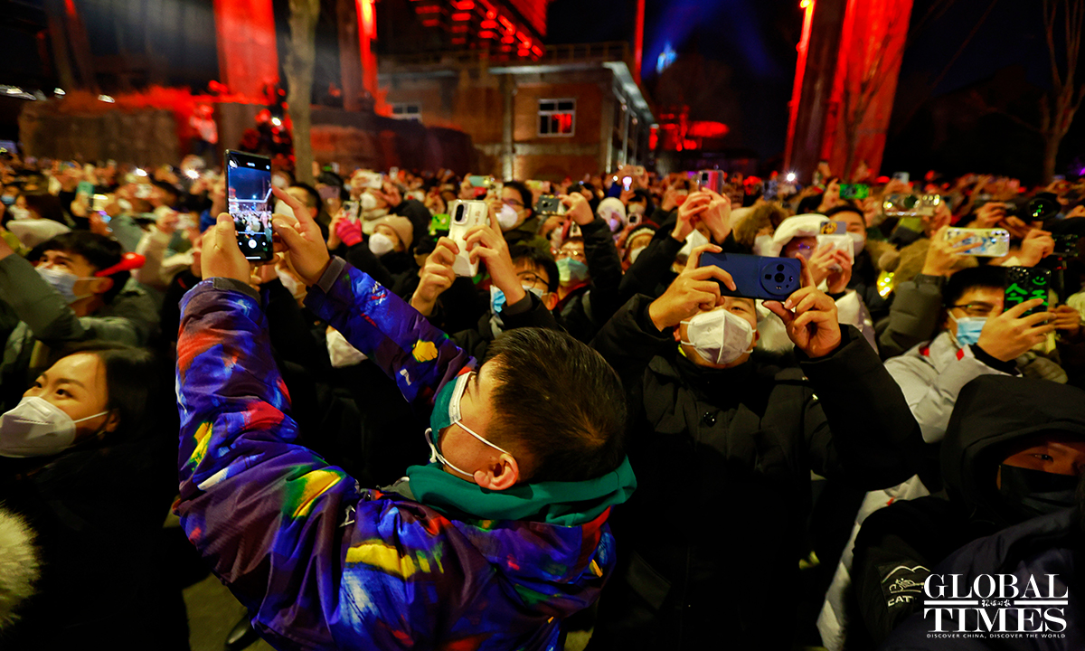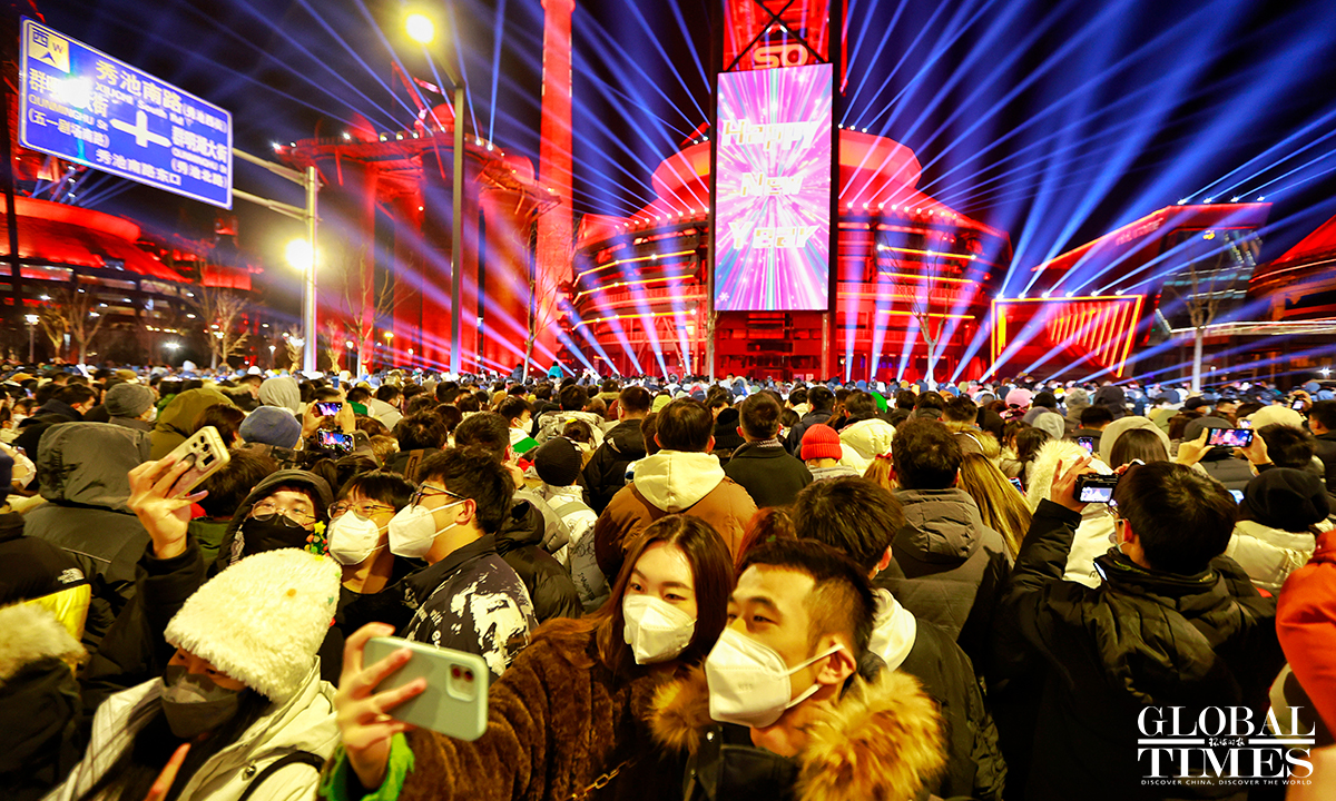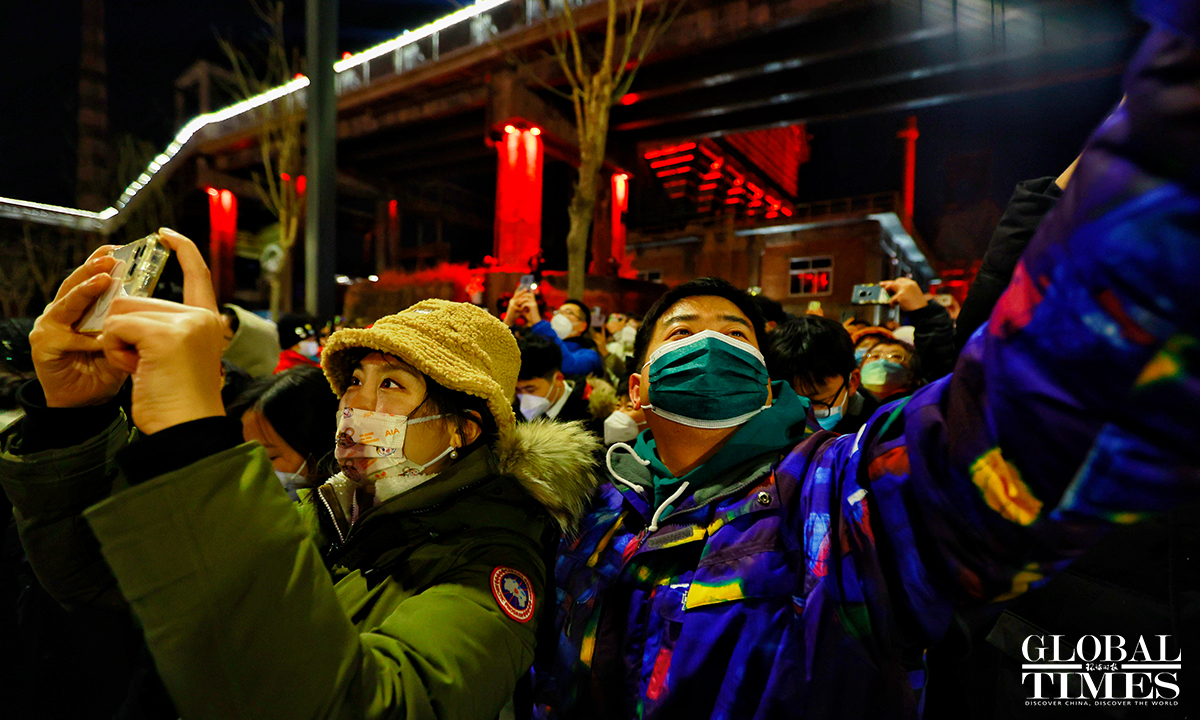 Shougang Park in Beijing held a New Year countdown event on December 31, 2022, with a light show and some artistic performances. Ten minutes before the arrival of 2023, a screen began to light up the celebration picture of "Happy New Year” and the crowd started counting down to welcome the new year. Photos: Li Hao/GT