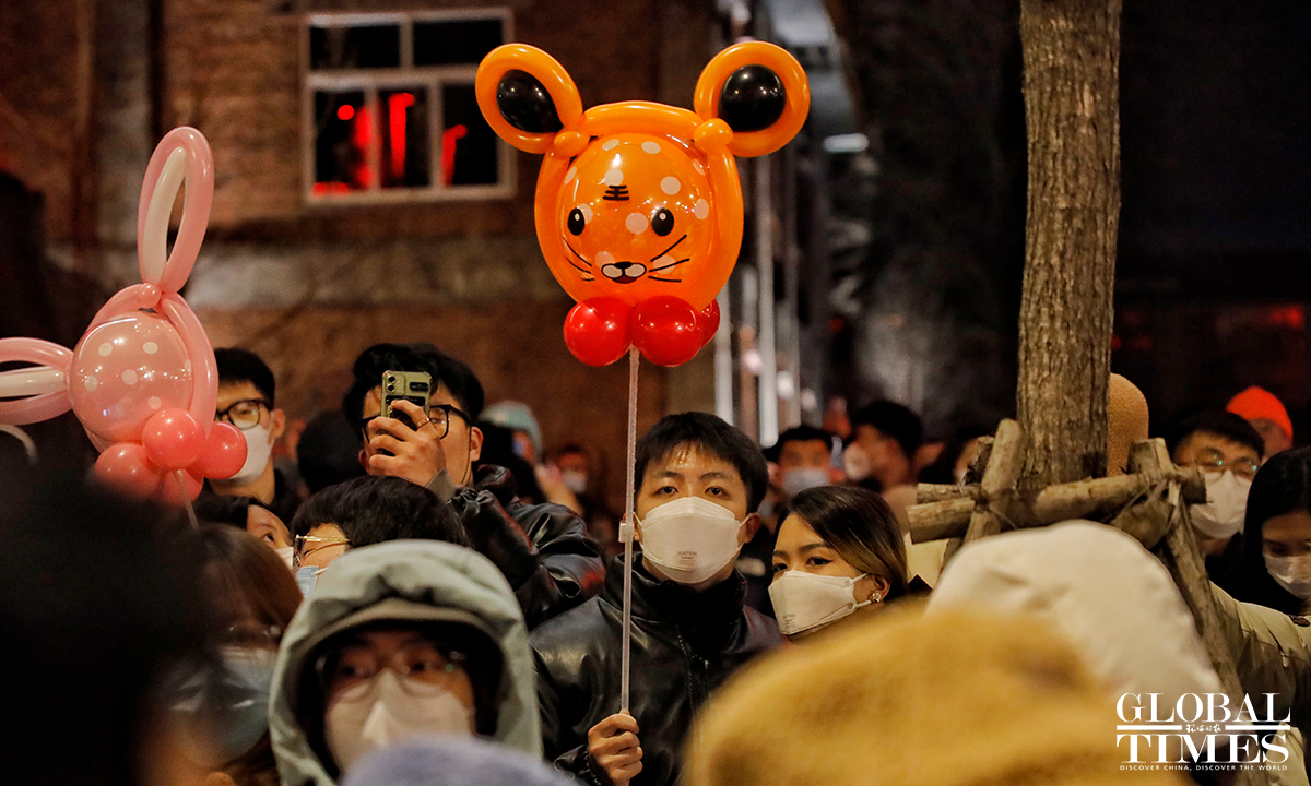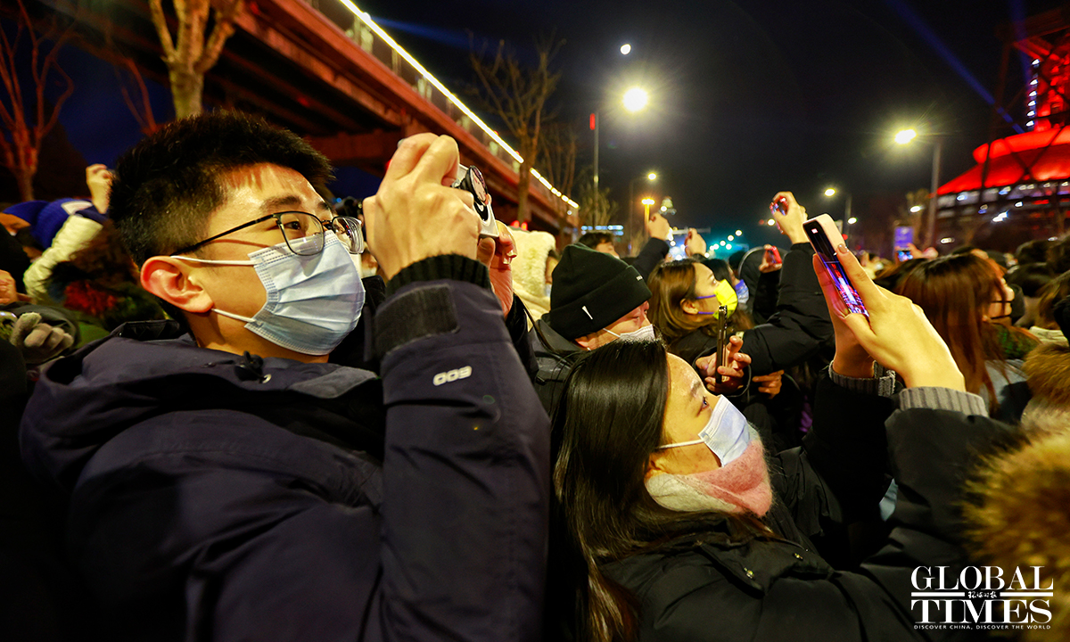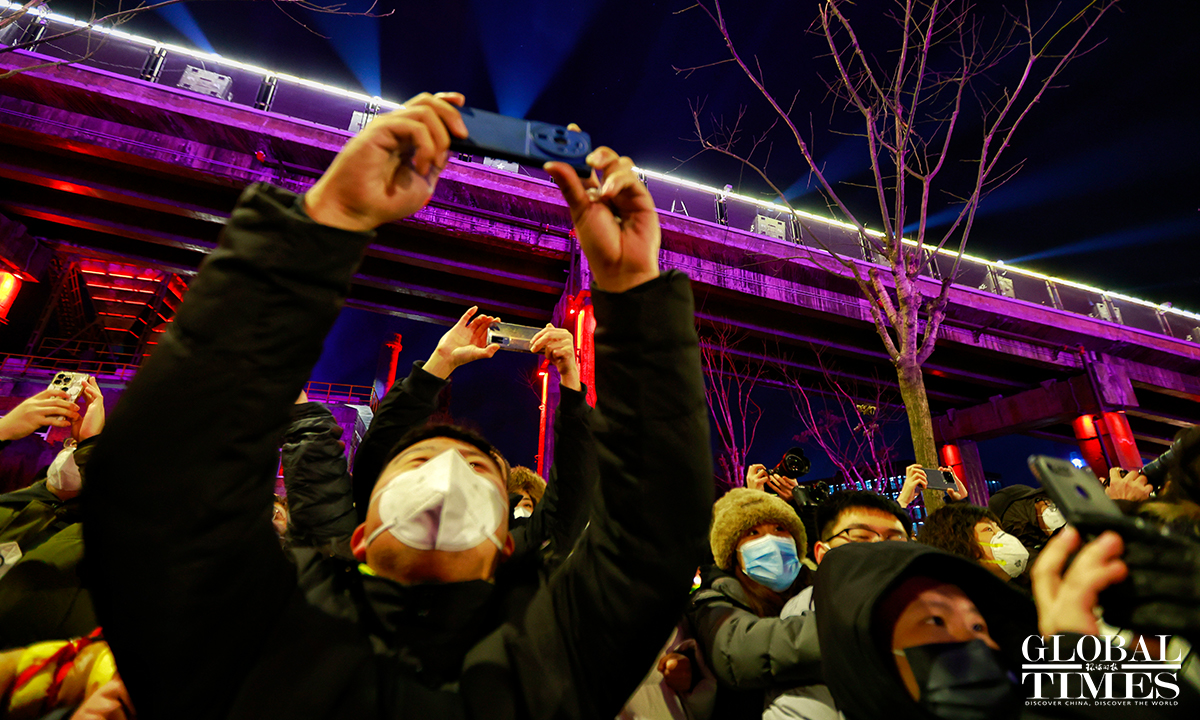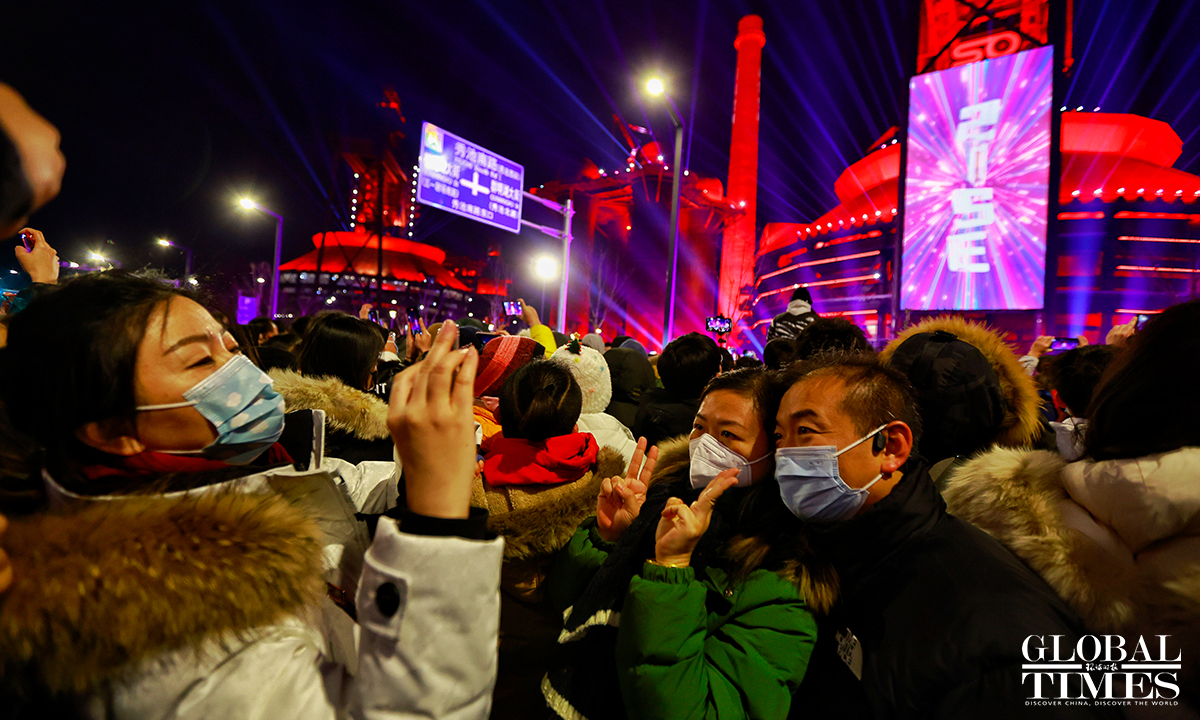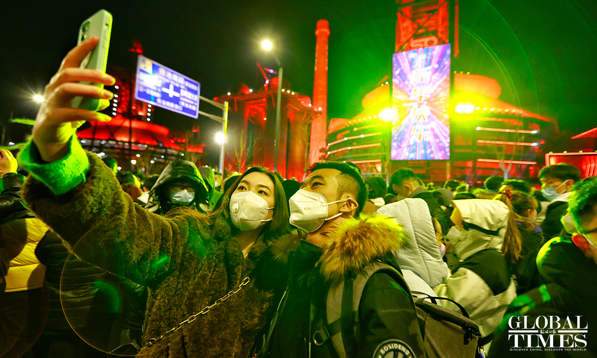 Shougang Park in Beijing held a New Year countdown event on December 31, 2022, with a light show and some artistic performances. Ten minutes before the arrival of 2023, a screen began to light up the celebration picture of "Happy New Year” and the crowd started counting down to welcome the new year. Photos: Li Hao/GT
