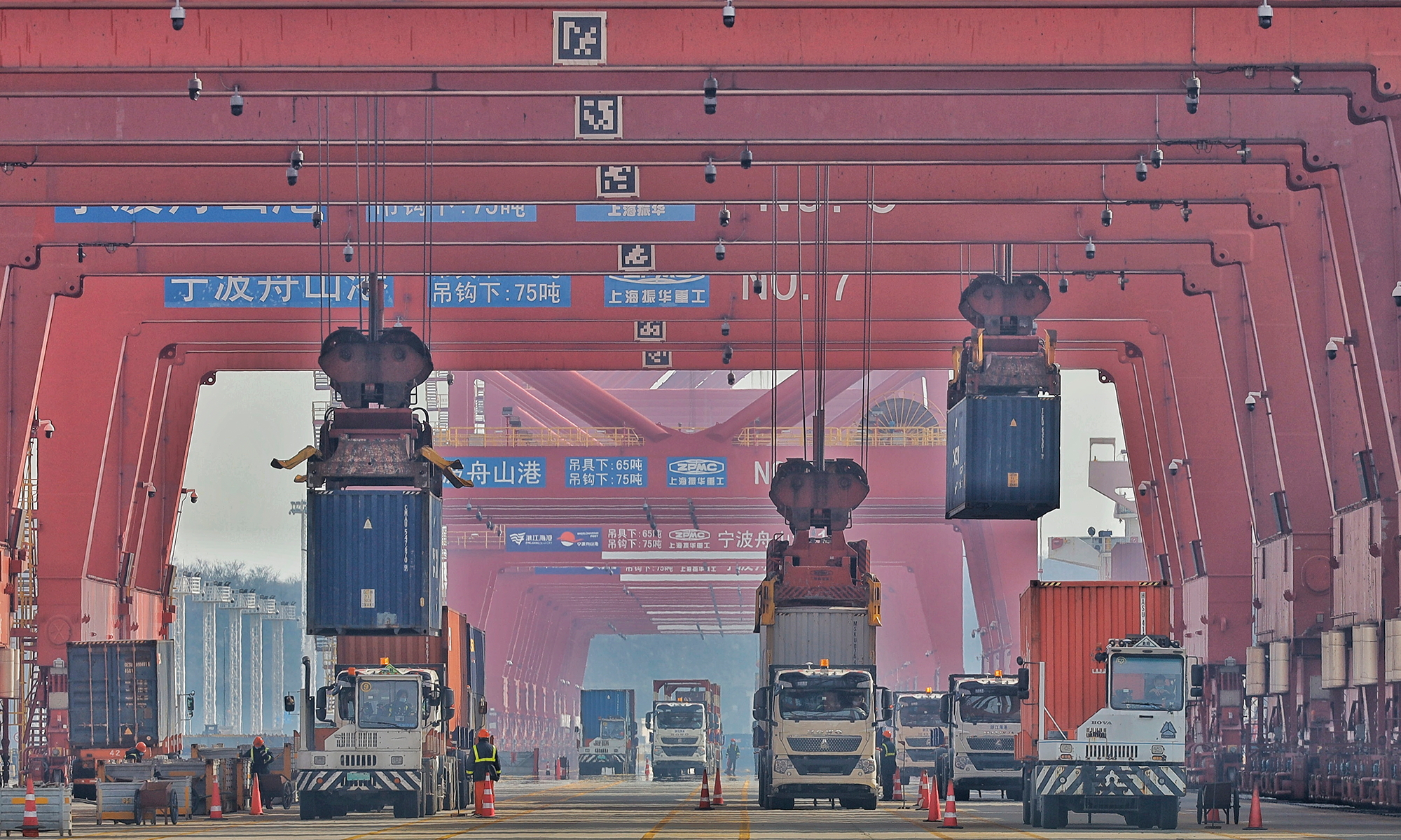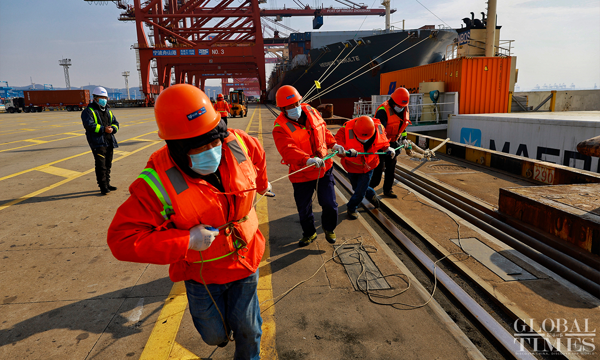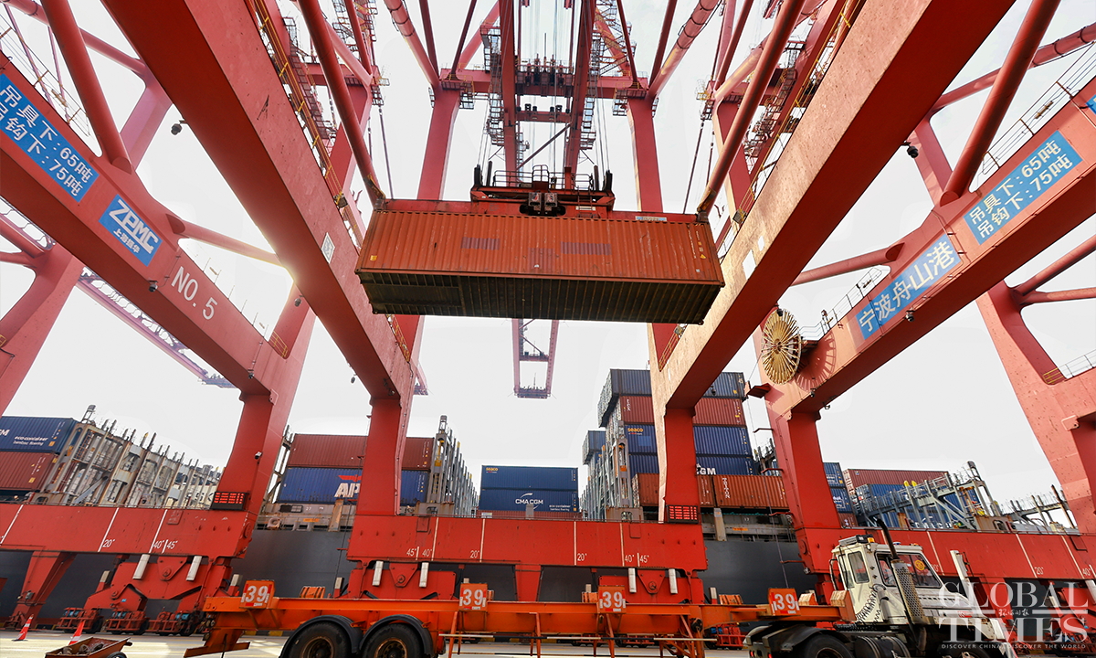 In 2022, Yongzhou container terminal at Jintang port area, East China’s Zhejiang Province completed a container throughput of 2 million TEUs, an increase of 47.31 percent compared to 2021. The expected container production target in 2023 is 2.3 million TEUs, an increase of 15 percent year-on-year. As a landmark port under the Belt and Road Initiative (BRI), the Jintang port area carries the important trade task of countries along the Belt and Road, connecting 46 major ports in 29 countries and regions along the route, including Africa, the Mediterranean, and Russia. Photos: Li Hao/GT