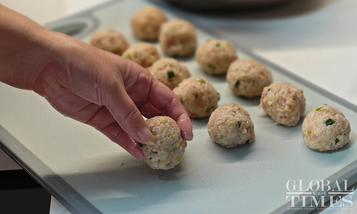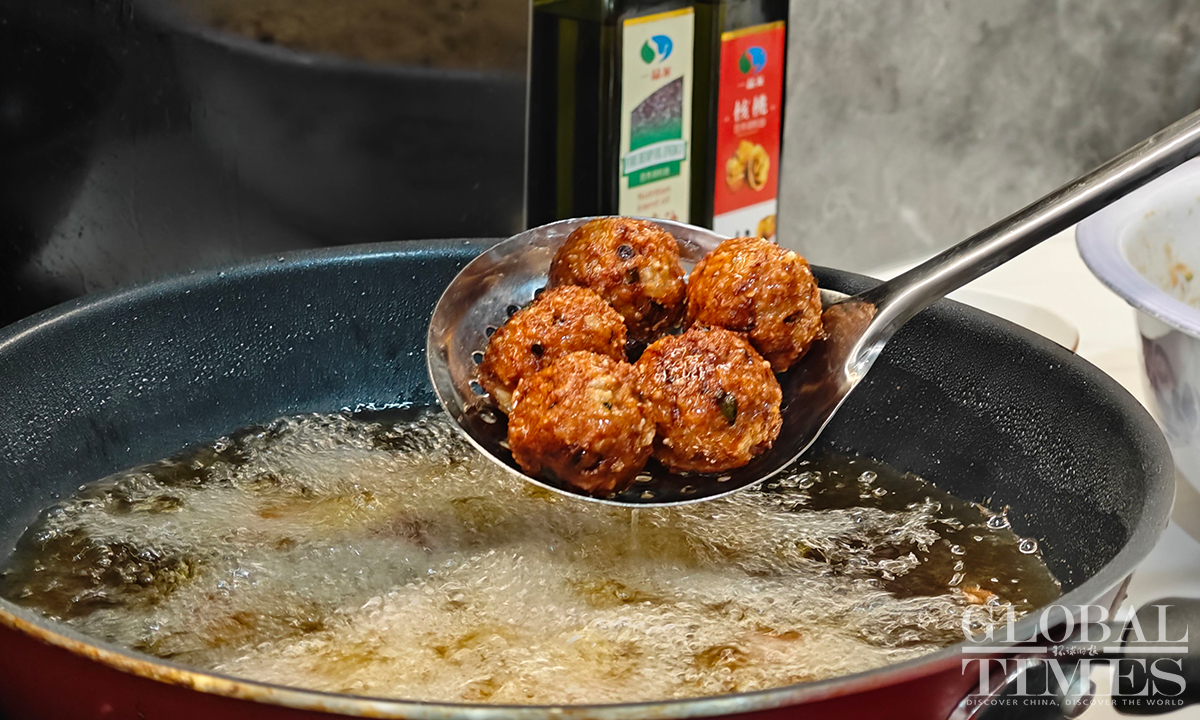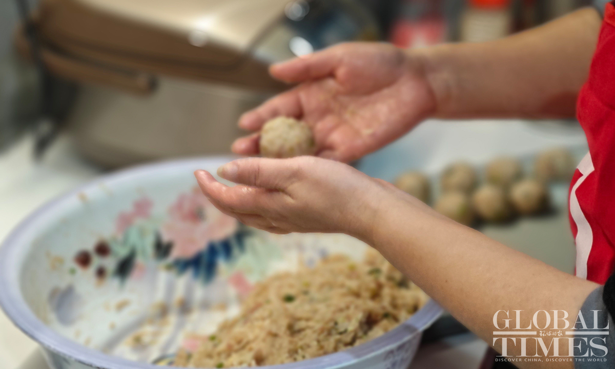 In the southern towns of East China’s Anhui Province, local residents make meatballs (meaning tuanyuan or family reunion), spring rolls to embrace the Spring Festival. Residents are busy purchasing for the Spring Festival on January 21, Saturday, Chinese New Year's Eve. (Photos: Yu Xi/GT)