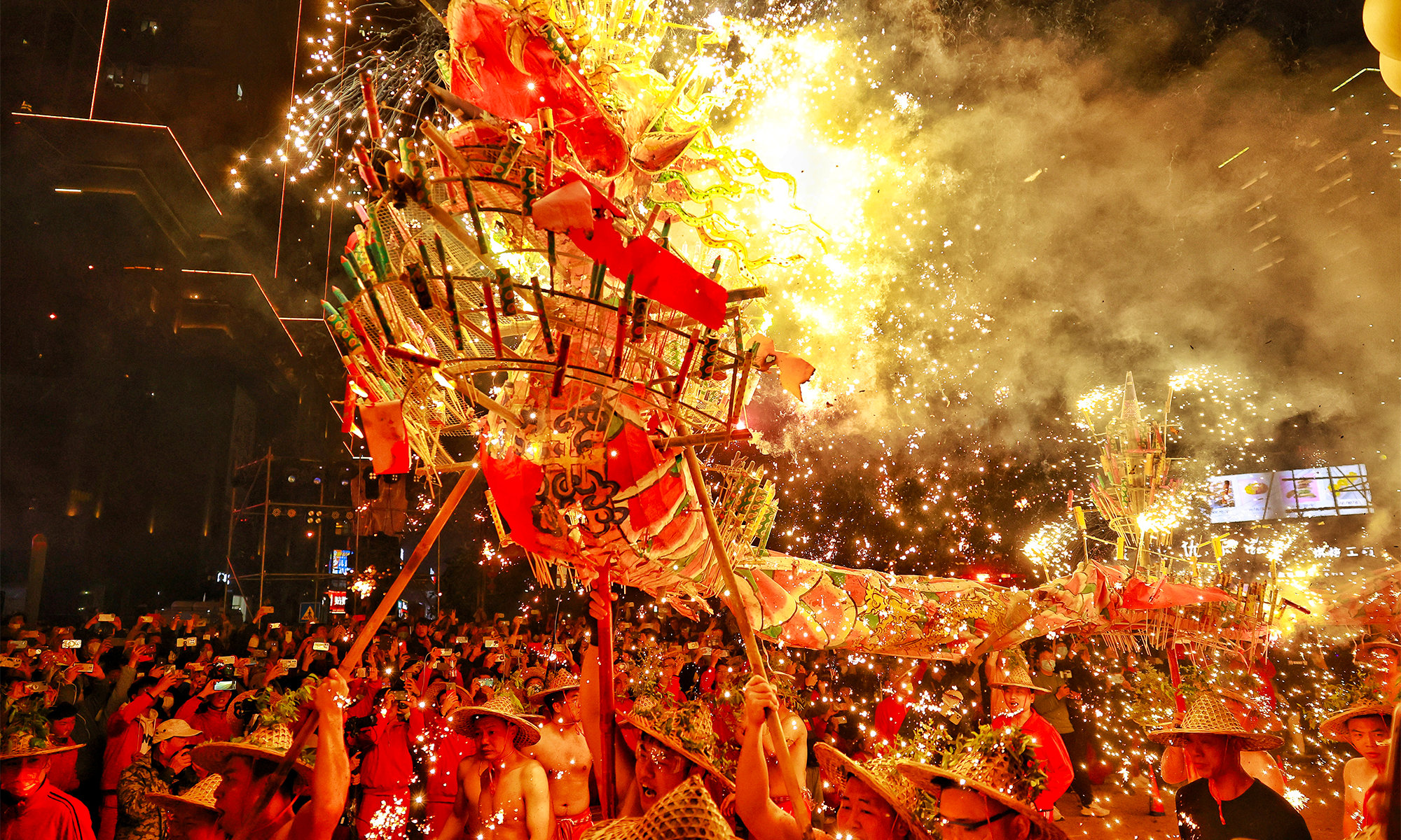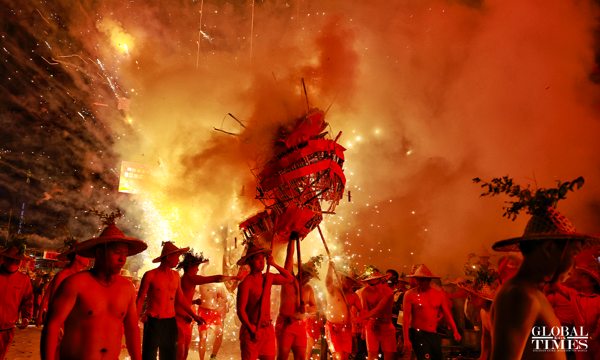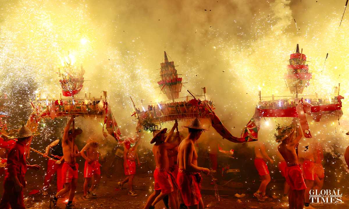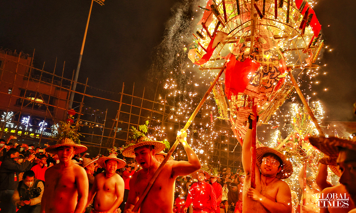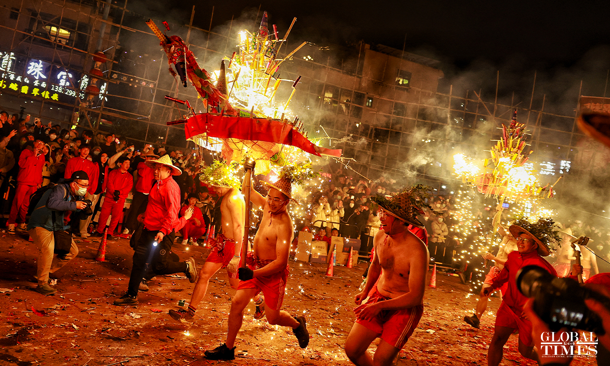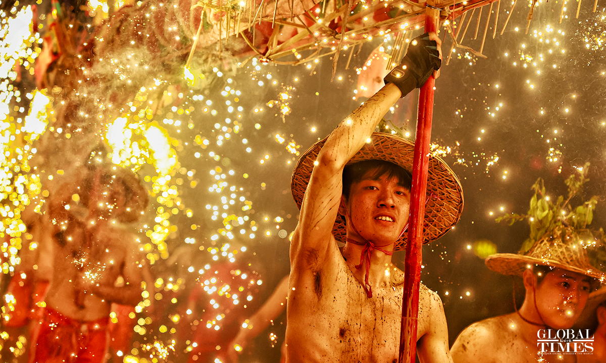 On January 31, 2023, the 10th day of the first lunar month, as part of the national intangible cultural heritage with a history of more than 600 years, a fire dragon show was performed with fireworks in Jieyang, South China’s Guangdong Province, showing the charm of cultural heritage and folk customs. Photos: Li Hao/GT