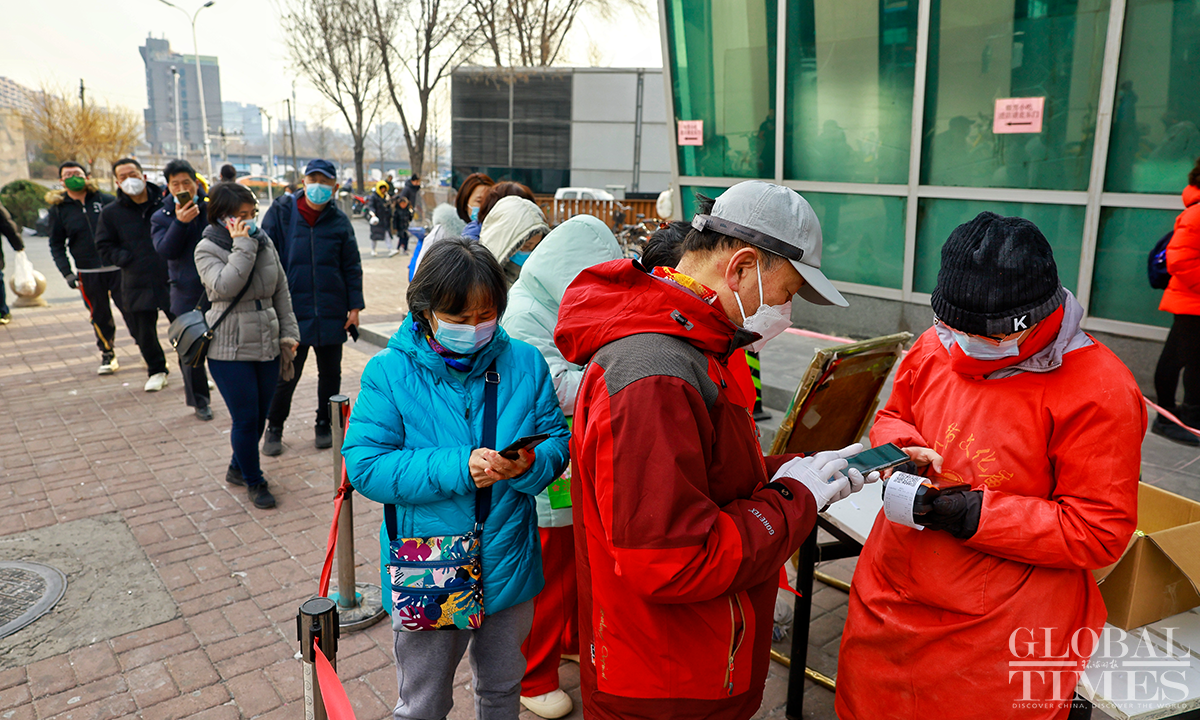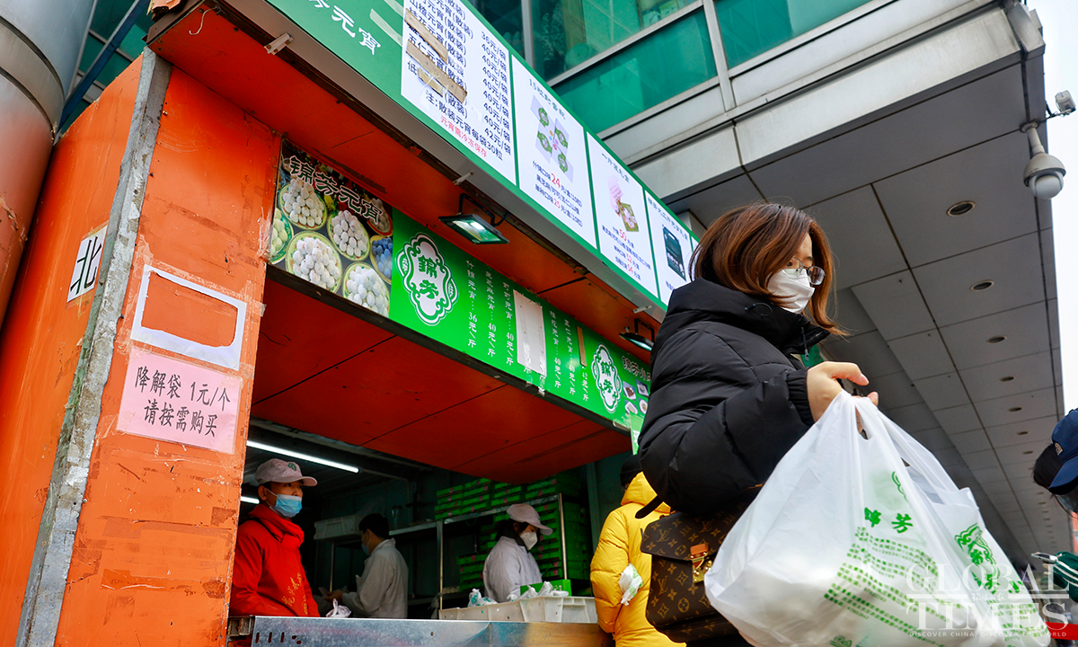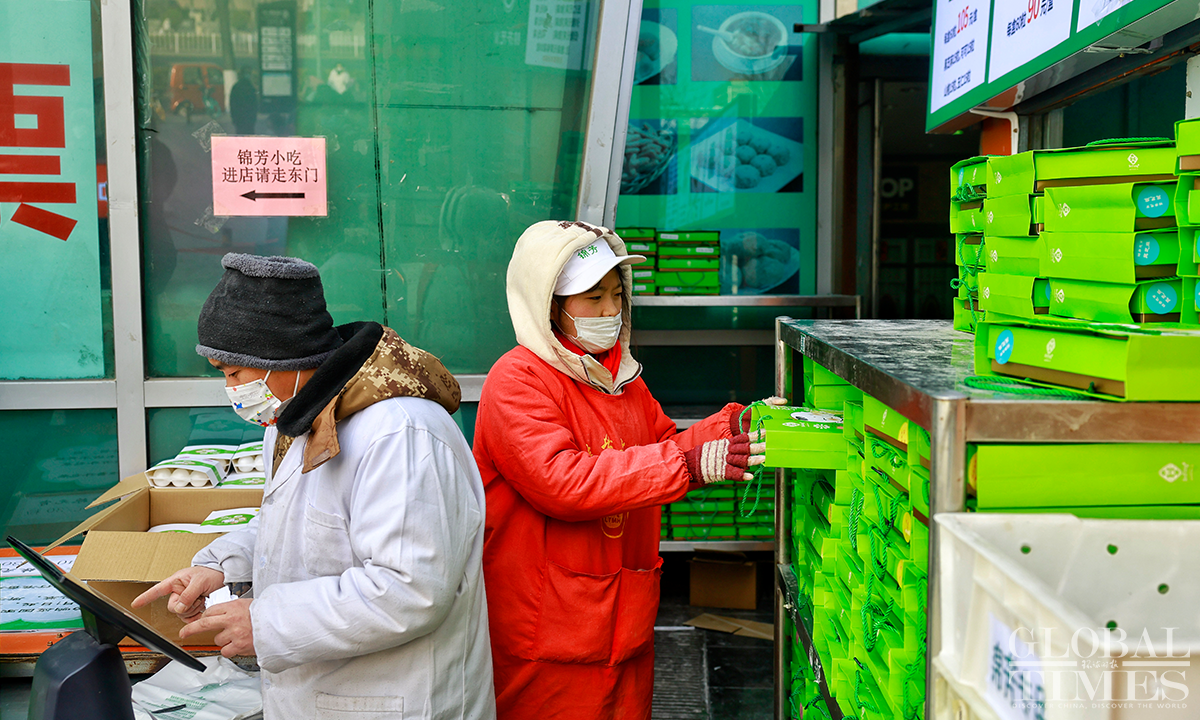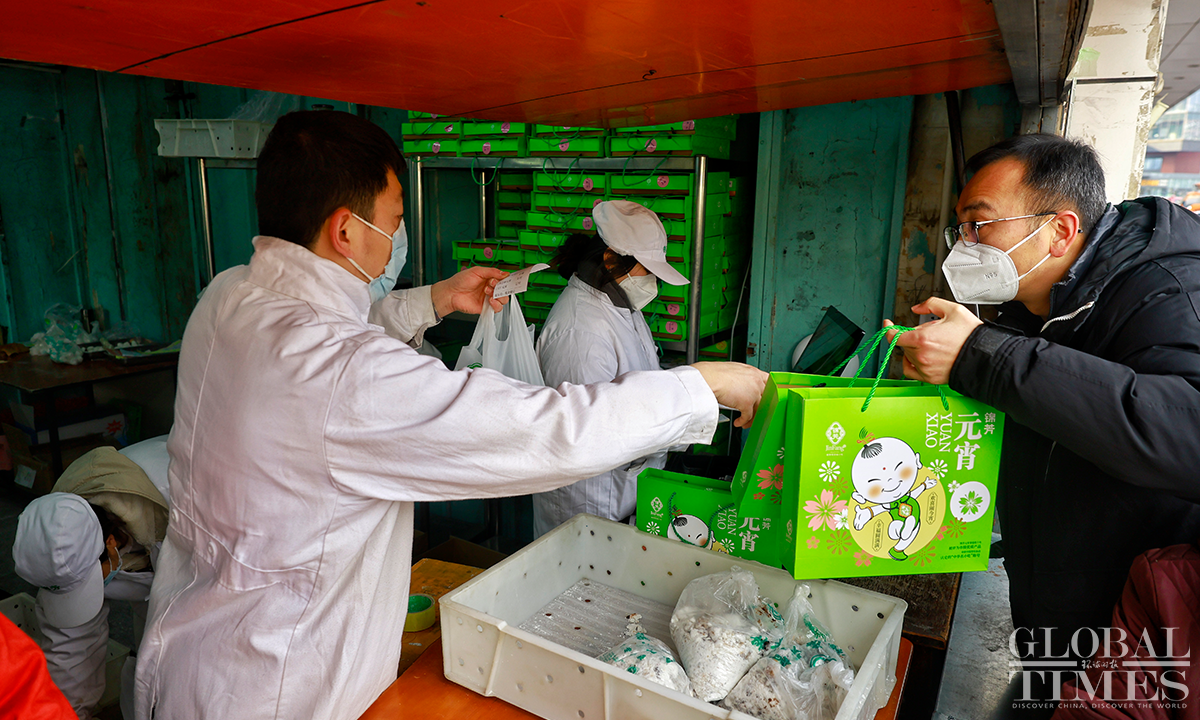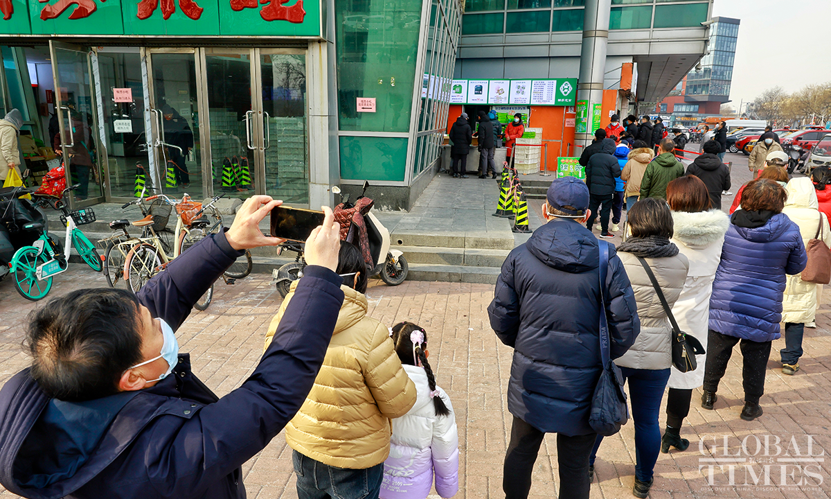 Numerous Beijing residents formed a long line in front of the Jinfang Snack shop in Ciqikou to buy Yuanxiao, glutinous rice flour dumplings with sweetened stuffing eaten on the Lantern Festival on February 5, 2023. To many longtime Beijing residents, Yuanxiao at Jinfang Snack is one of the indispensable traditional foods on the 15th day of the first lunar month every year. Photos: Li Hao/GT
