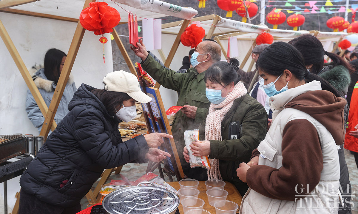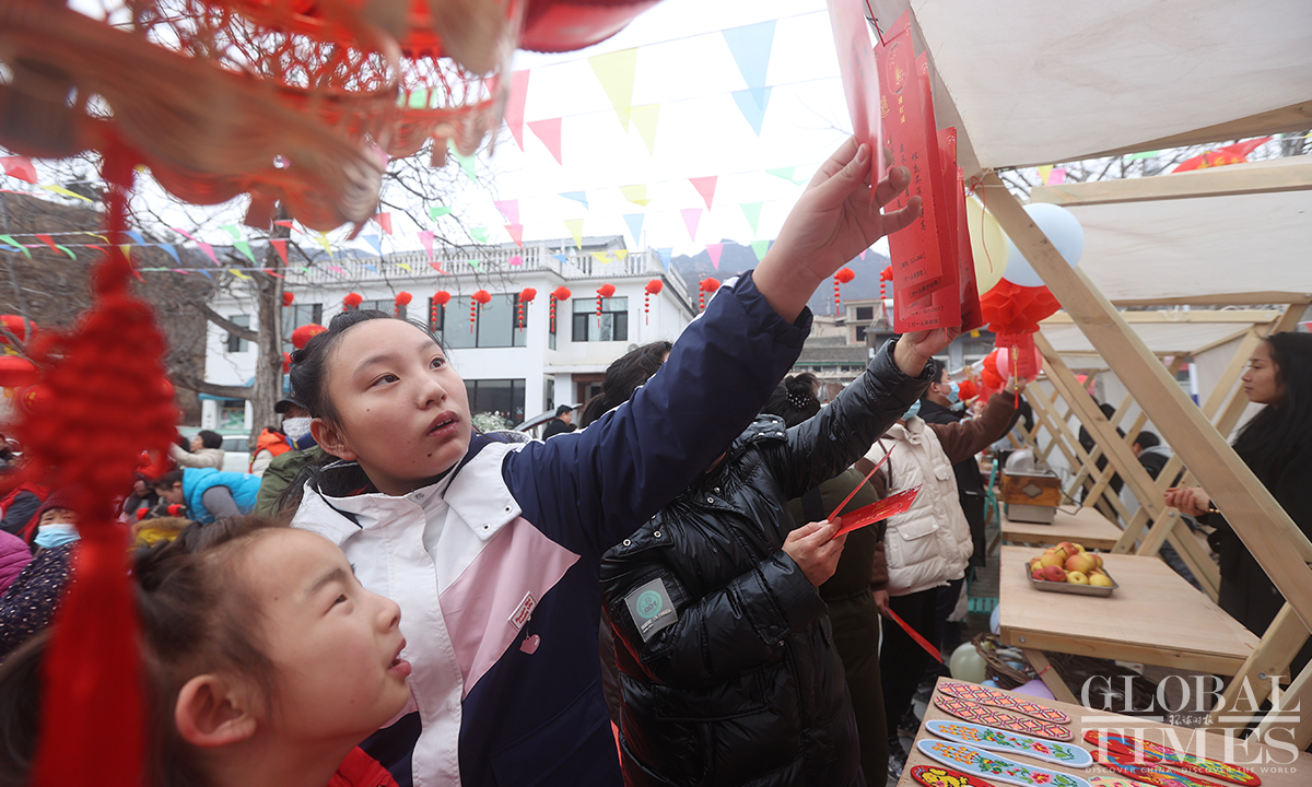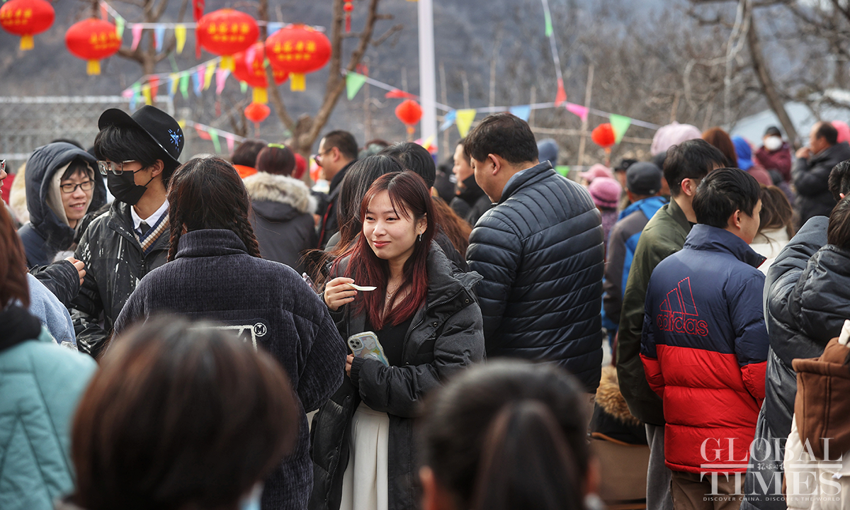 Located deep in the mountains of Beijing's suburbs, Xingshutai Village in Huairou District held a variety of activities to celebrate the Lantern Festival. This was also the first time for villagers and tourists to gather together and celebrate the festival since China's COVID management downgrade. Photos: Cui Meng/GT