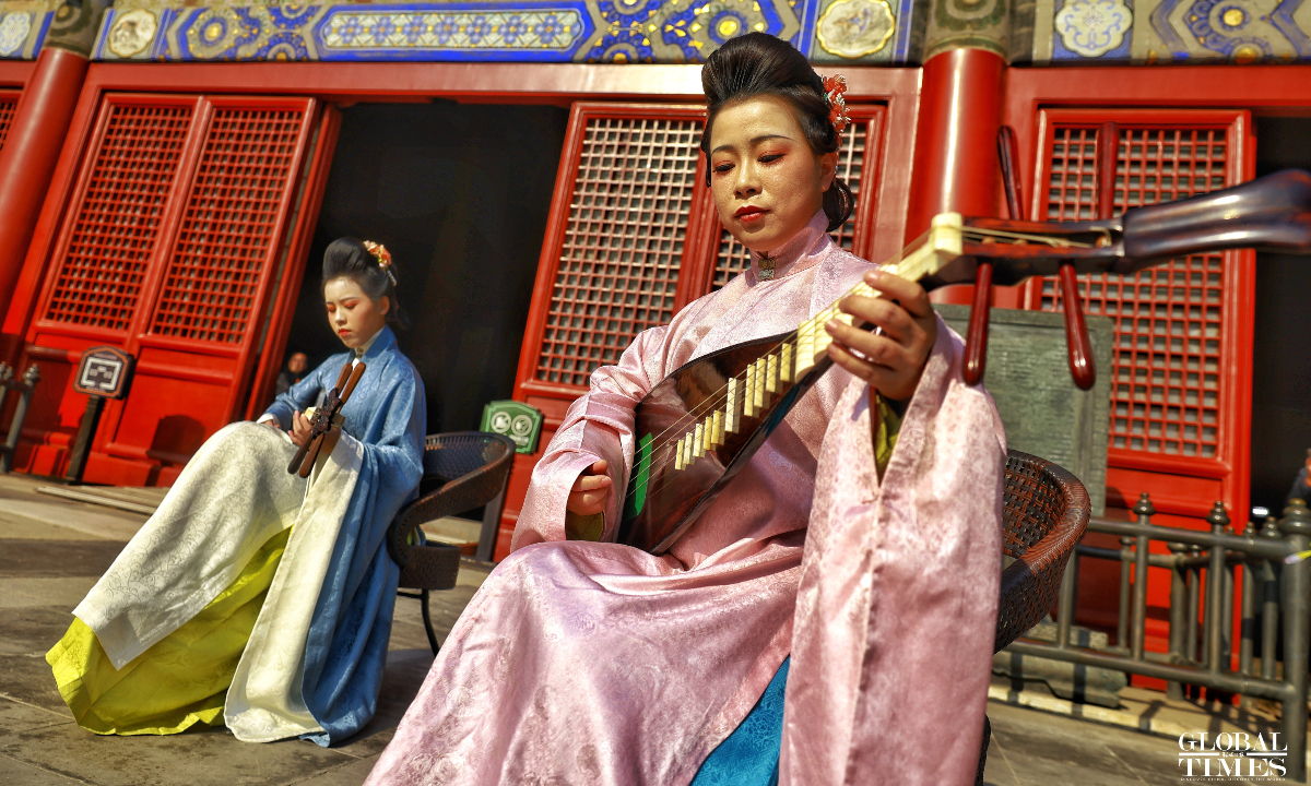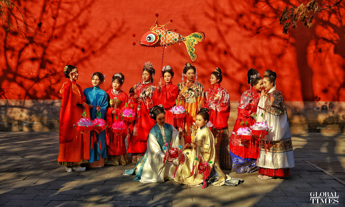 The Ming Tombs, a major tourist site in Beijing's Changping District organised a Lantern Festival event, which falls on Feb 5 this year. Actors dressed in Ming Dynasty costumes recreated traditional Lantern Festival activities to allow the audience to experience traditional Chinese culture. (Photos: Li Hao/GT)