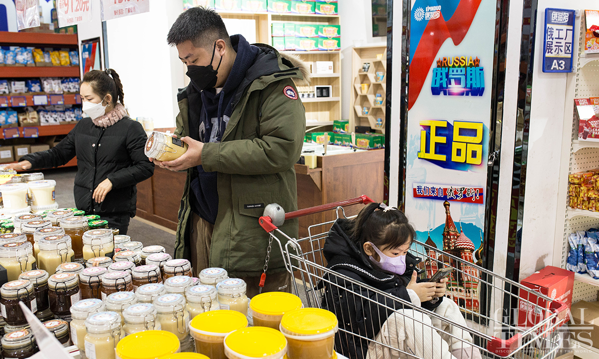 Locals and visitors in Heihe, Northeast China's Heilongjiang Province enjoy shopping and delicious food on February 11, 2023 as the border city regains vitality after China downgraded its COVID-19 management in December 2022. Photos: Shan Jie/GT