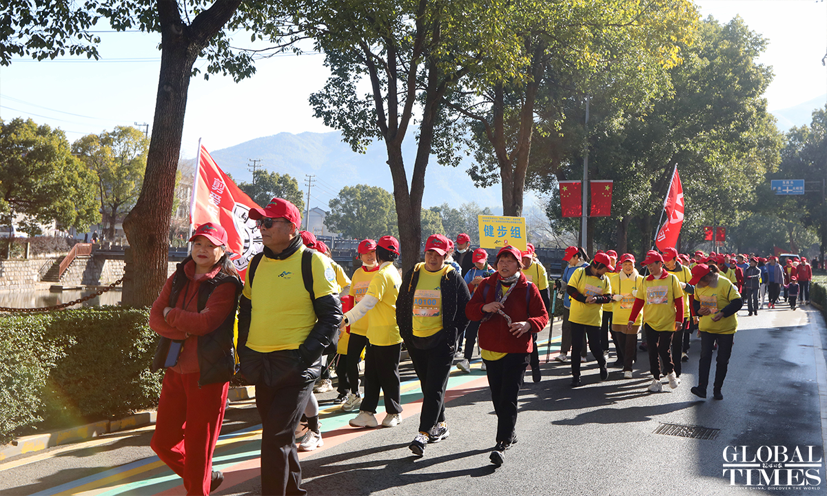 “Siming Mountain, China Red” Travel Festival was launched on February 28 in Hengkantou village, Yuyao City, in East China’s Zhejiang Province. Hundreds of hiking enthusiasts in the Yangtze River Delta Region walked the new hiking route in the Siming Mountain area on Tuesday. Once an underdeveloped revolutionary base in early 2000s, Hengkantou village is now a renowned and well-off village, developing "revolution-history-based" tourism, utilizing "green" resources and expanding specialized agriculture.