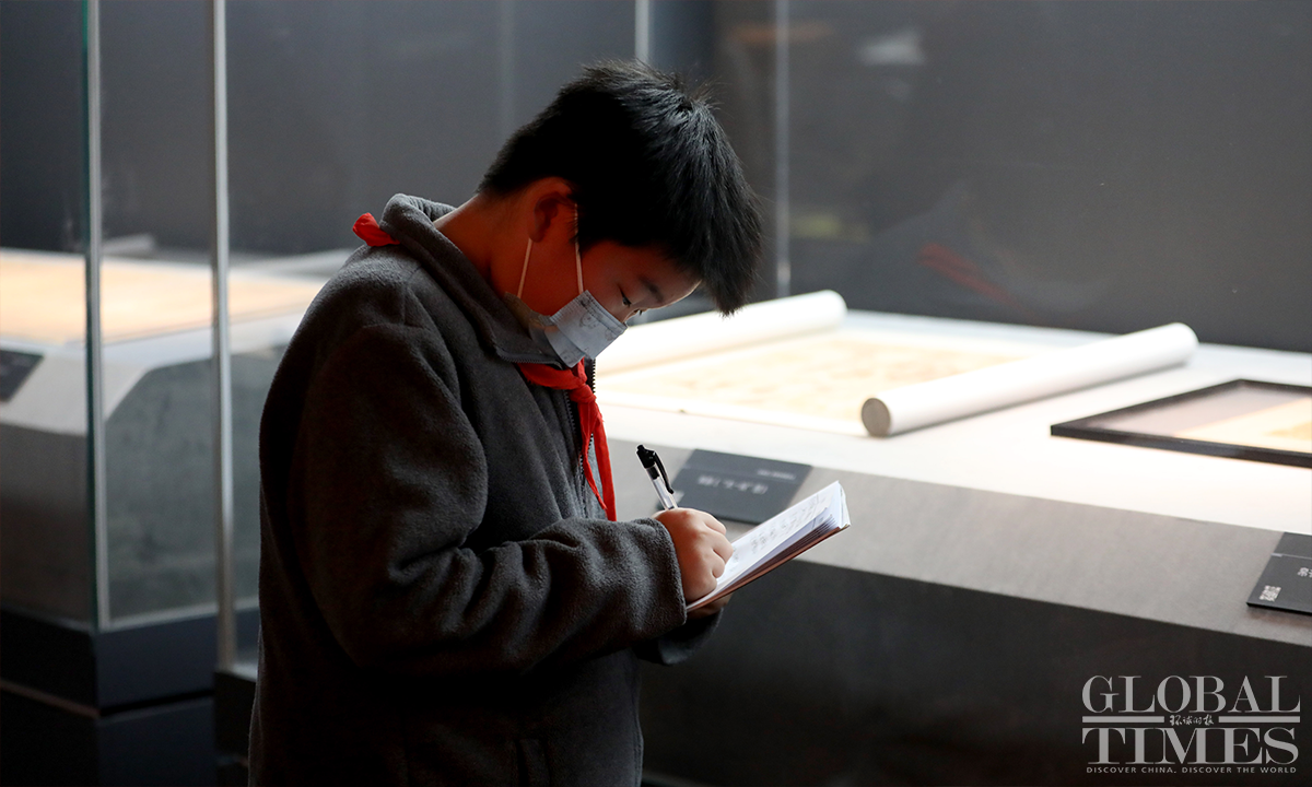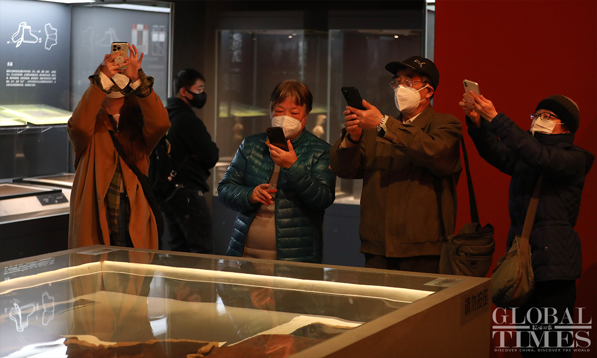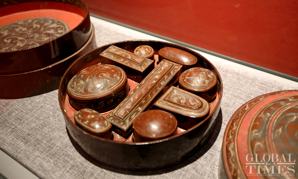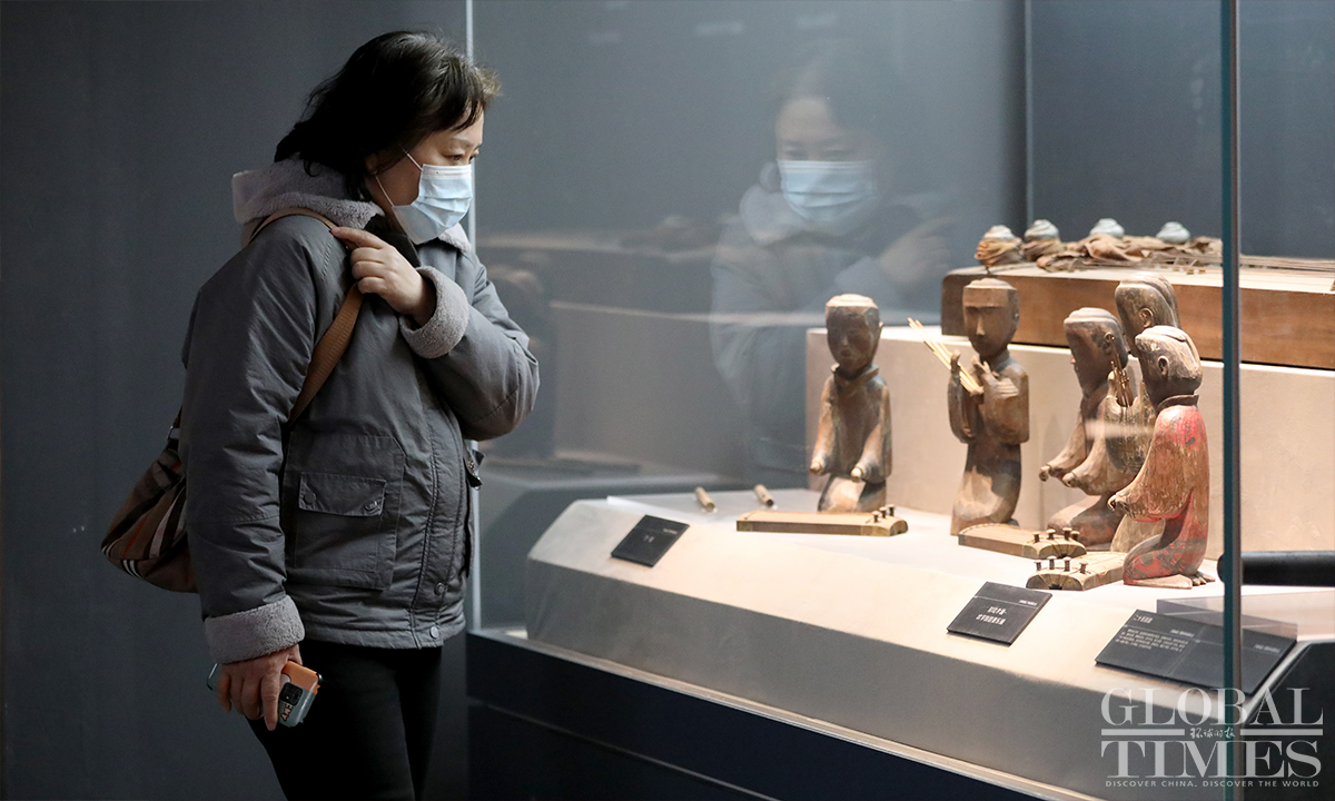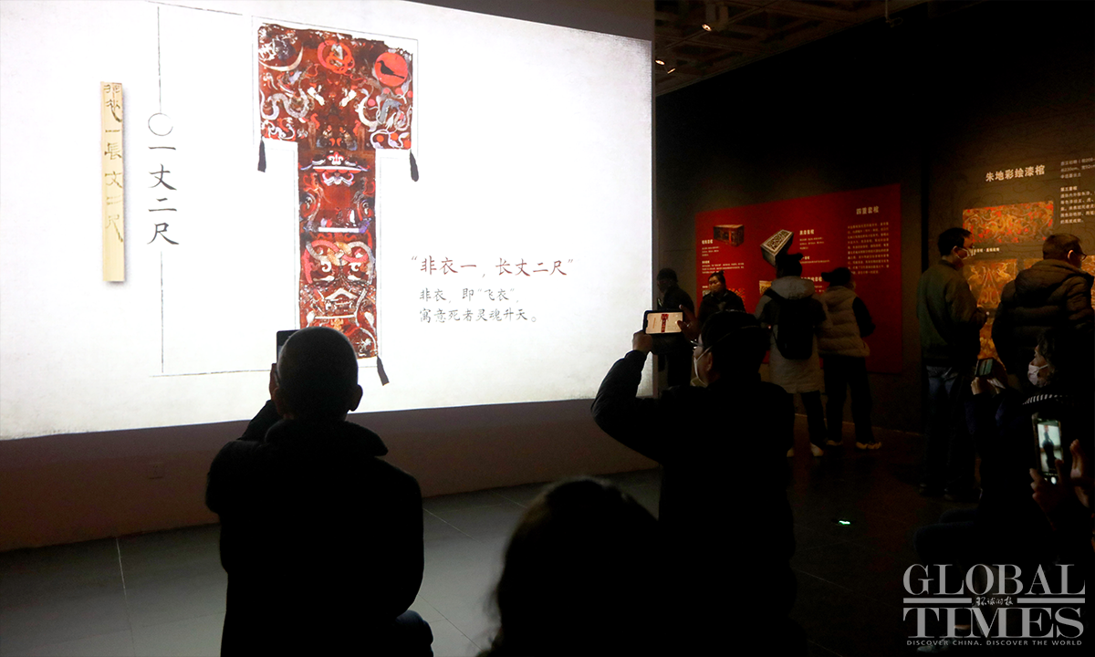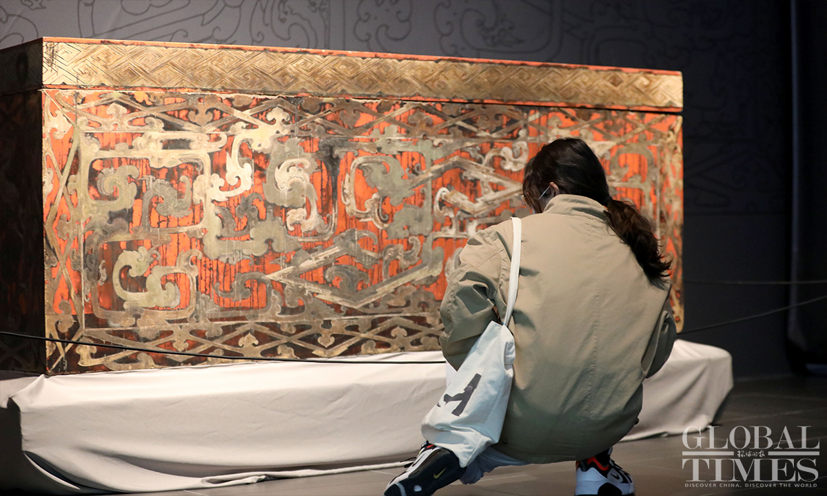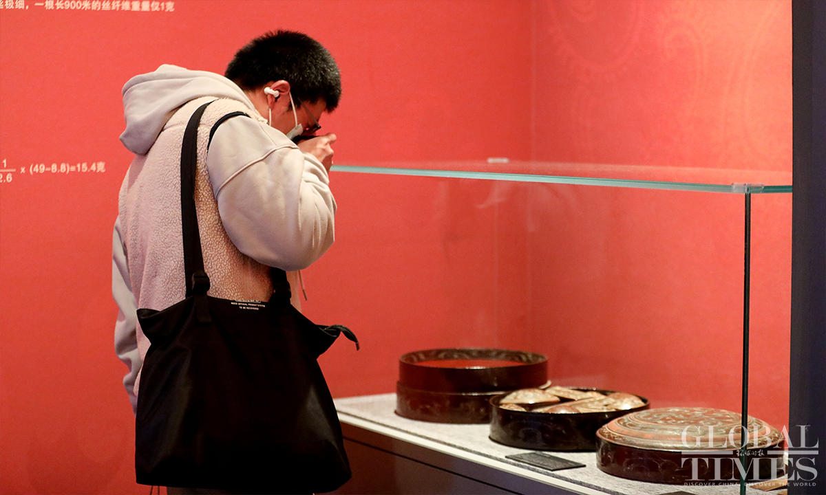 A total of 138 pieces (sets) of precious cultural relics from Changsha Mawangdui Han Dynasty (206BC–AD220) tombs are being exhibited at Minhang Museum in Shanghai. Many visitors on Friday went to the museum to feel the civilization from 2,000 years ago, from lacquer tray to silk. The exhibition will be open to the public for free until May 3. The excavation of the three Western Han Dynasty tombs at Mawangdui, Changsha, Central China’s Hunan Province, took place between 1972 and 1974. Photos: Chen Xia/GT