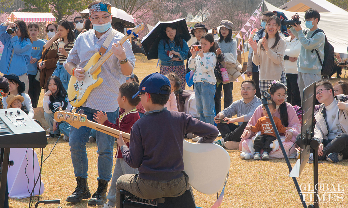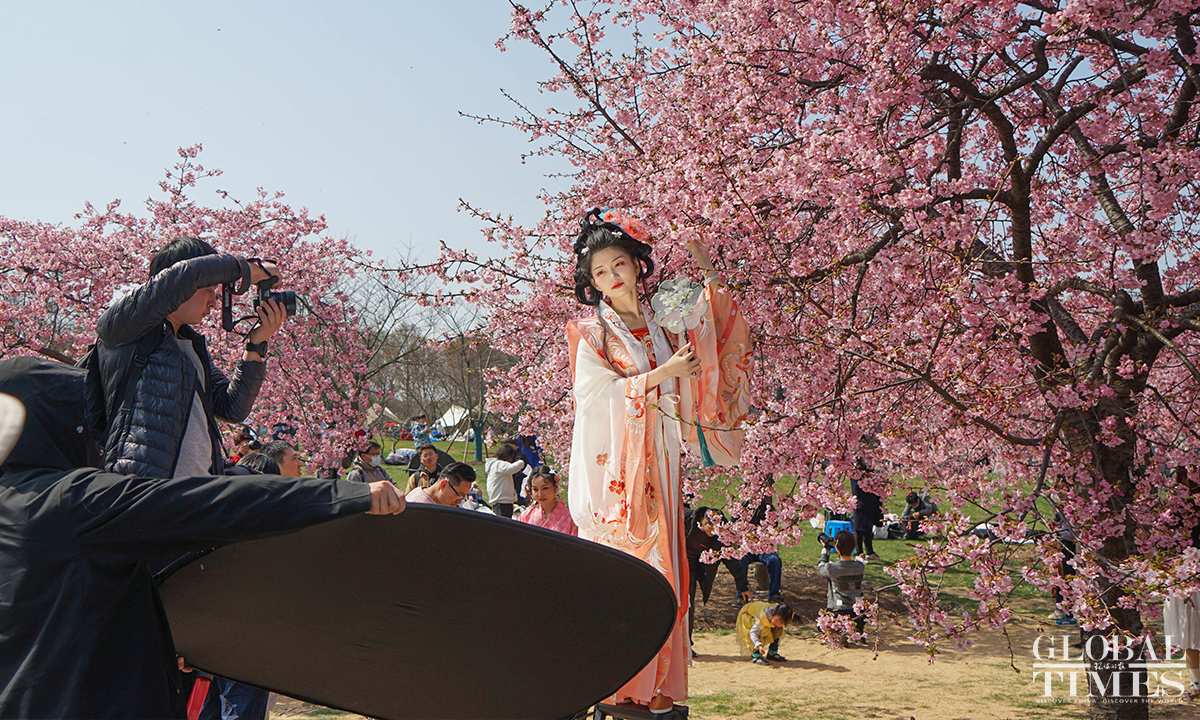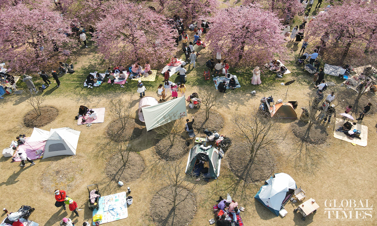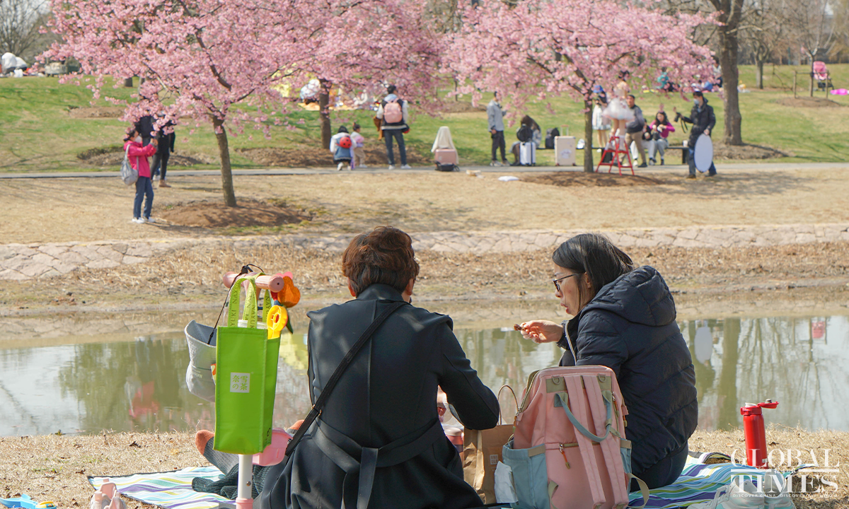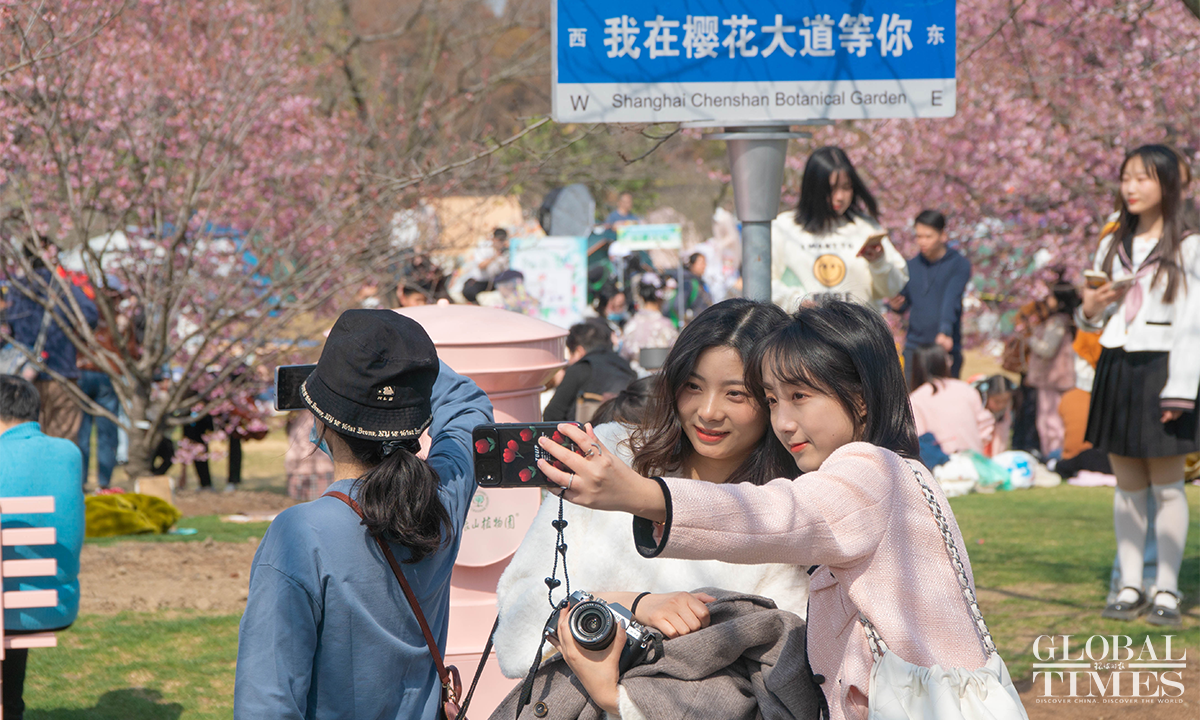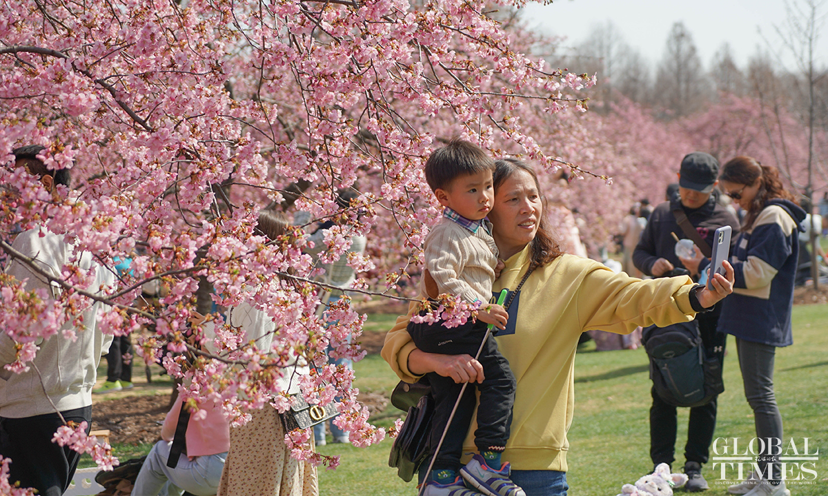 The annual sakura exhibition at Shanghai Chenshan Botanical Garden kicked off on Saturday and will run through April 9 with over 2,000 cherry blossoms and more than 80 species expected to be in full bloom until late April. Occupying an area of about 58,000 square meters, the sakura exhibition has introduced cherry blossom species originating from Japan, Germany, the US, France as well as from China’s Zhejiang, Shandong, Hunan, Anhui and Jiangxi provinces. Parkgoers can enjoy different species of cherry blossoms in full bloom in three stages successively until April 9. (Photos: Lu Ting/GT)