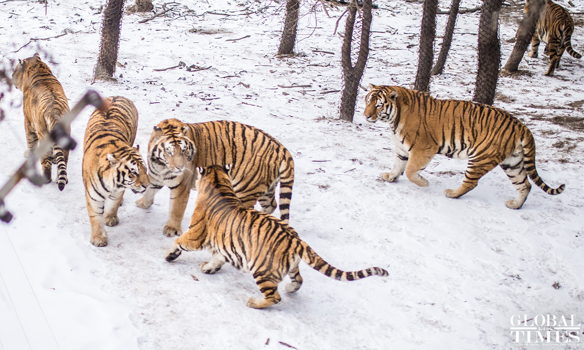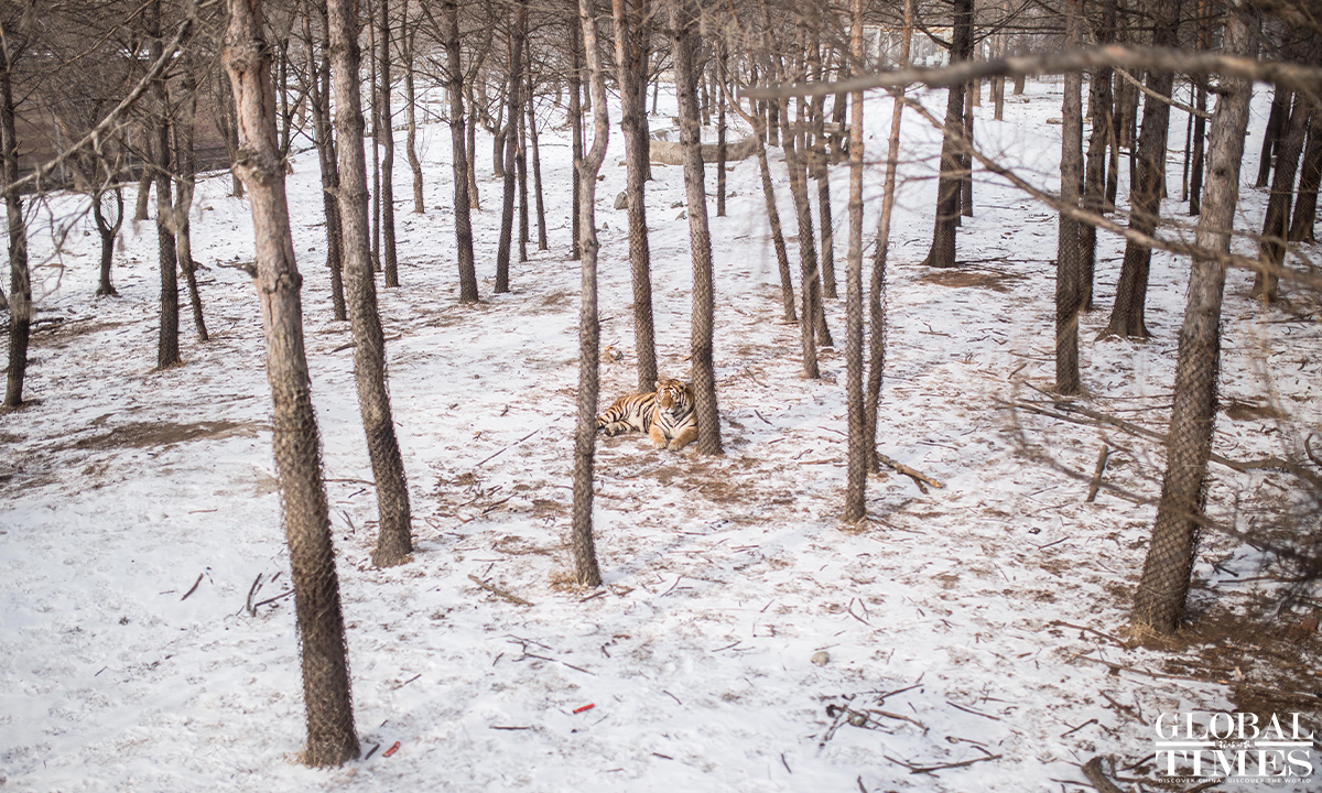 The photos shot in mid-February show that Siberian tigers and other precious wildlife species are under careful protection in the Northeast China Tiger and Leopard National Park. The park, officially designated in 2021, spans an area of over 1.4 million hectares in the northeastern provinces of Jilin and Heilongjiang. Advanced technologies, including a space-air-ground integrated network system, facilitate the protection of the animals. Photos: Shan Jie/GT