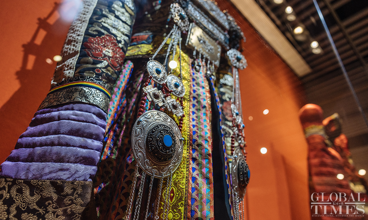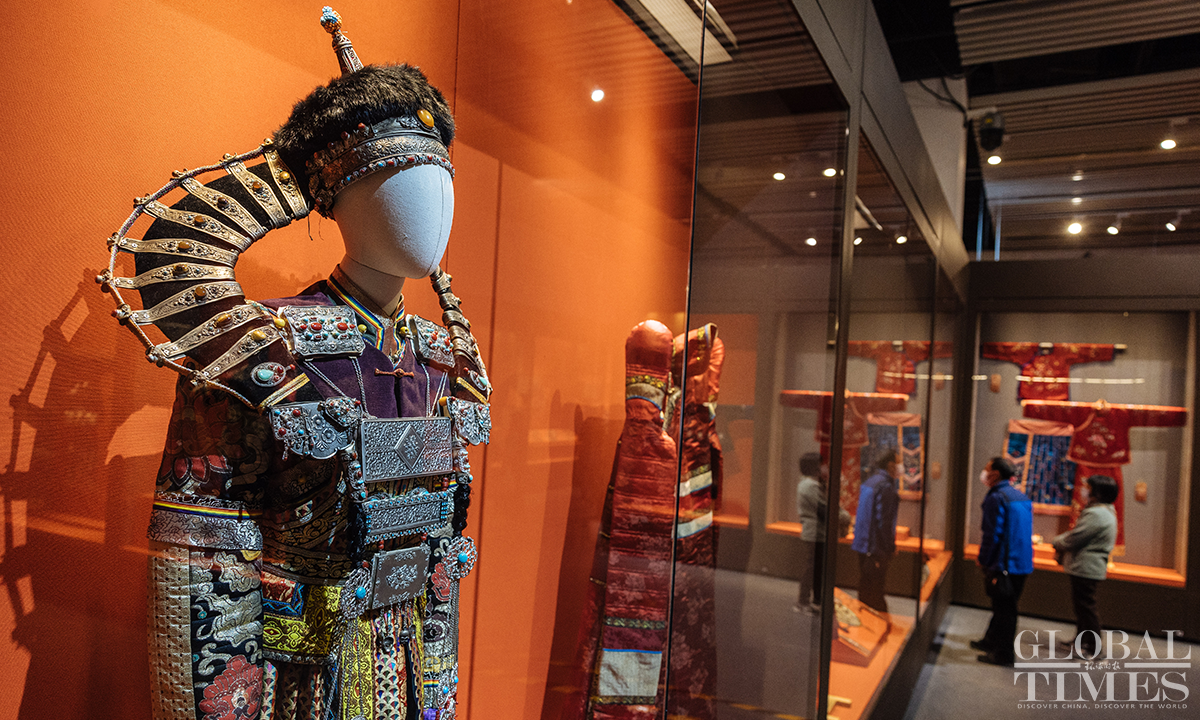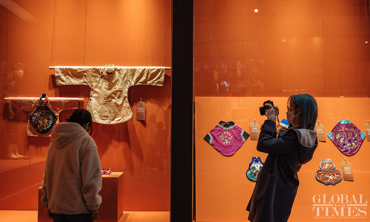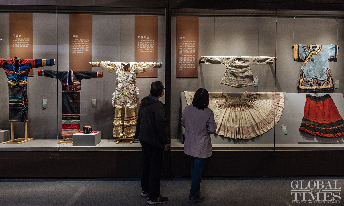 Ahead of International Women's Day, an exhibition featuring female costumes of Chinese ethnic groups opened at the No.1 exhibition hall of the Museum of Chinese Gardens and Landscape Architecture in Beijing. The exhibition selected 180 sets of traditional Chinese costumes of Chinese 33 ethnic groups, which include 103 cultural relics. The exhibits demonstrate the unique artistic charm and cultural value of the female ethnic costumes. Photos: Li Hao/GT