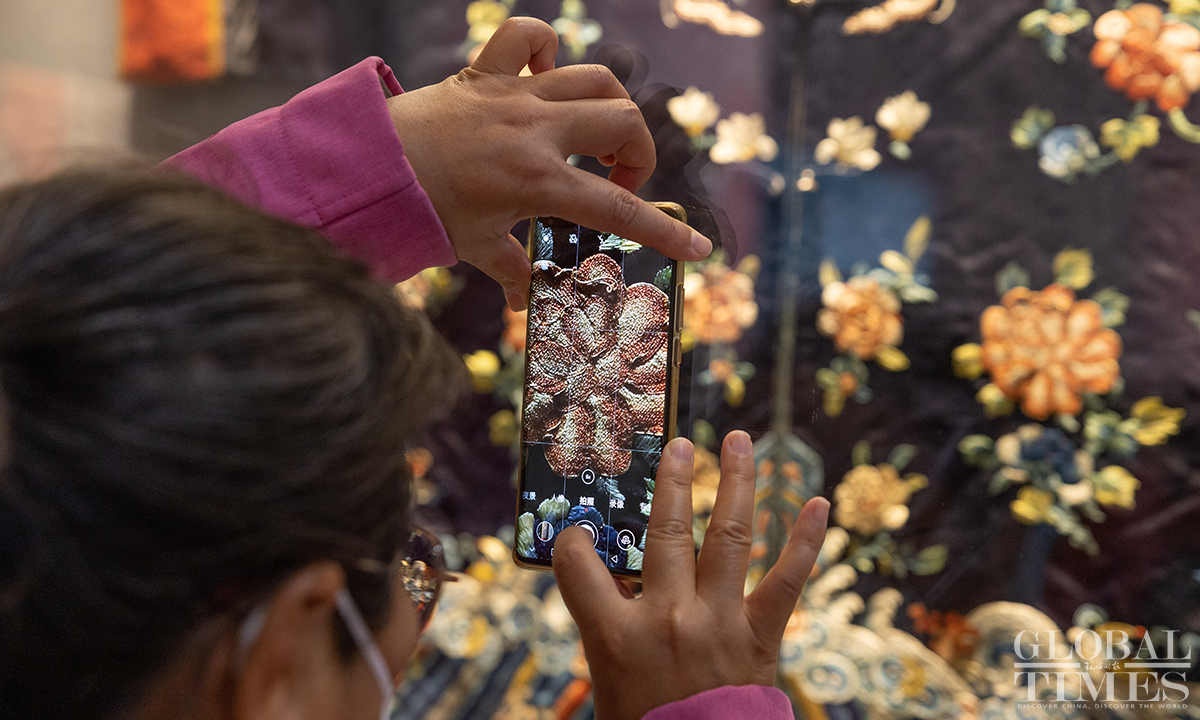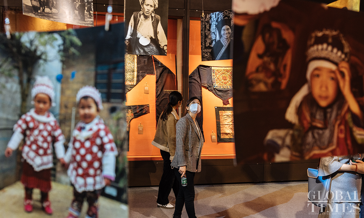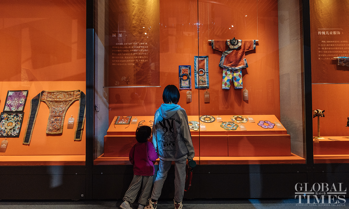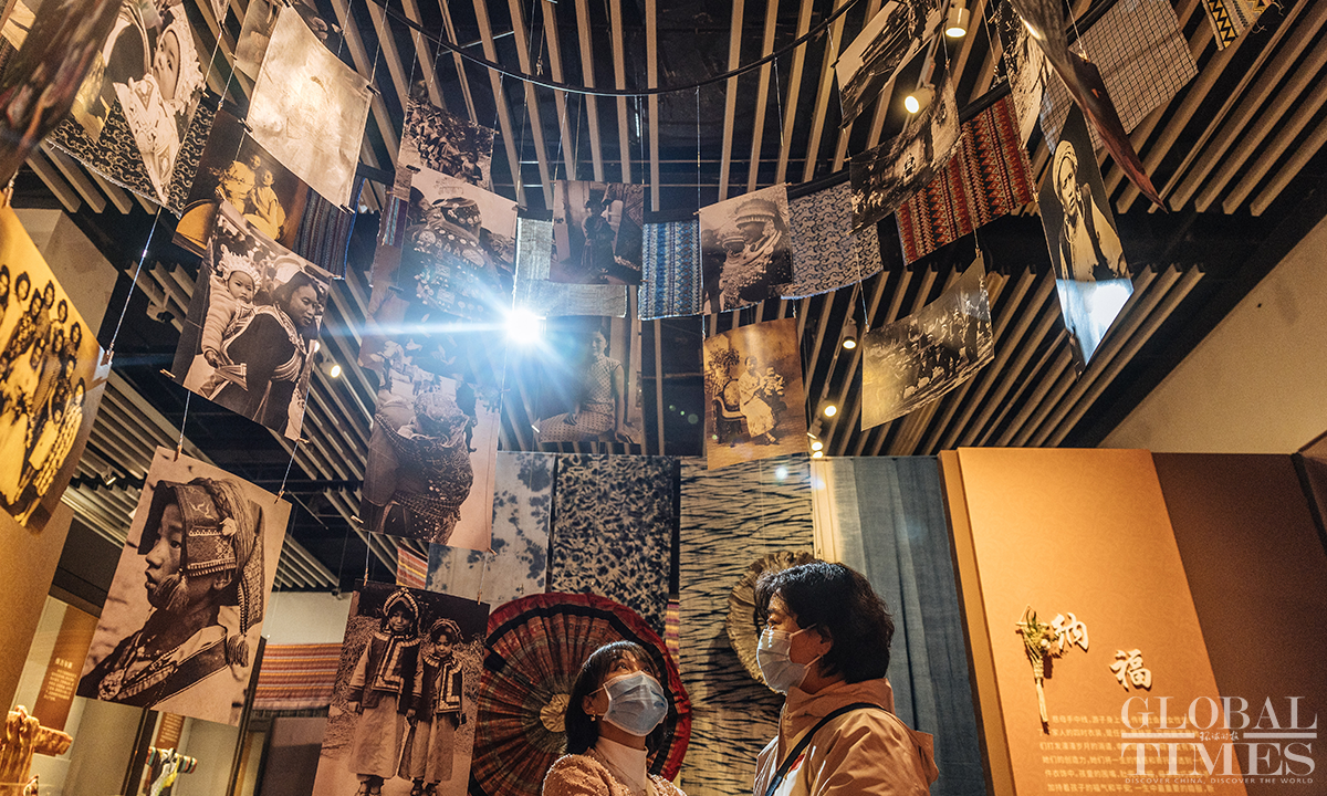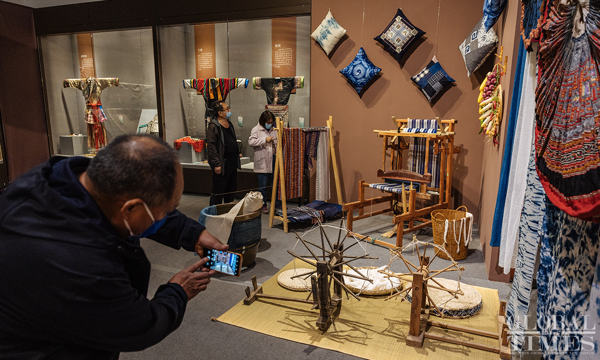 Ahead of International Women's Day, an exhibition featuring female costumes of Chinese ethnic groups opened at the No.1 exhibition hall of the Museum of Chinese Gardens and Landscape Architecture in Beijing. The exhibition selected 180 sets of traditional Chinese costumes of Chinese 33 ethnic groups, which include 103 cultural relics. The exhibits demonstrate the unique artistic charm and cultural value of the female ethnic costumes. Photos: Li Hao/GT