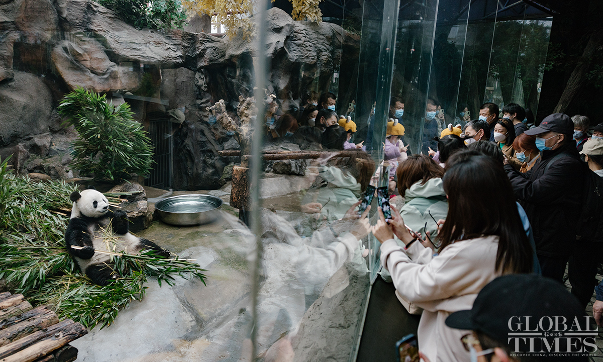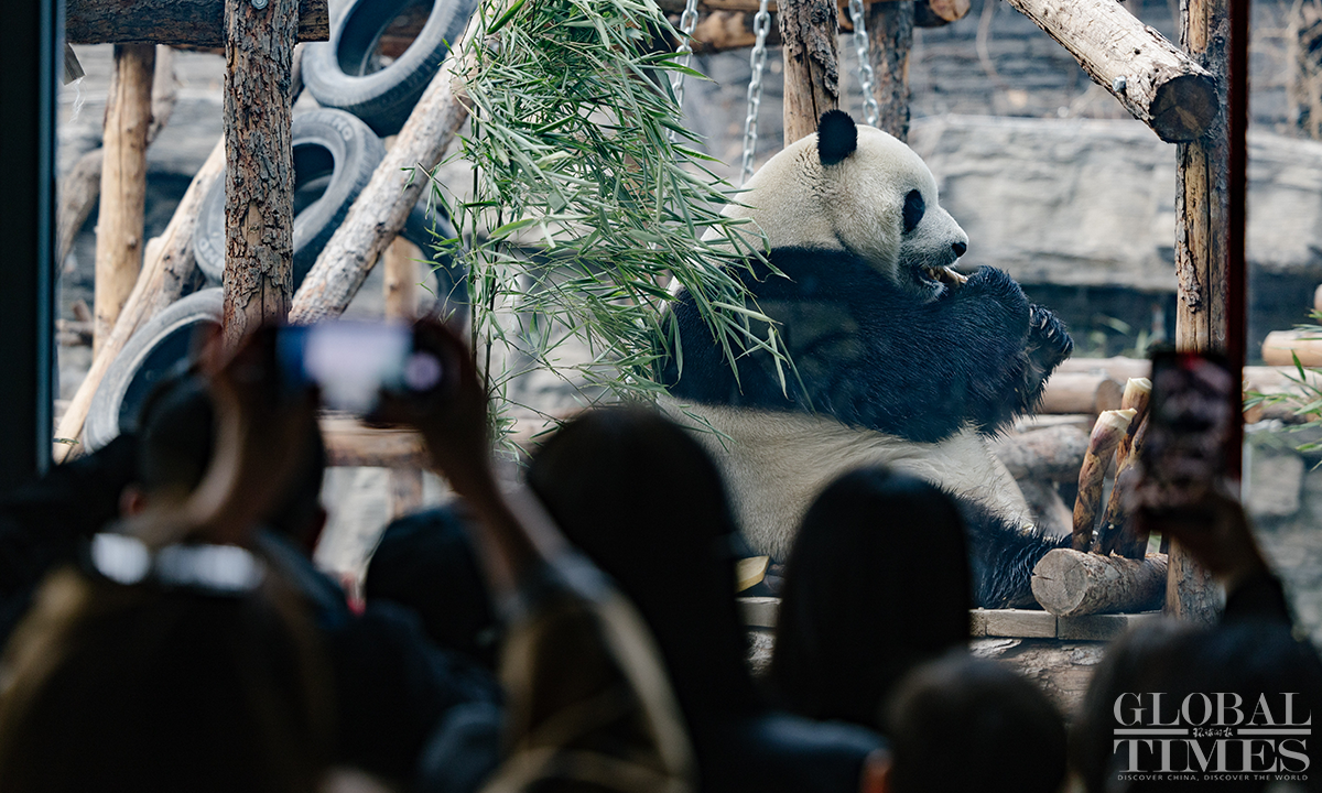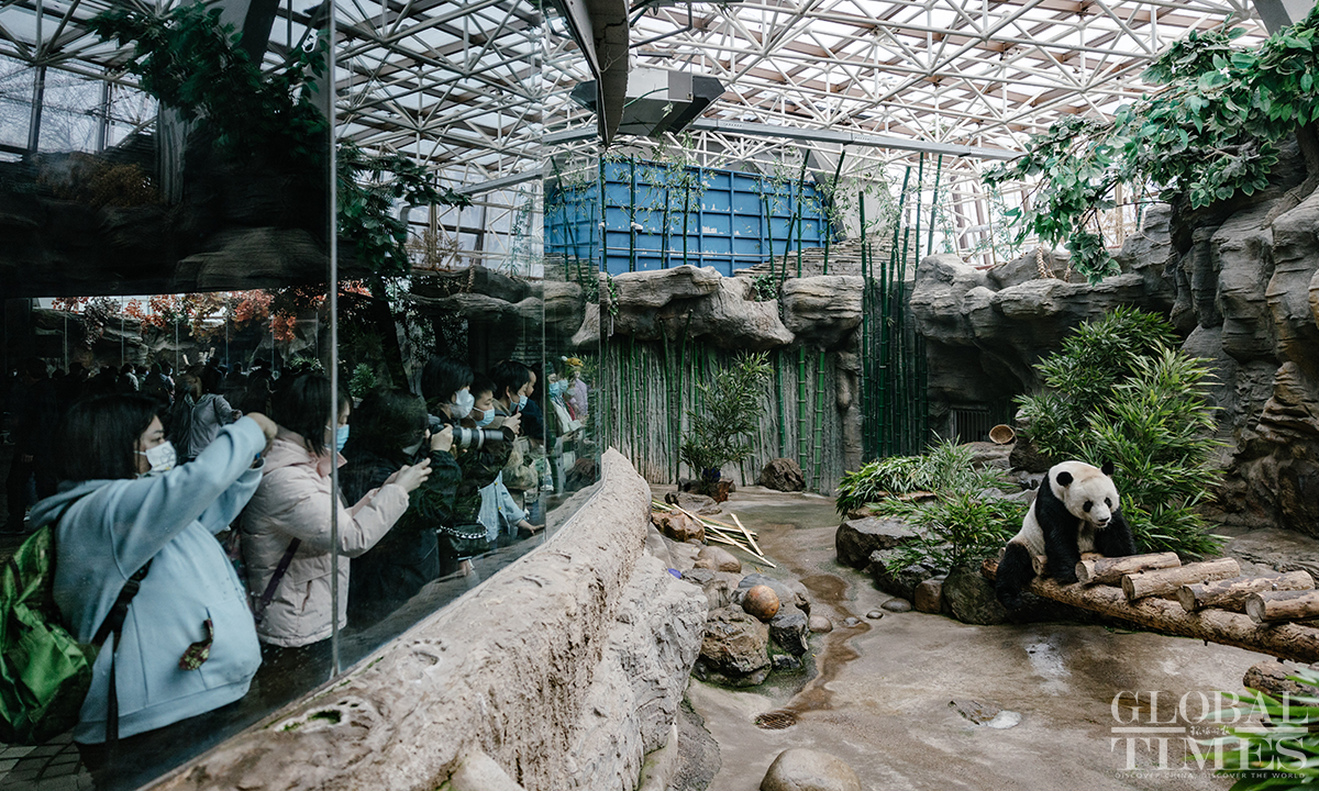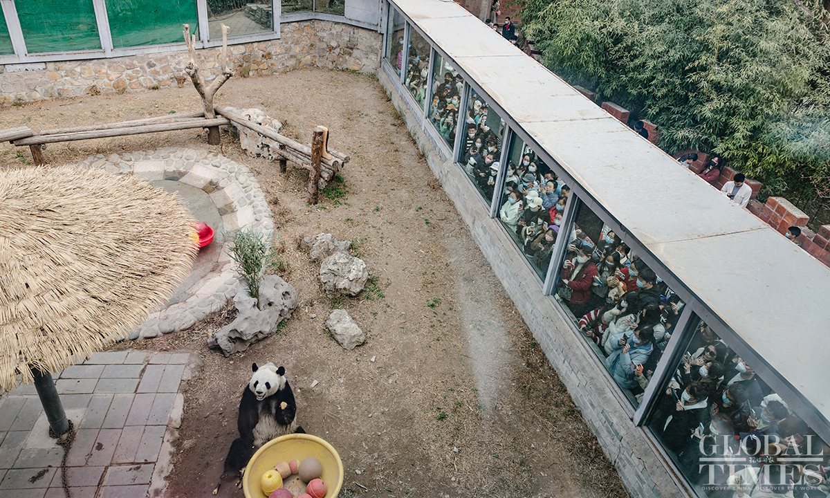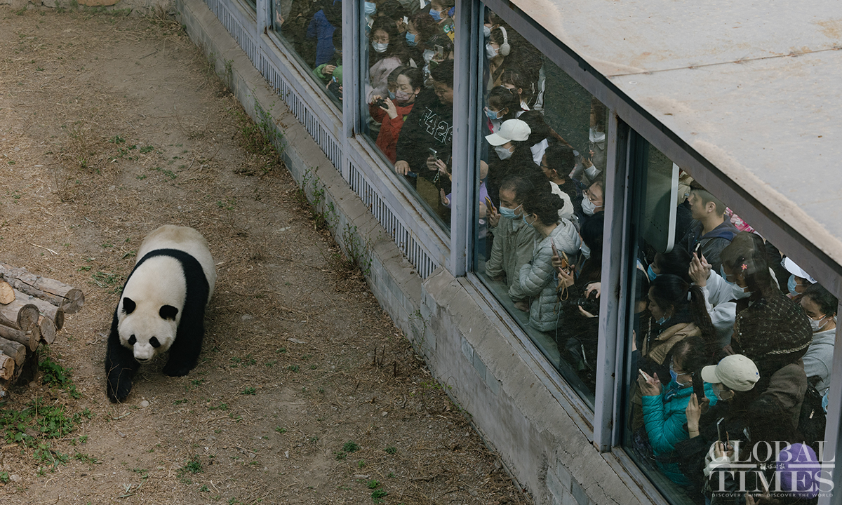The panda house at the Beijing Zoo has recently seen numerous visitors, as people share great concerns over the giant panda Ya Ya's upcoming return to China from the US. Many visitors wait outside the panda house ahead of opening time, hoping to see the adorable pandas. The star of the house, Meng Lan, with his lively personality, attracts a large number of visitors every time he shows up. Photos: Li Hao/GT