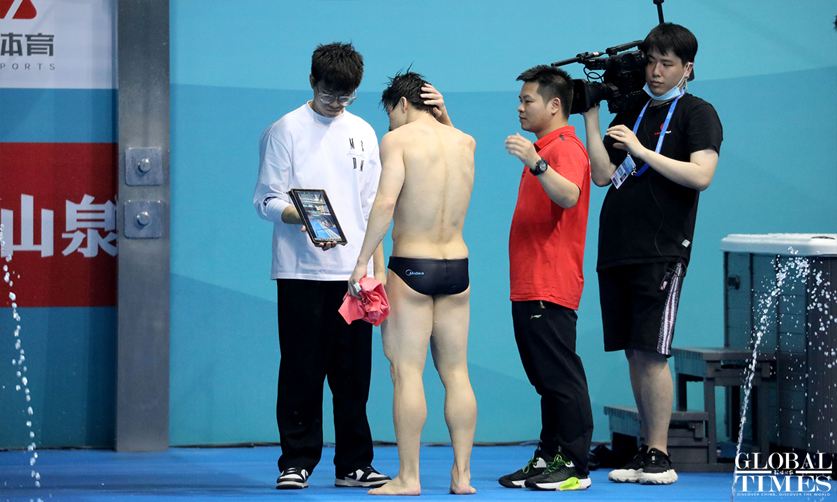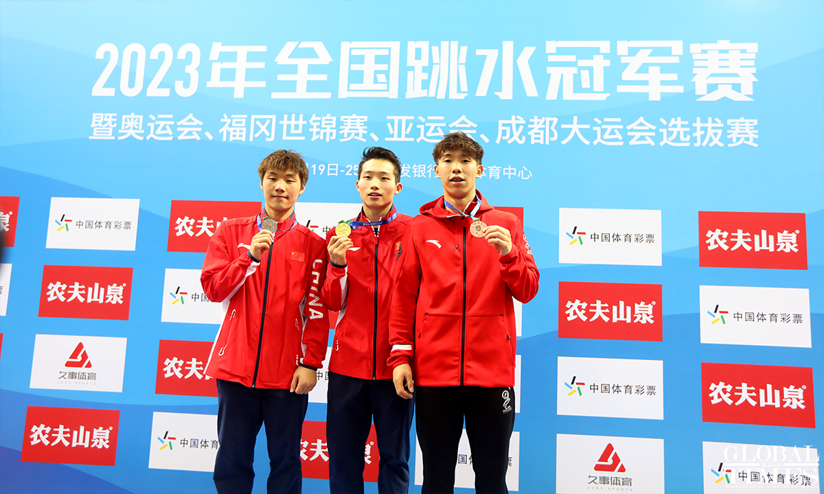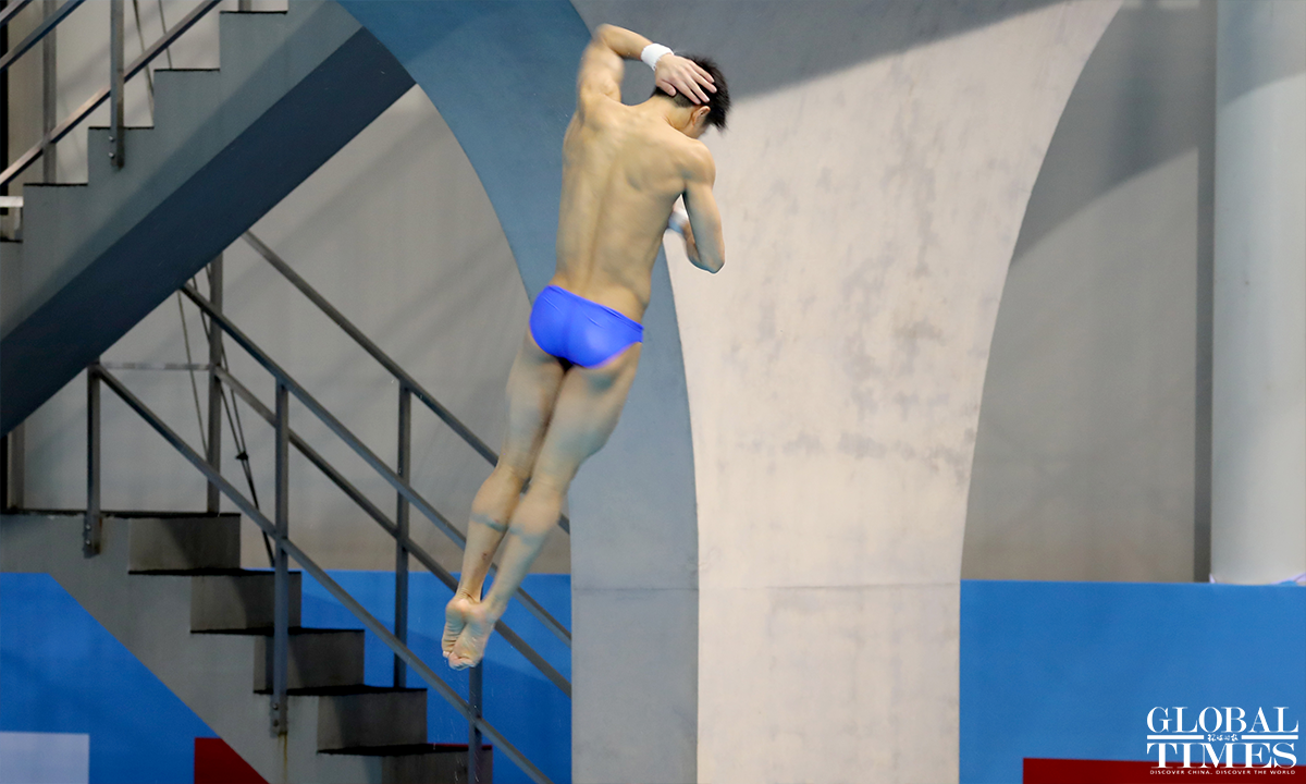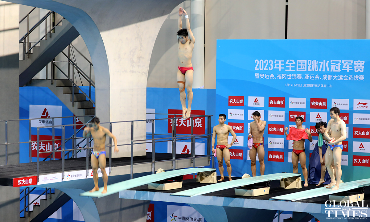 Athlete Wang Zongyuan took gold in the men’s 3-m springboard diving event on March 21. It was part of the China Diving National Championships 2023 & Qualification for the Paris Olympic Games 2024, Fukuoka World Aquatics Championships 2023, Hangzhou Asian Games and Chengdu World University Games. The championships have gathered top Chinese divers, including six Olympic champions and 13 world champions. Photos: Chen Xia/GT