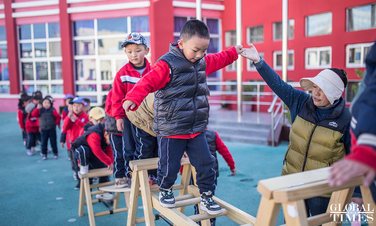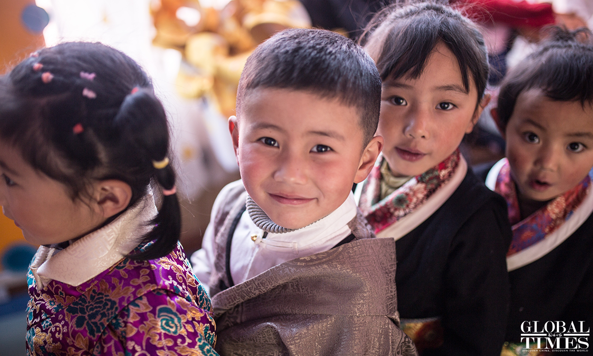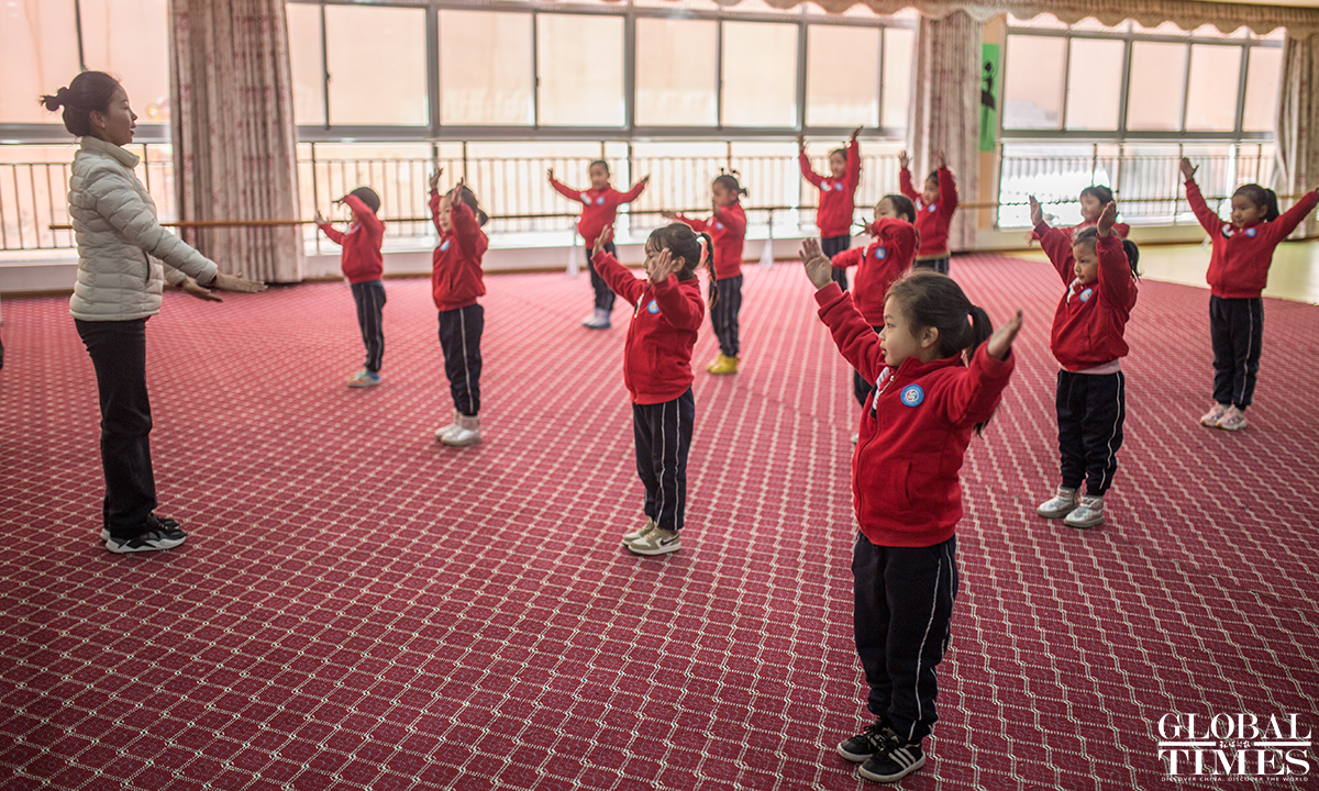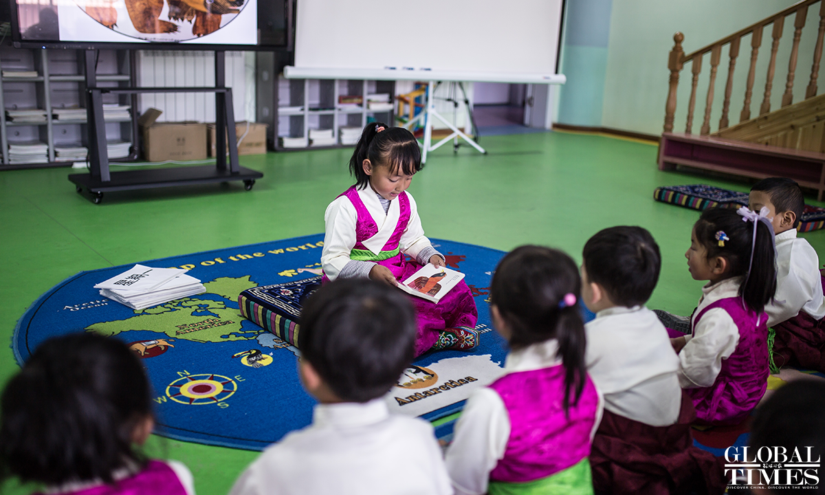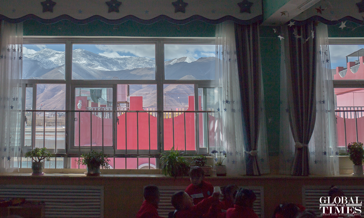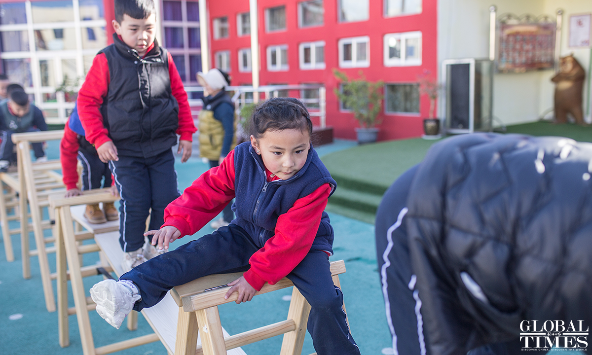 At the Lhasa Experimental Kindergarten in Southwest China’s Xizang Autonomous Region, children are fully immersing themselves in traditional local culture by telling stories in Tibetan language, playing traditional board games, learning Tibetan dances, and wearing Tibetan costumes. During a visit to the kindergarten on March 22, 2023, the Global Times reporters observed that all the children were able to express themselves fluently in both Putonghua and Tibetan language. Photos: Shan Jie/GT