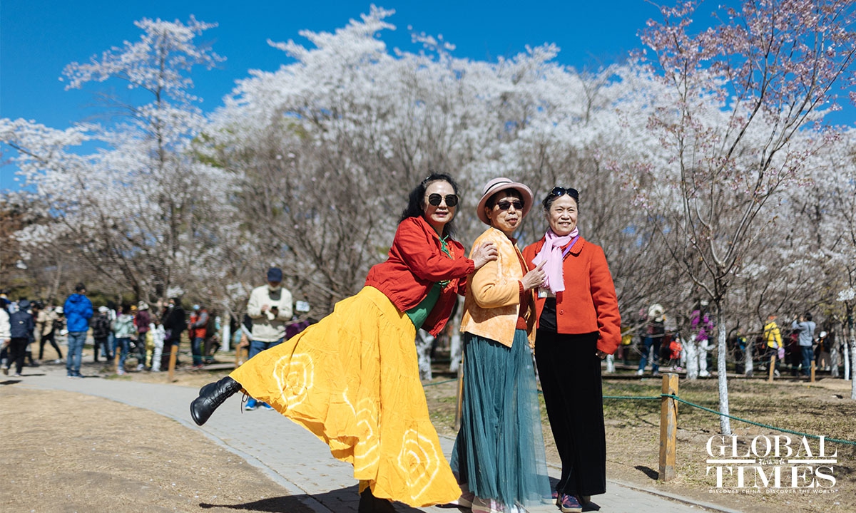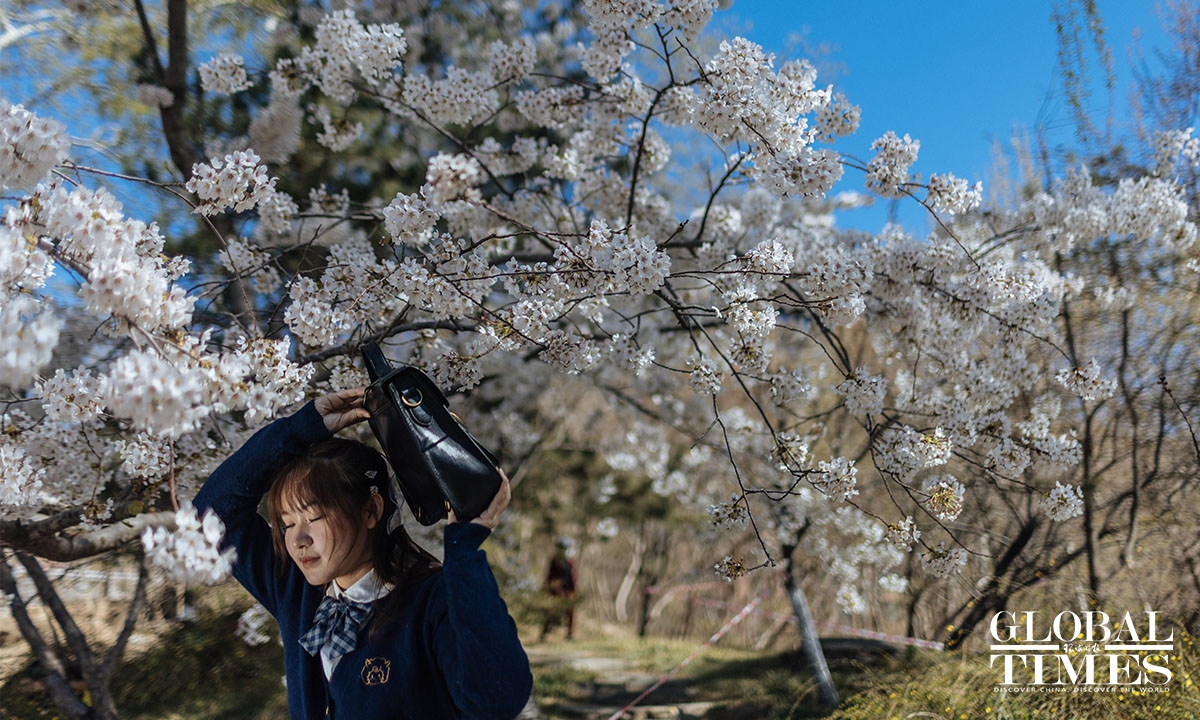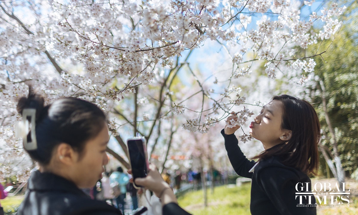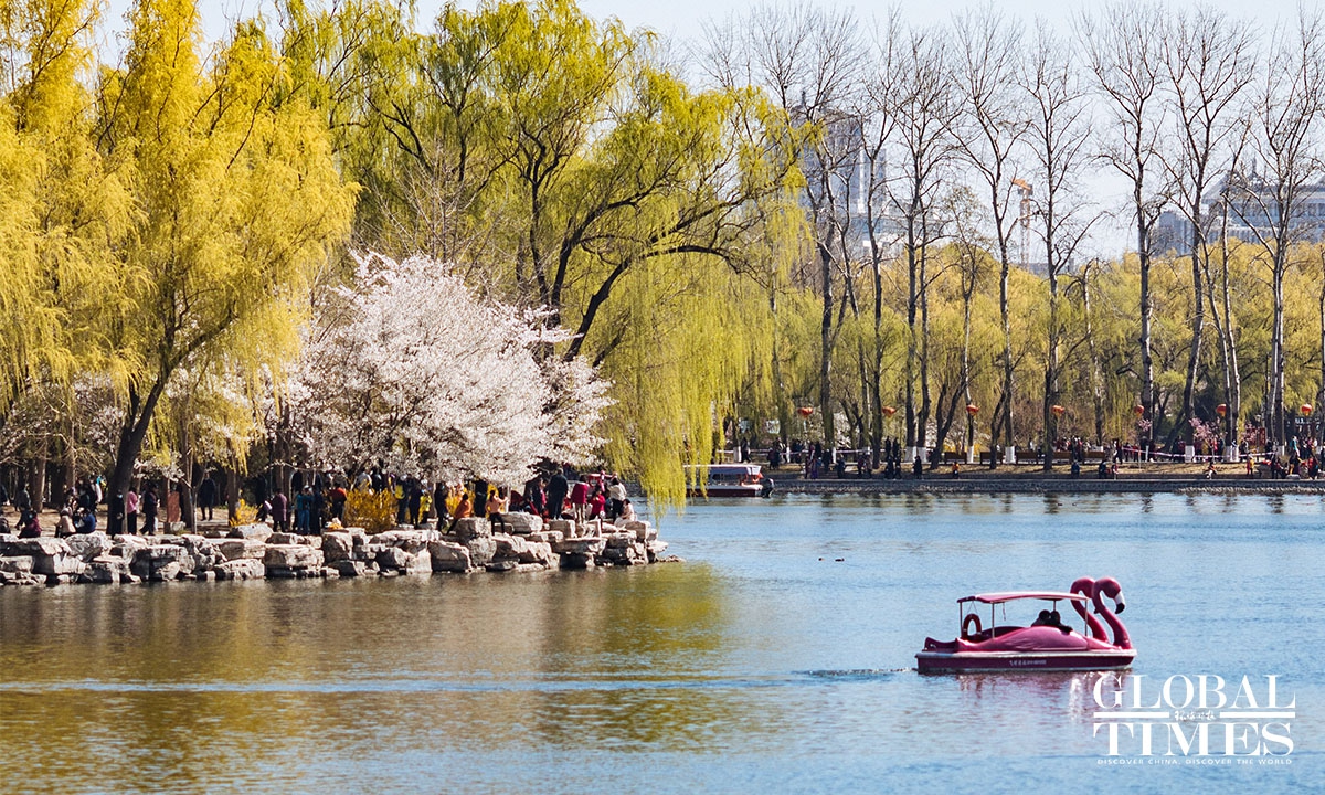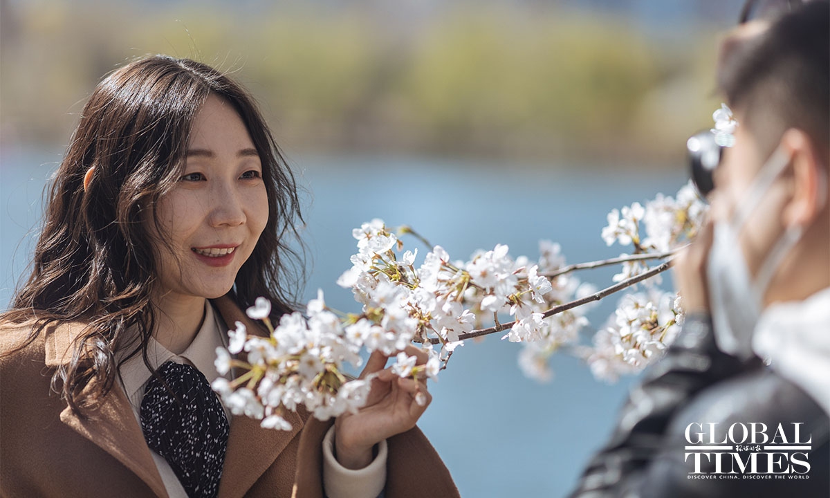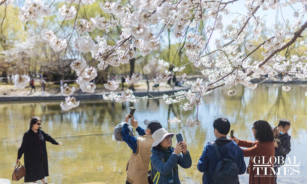 Early-blooming cherry blossoms in Yuyuantan Park in Beijing ushered in the best viewing period, and various cherry blossoms in the park attracted a large number of tourists to visit. Photos: Li Hao/GT