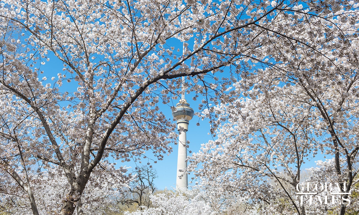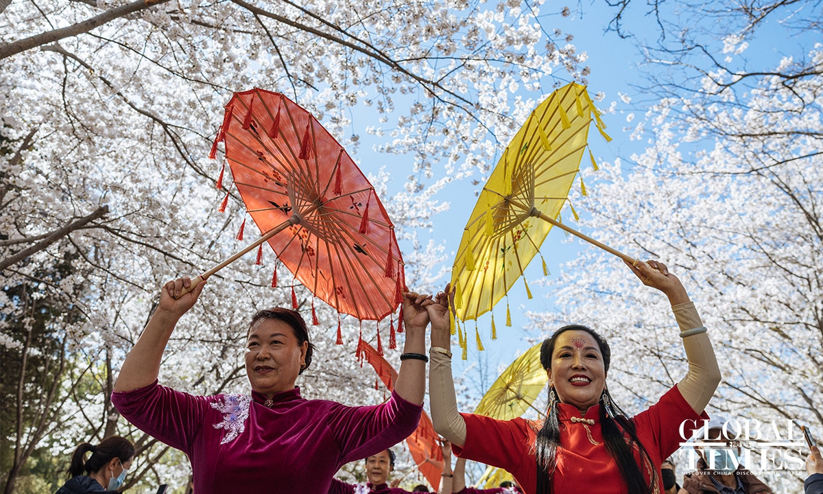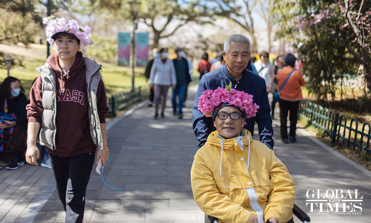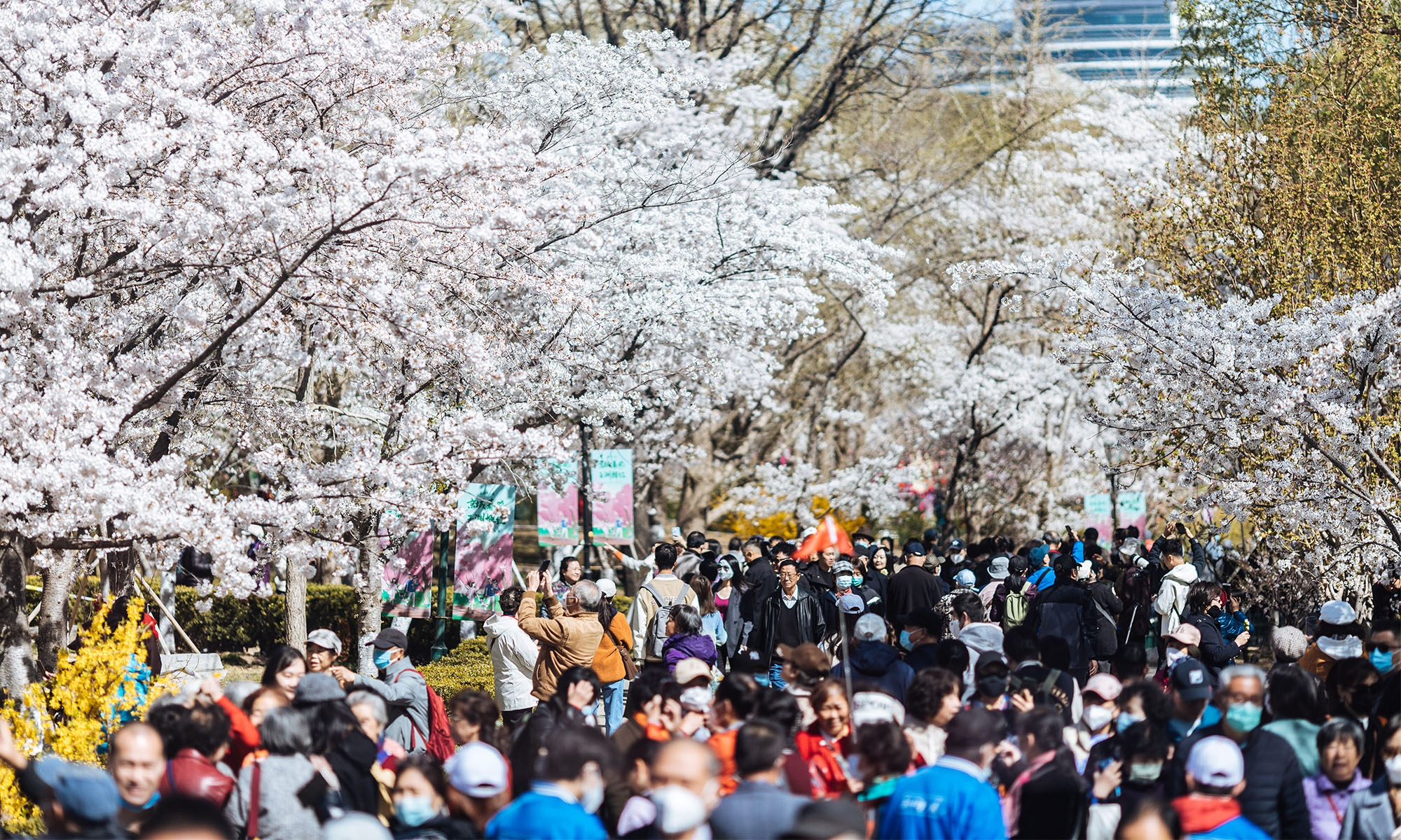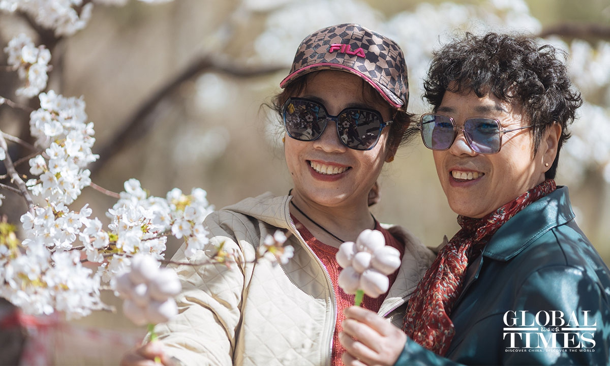 Early-blooming cherry blossoms in Yuyuantan Park in Beijing ushered in the best viewing period, and various cherry blossoms in the park attracted a large number of tourists to visit. Photos: Li Hao/GT