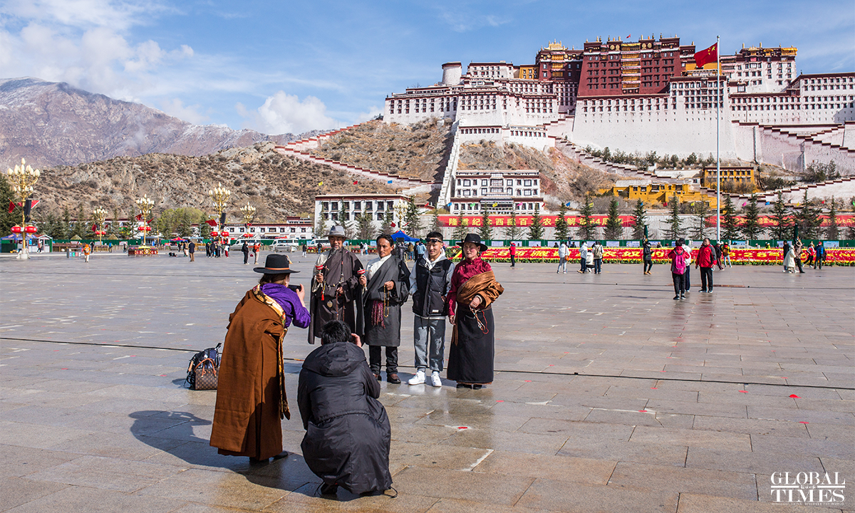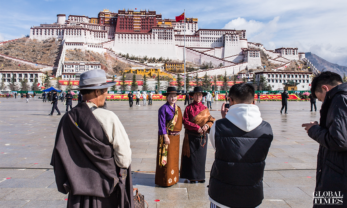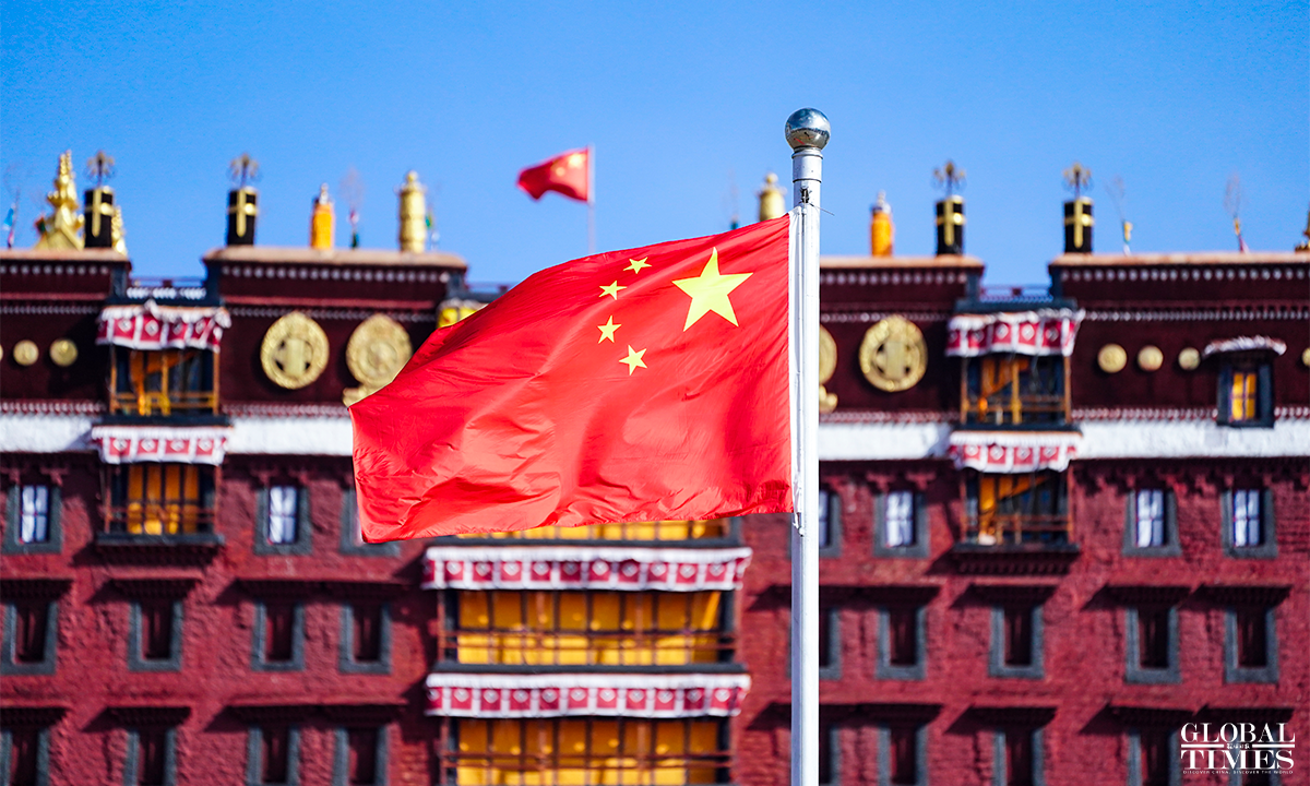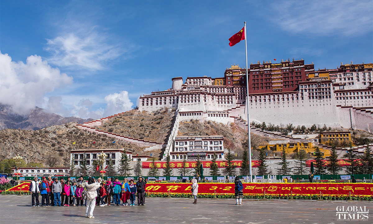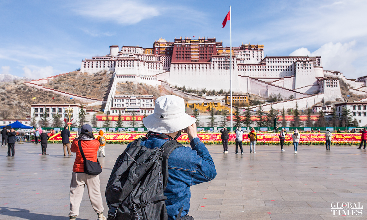 In a spring snow flurry, a flag-raising ceremony is held to celebrate Serfs' Emancipation Day at the square in front of the Potala Palace in Lhasa, capital city of Southwest China's Xizang Autonomous Region, on March 28, 2023. Photos: Shan Jie and Fan Wei/GT