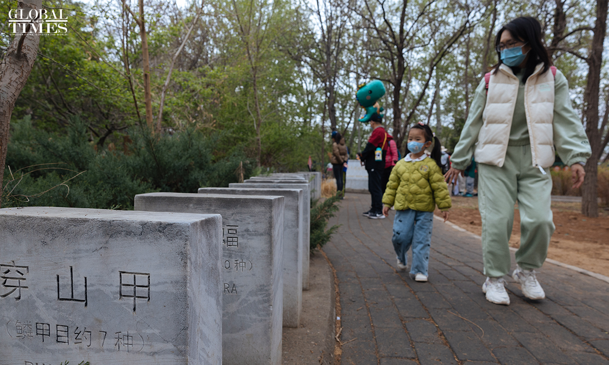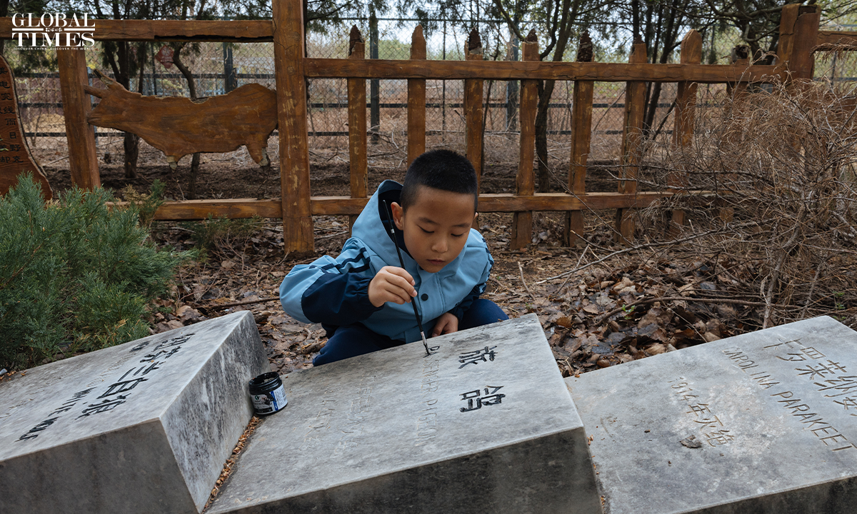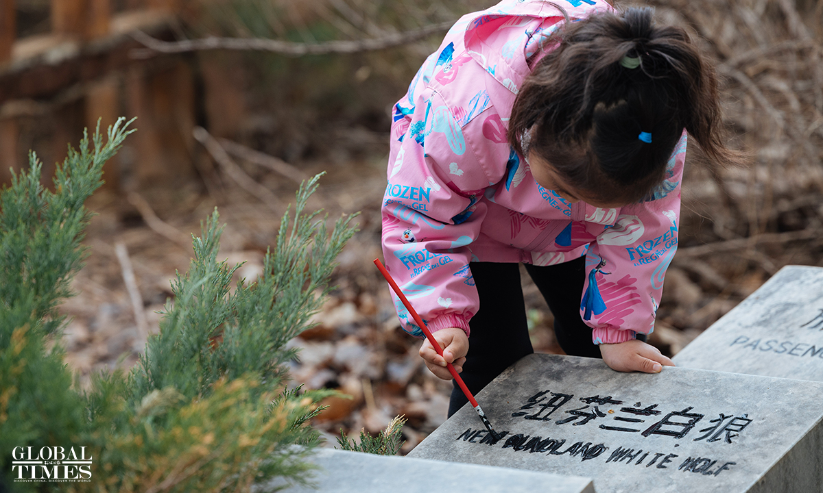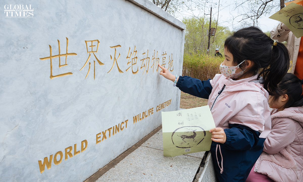 On April 5, 2023, the Tomb-sweeping Day, many families with children came to sweep the graves for extinct animals in Beijing Nanhaizi Milu Park, which is a traditional event held by the park every year during Qingming Festival, or Tomb-Sweeping Day. Volunteers lead children to sweep the graves for extinct animals, learn about wildlife knowledge, and stimulate people's attention to animal protection. Photos: Li Hao/GT