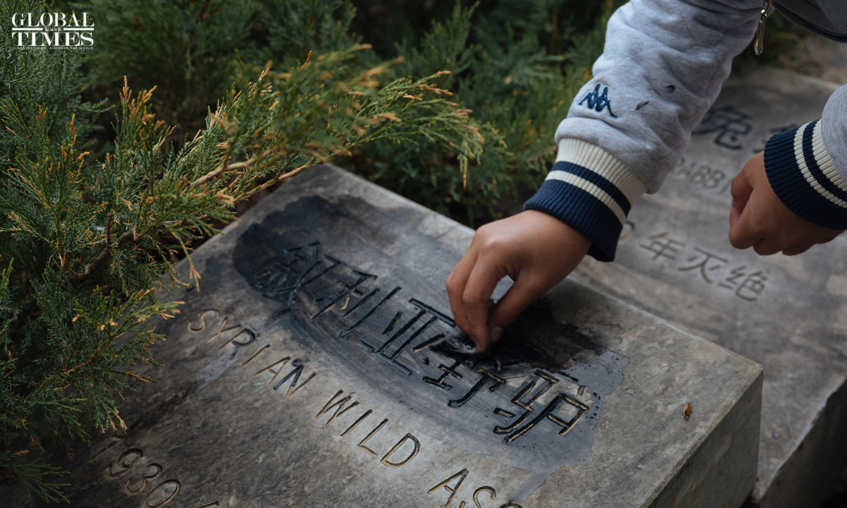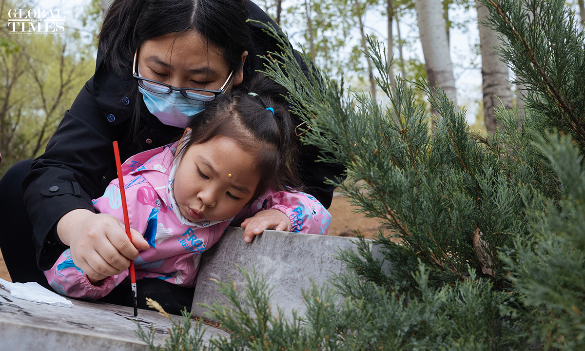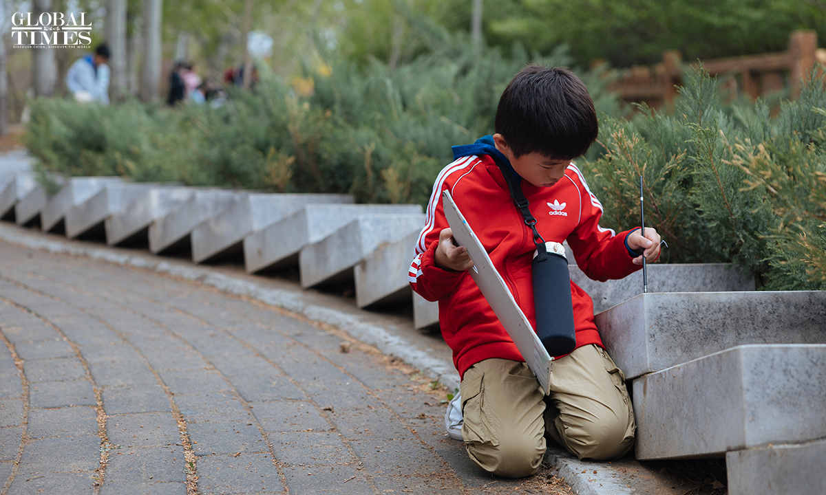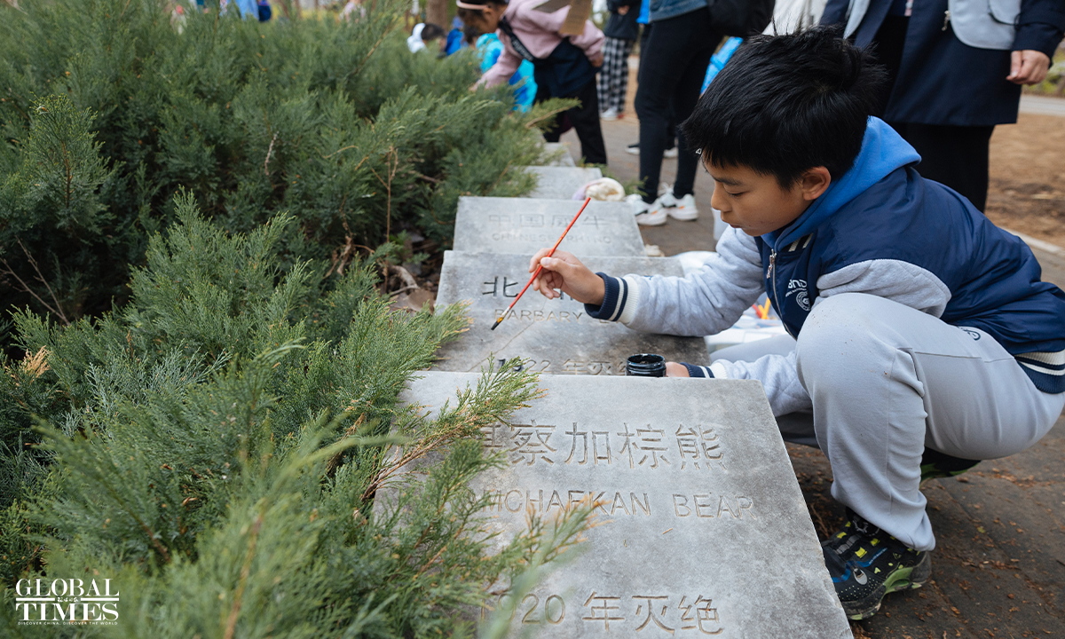 On April 5, 2023, the Tomb-sweeping Day, many families with children came to sweep the graves for extinct animals in Beijing Nanhaizi Milu Park, which is a traditional event held by the park every year during Qingming Festival, or Tomb-Sweeping Day. Volunteers lead children to sweep the graves for extinct animals, learn about wildlife knowledge, and stimulate people's attention to animal protection. Photos: Li Hao/GT