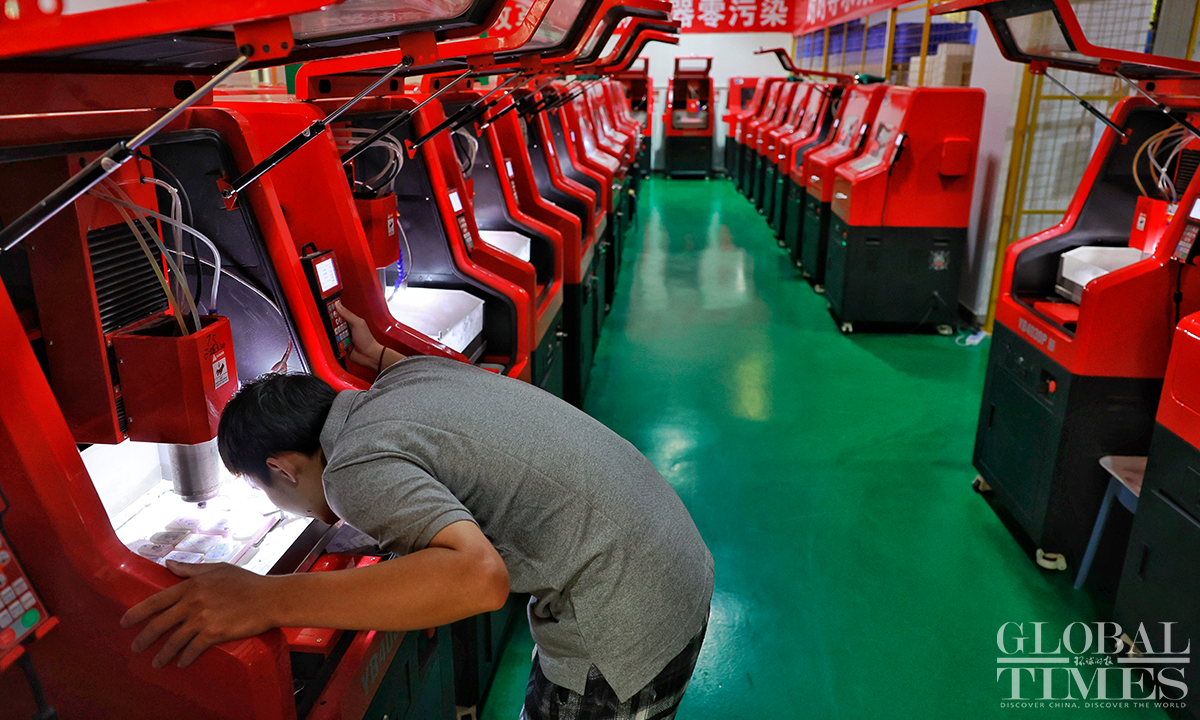 A number of domestic and foreign jewelry companies have set up processing and manufacturing plants in the Haikou Comprehensive Bonded Zone in S China's Hainan Province, taking advantage of relevant free trade port policies. Hainan aims to realize independent customs operations by the end of 2025. So far, a variety of imports to Hainan such as yachts, airplanes and autos have already enjoyed tariff exemptions. Photos: Li Hao/GT