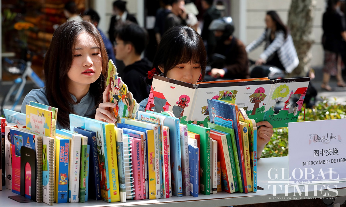 Shanghai celebrates World Book and Copyright Day which falls on April 23, holding a number of book sharing events and exhibitions. Shanghai Cervantes Library held a series of activities on April 22, including book exchanges, new book sharing sessions and exhibitions. All visitors have access to the collection of more than 15,000 books in Spanish and Chinese. A new cultural landmark in Xuhui District, the Zikawei Library, also attracted many readers on April 23. As a comprehensive library, it incorporates books, a reading area, an exhibition and lecture halls.