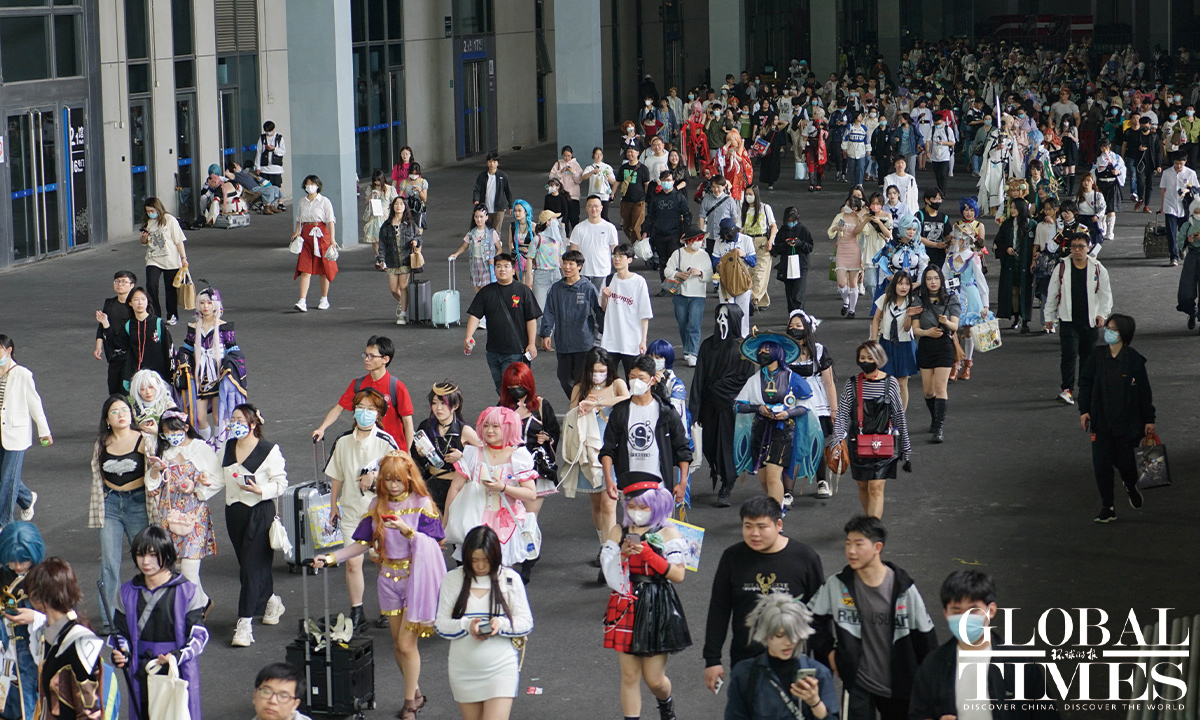 COMICUP29, one of the largest animation fan-cultural exhibitions in China kicks off at the National Exhibition and Convention Center in (NECC) Shanghai on May 2. During the exhibition, visitors can not only enjoy wonderful animation themed activities, comics, games, novels and other creative arts, but also purchase a large number of official customized and fan-made products. Photos: Lu Ting/GT