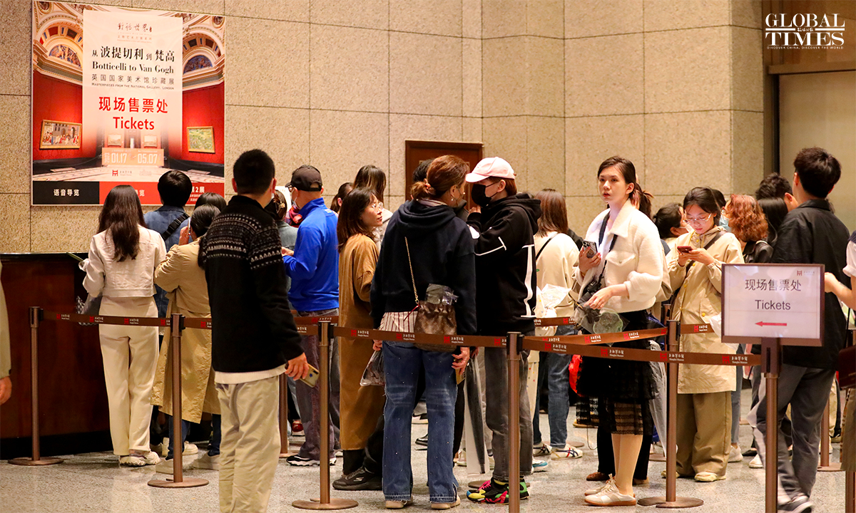 The exhibition, jointly held by the Shanghai Museum and the National Gallery of the UK, displays 52 paintings from 50 well-known European art masters such as Raphael, Titian, Caravaggio, Rembrandt, Constable, Monet, and Van Gogh. It has attracted more than 400,000 visitors since kicking off on January 17. Photos: Chen Xia/GT