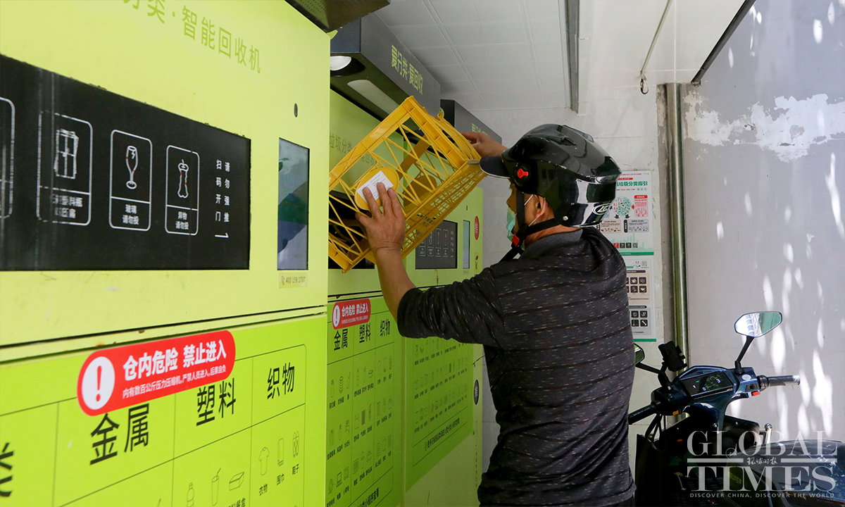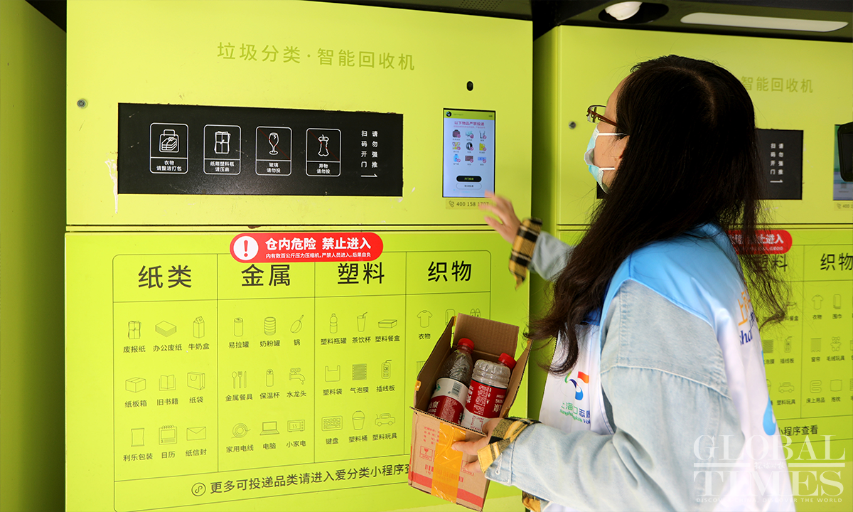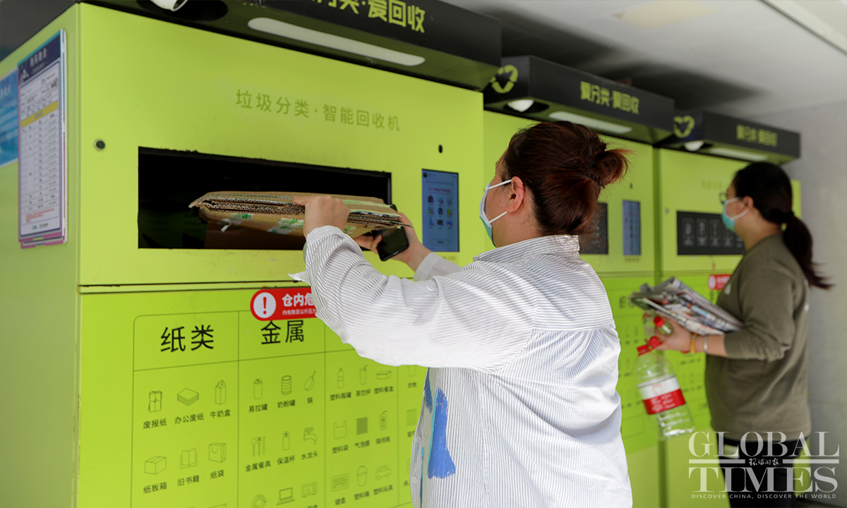 Volunteers in a residential community of central Shanghai’s Hongkou district discussed and practiced better ways of garbage differentiation on May 23, 2023. Garbage sorting is being carried out in 297 cities at or above prefecture level across China, with an average coverage rate of 82.5 percent in residential communities. Photos: Chen Xia/GT
