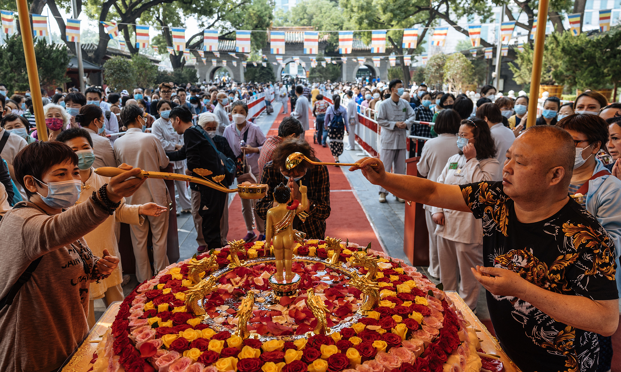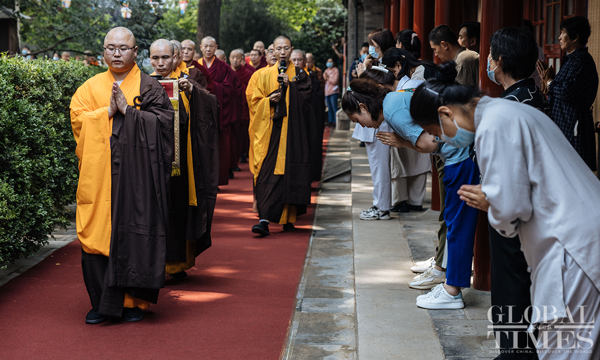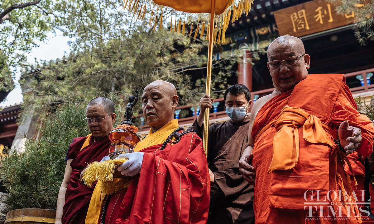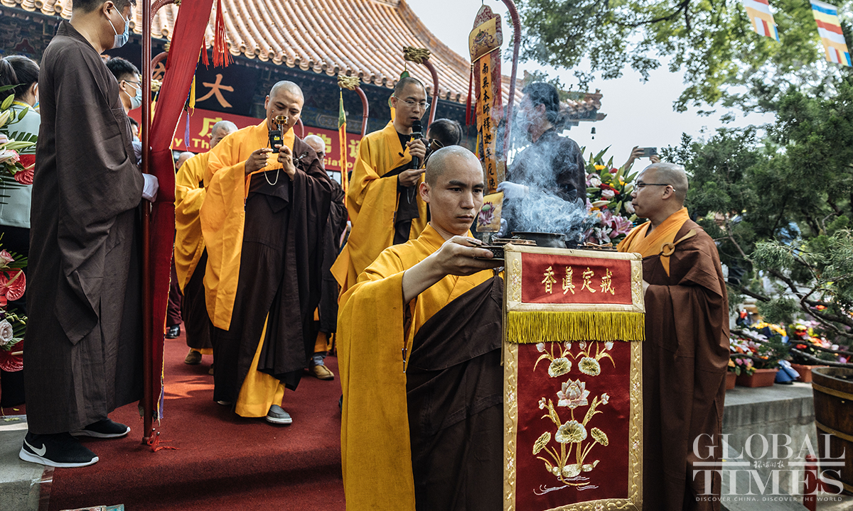 The Buddhist Association of China held a celebration for Buddha's Birthday at Guangji Temple in Beijing on May 26, 2023. Representatives from the Han, Tibetan, and Southern Buddhist communities across the country, as well as diplomats from Cambodia, South Korea, Myanmar, Nepal, Sri Lanka, Thailand, Vietnam, Kazakhstan, Uzbekistan and other countries, gathered with guests and local believers to celebrate the occasion. Photos: Li Hao/GT