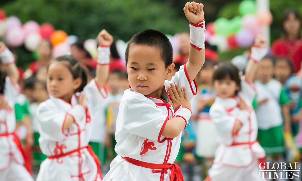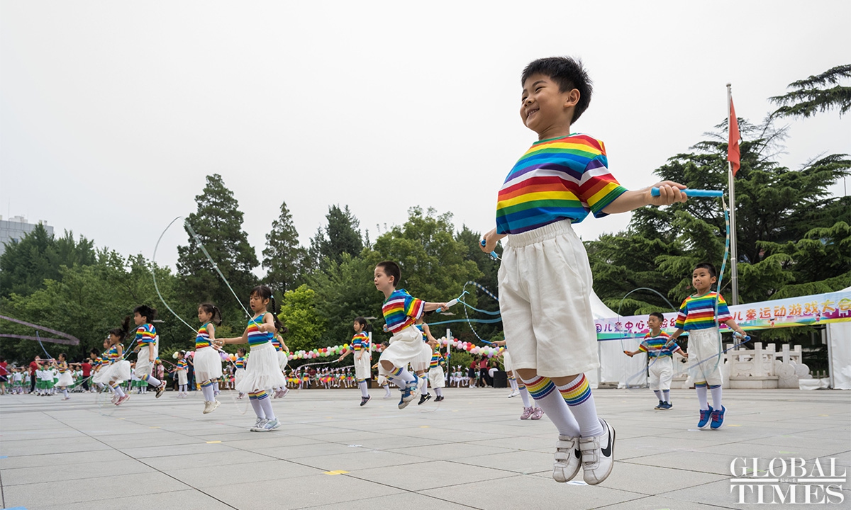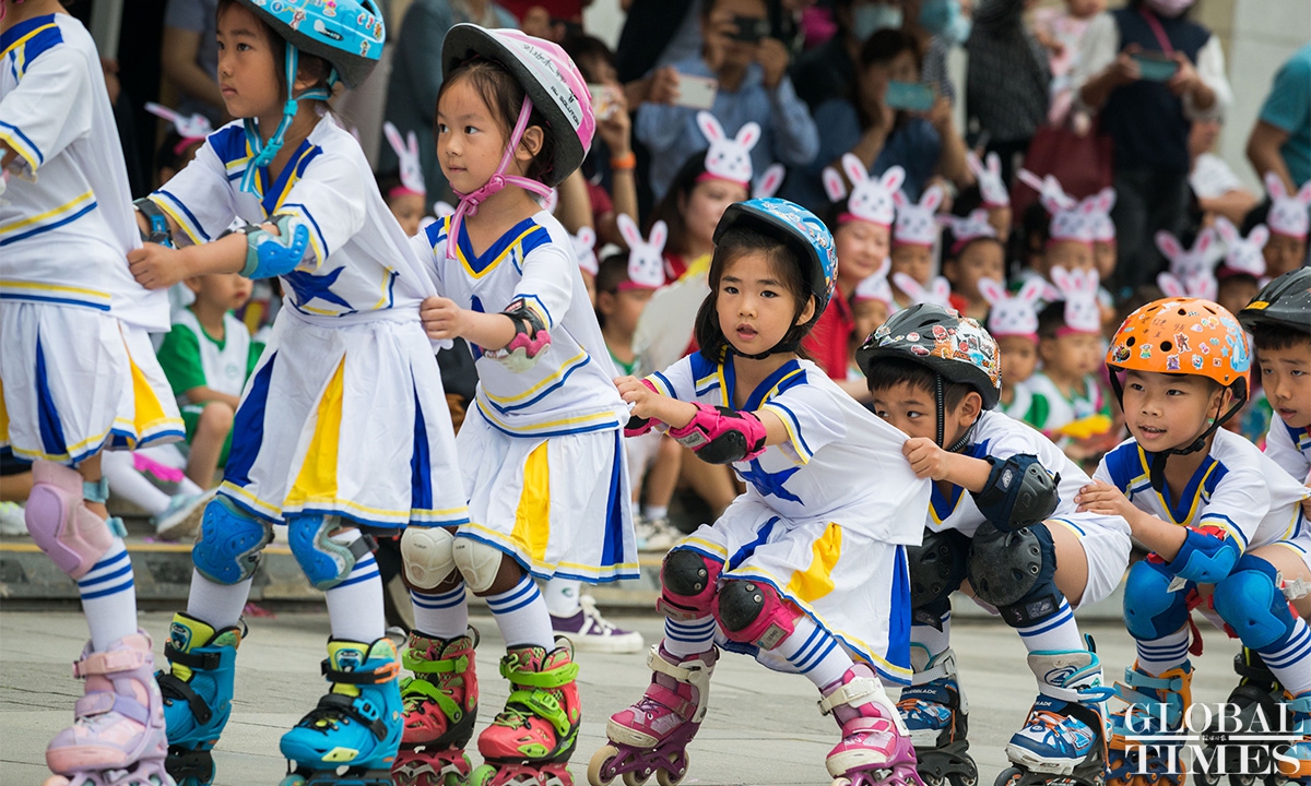 Various sports games such as fancy skating, fancy rope jumping, traditional martial arts, ball games and folk games were held in China National Children’s Center in Beijing on May 31 to celebrate Children’s Day, which falls on Thursday. These sports events are aimed to help children have a better knowledge of China’s excellent traditional culture and help them to build cultural confidence. Photos: Chen Tao/GT