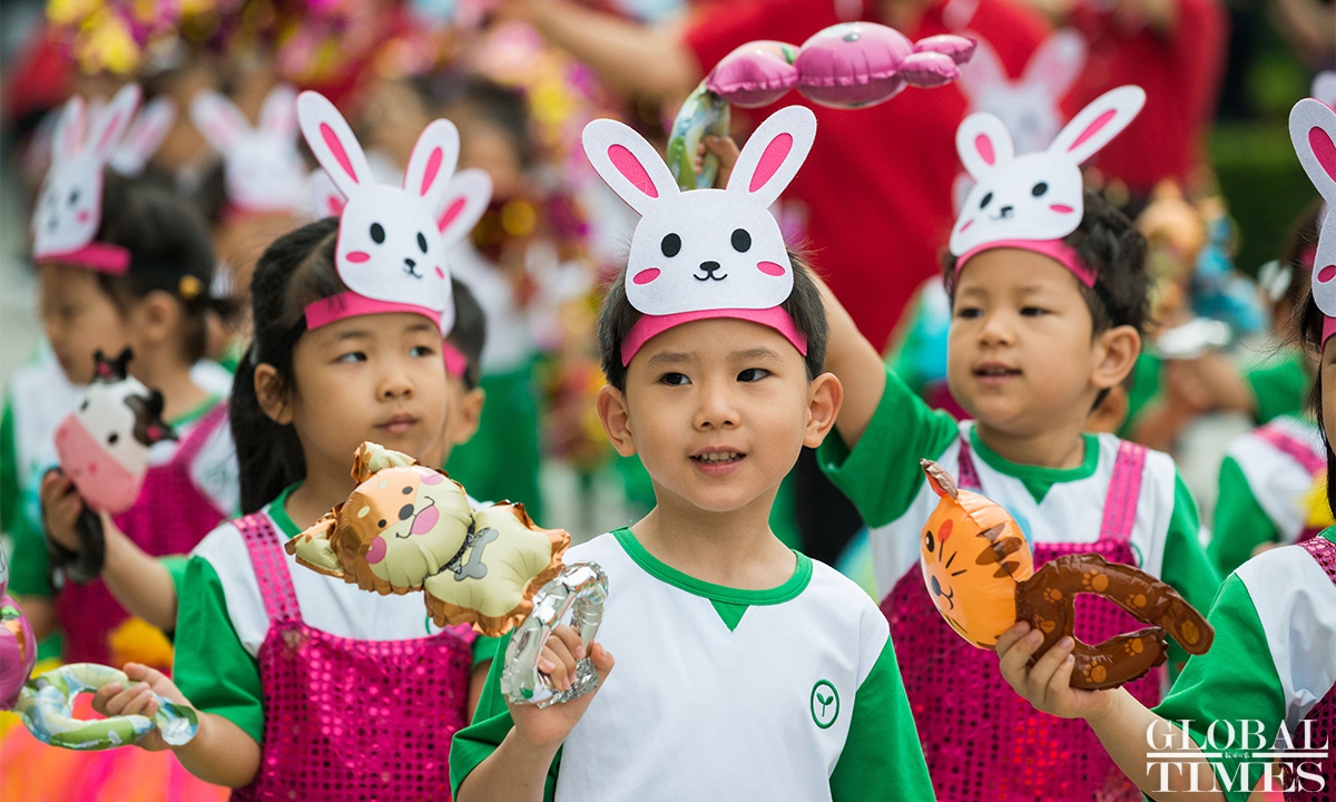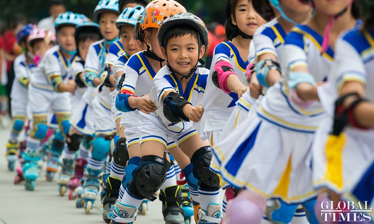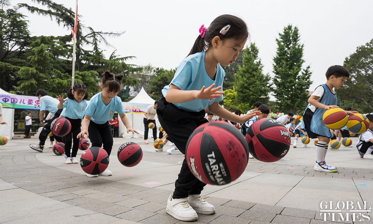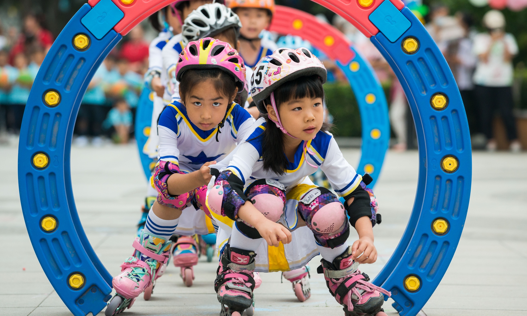 Various sports games such as fancy skating, fancy rope jumping, traditional martial arts, ball games and folk games were held in China National Children’s Center in Beijing on May 31 to celebrate Children’s Day, which falls on Thursday. These sports events are aimed to help children have a better knowledge of China’s excellent traditional culture and help them to build cultural confidence. Photos: Chen Tao/GT