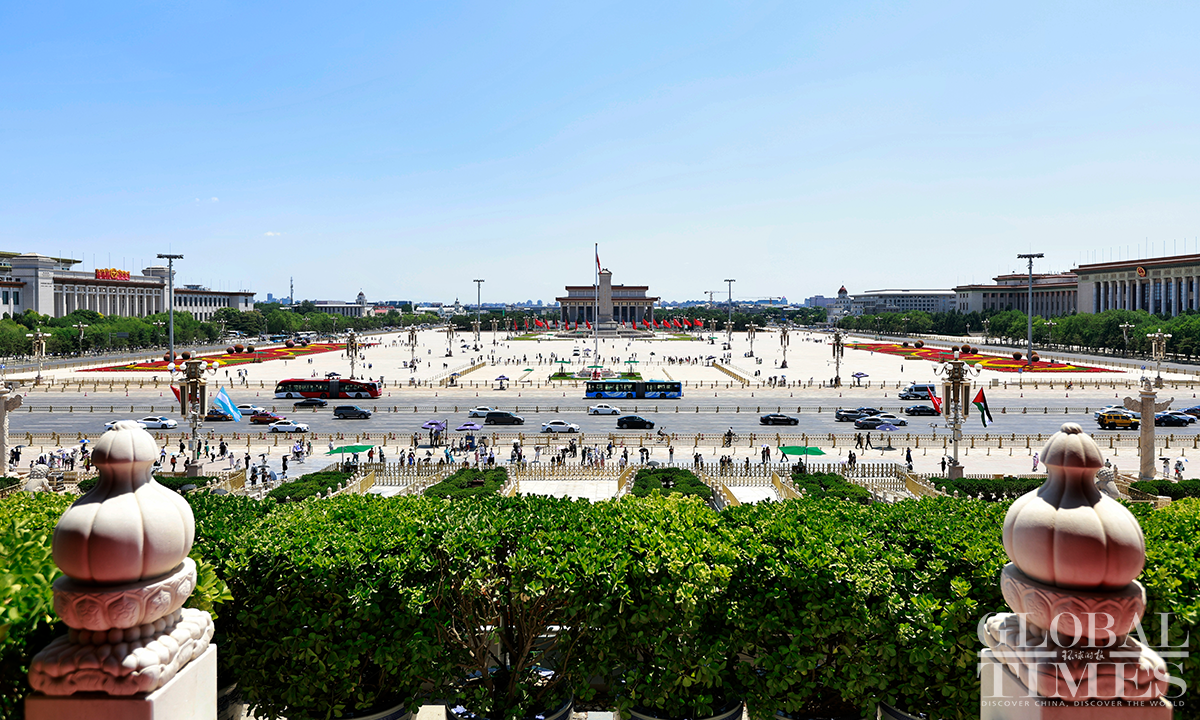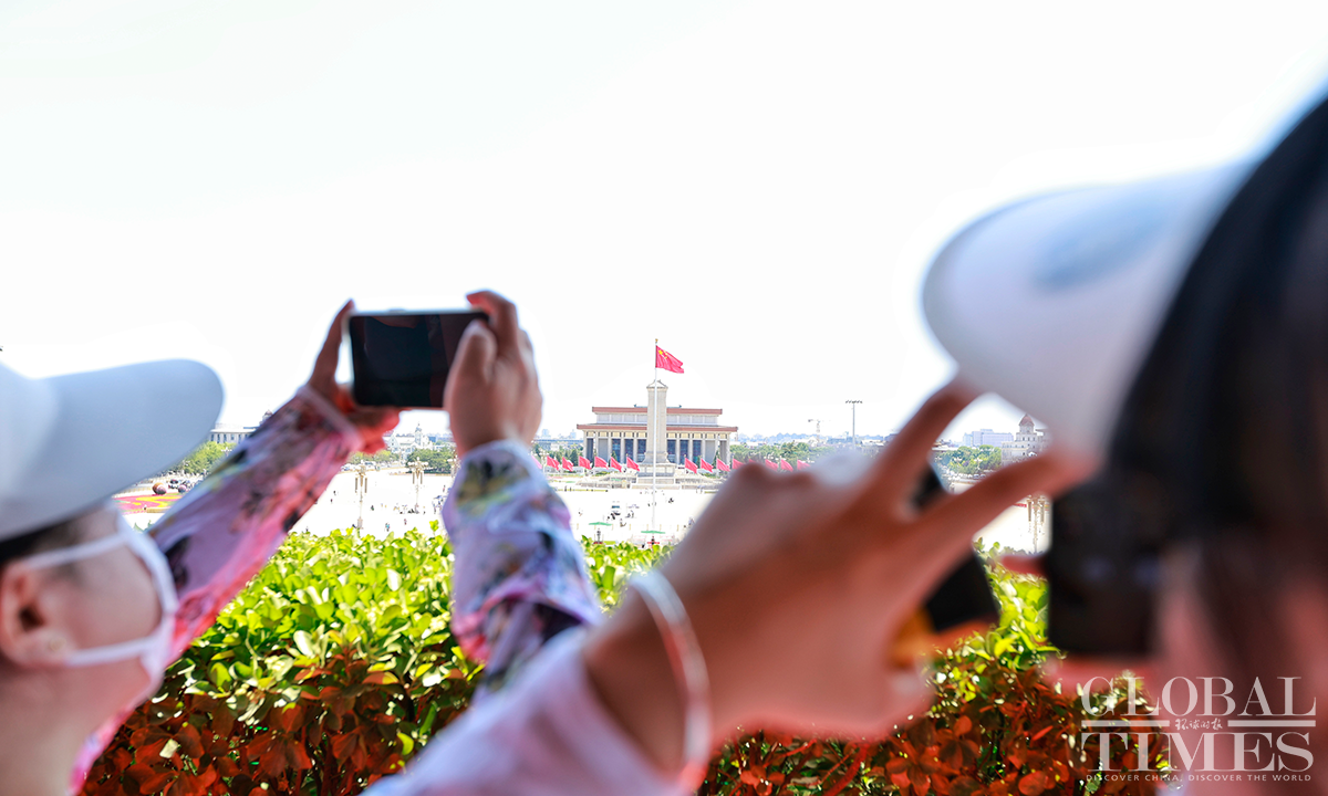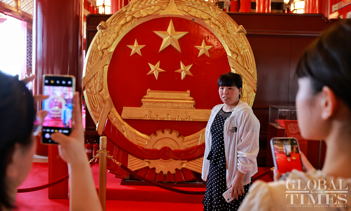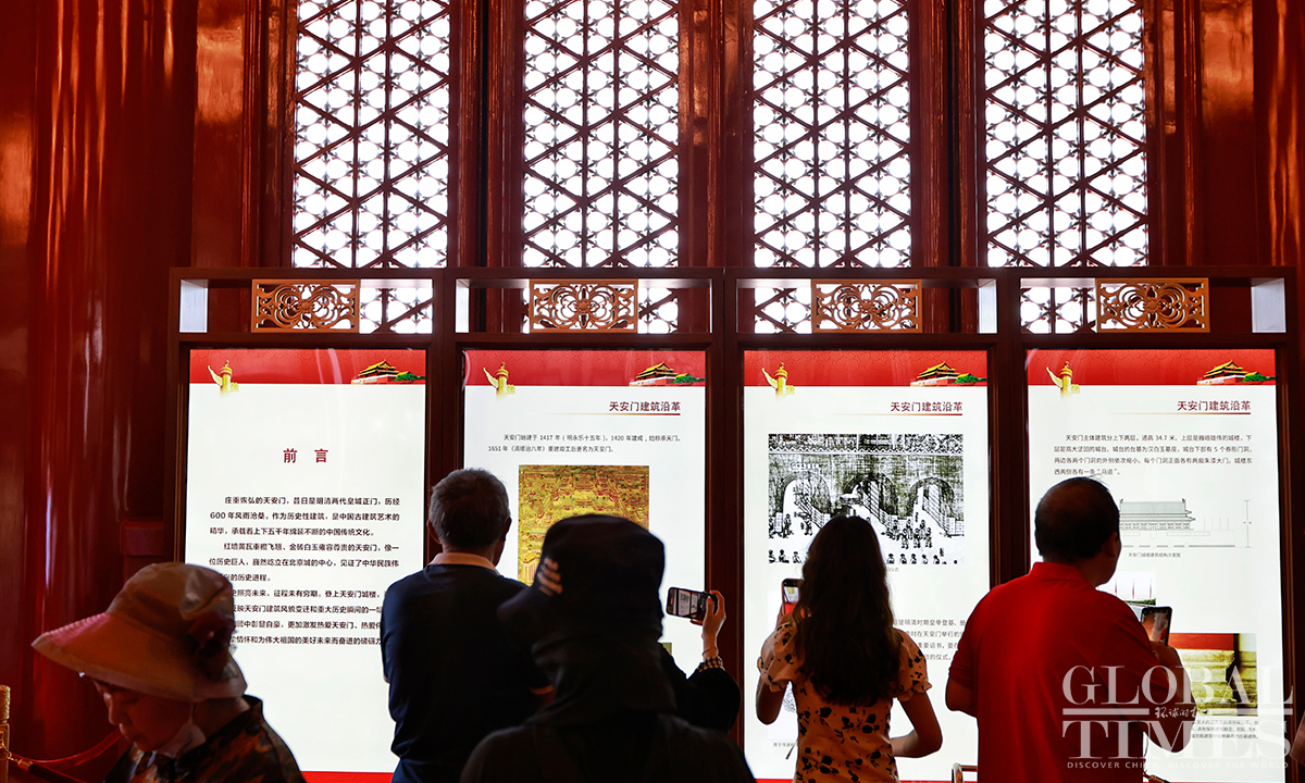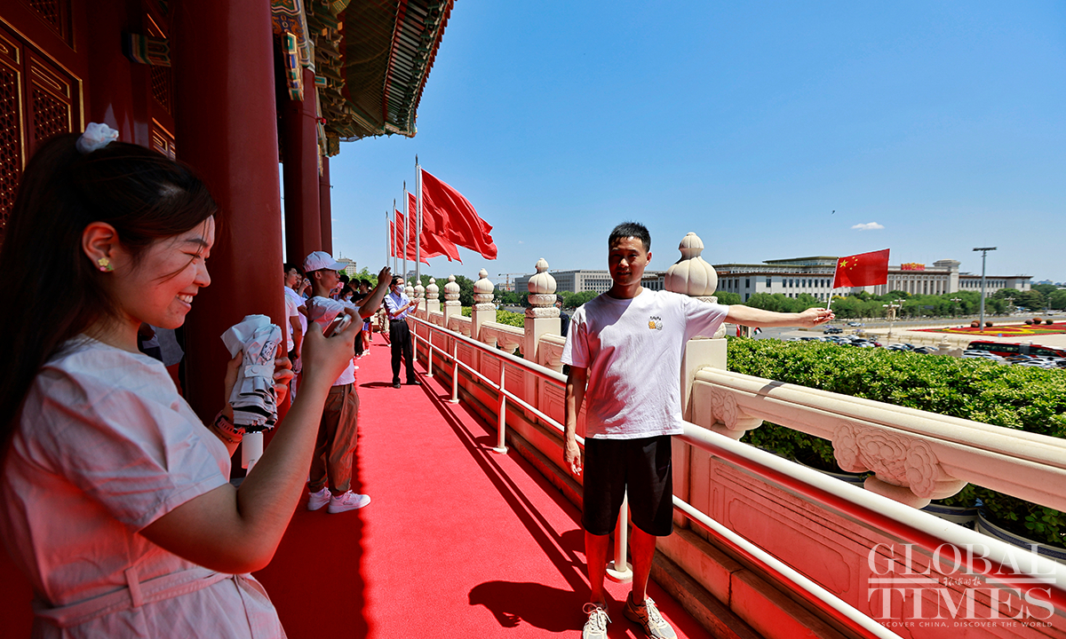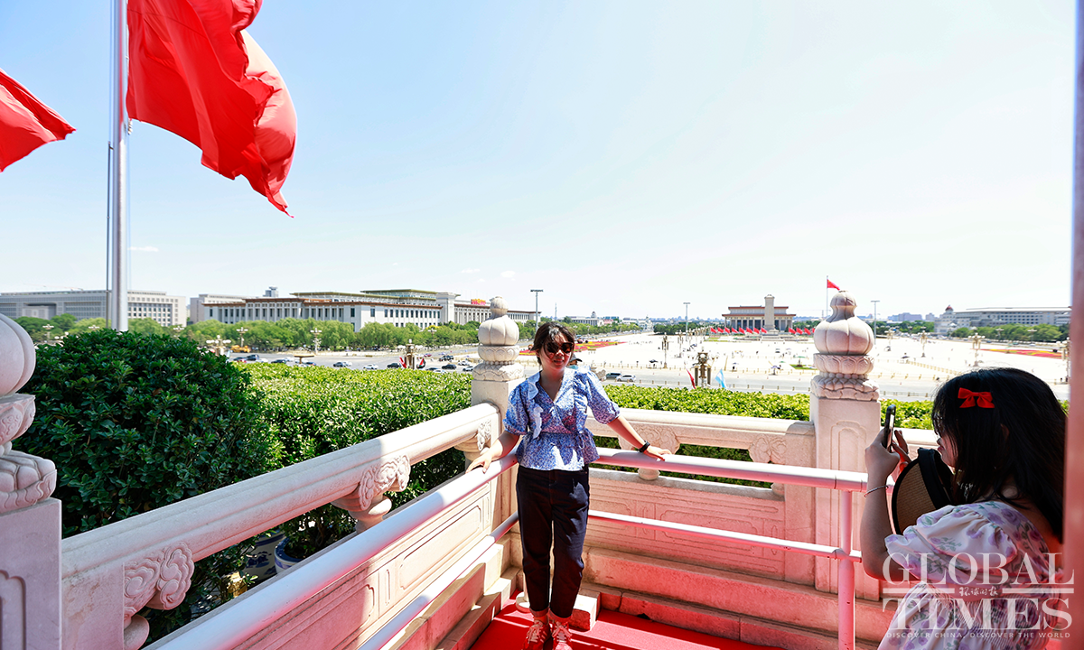Beijing's Gate of Heavenly Peace at the Tiananmen Square reopened for visitors on June 13, 2023, with synchronized resumption of appointment bookings. Visitors are required to make a real-name reservation through official channels one day in advance and present valid identification documents. Since the reopening, there has been a surge in enthusiasm among tourists, with all tickets "fully booked" from June 13 to June 20. Photos: Li Hao/GT