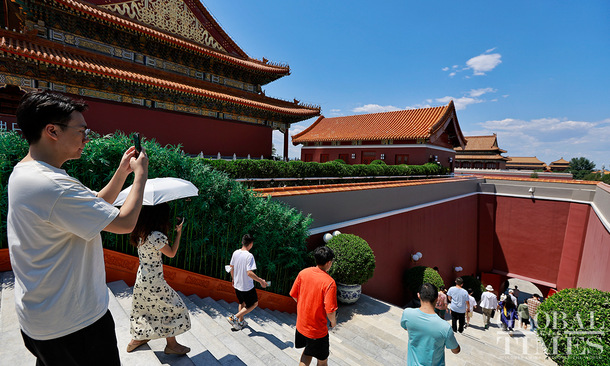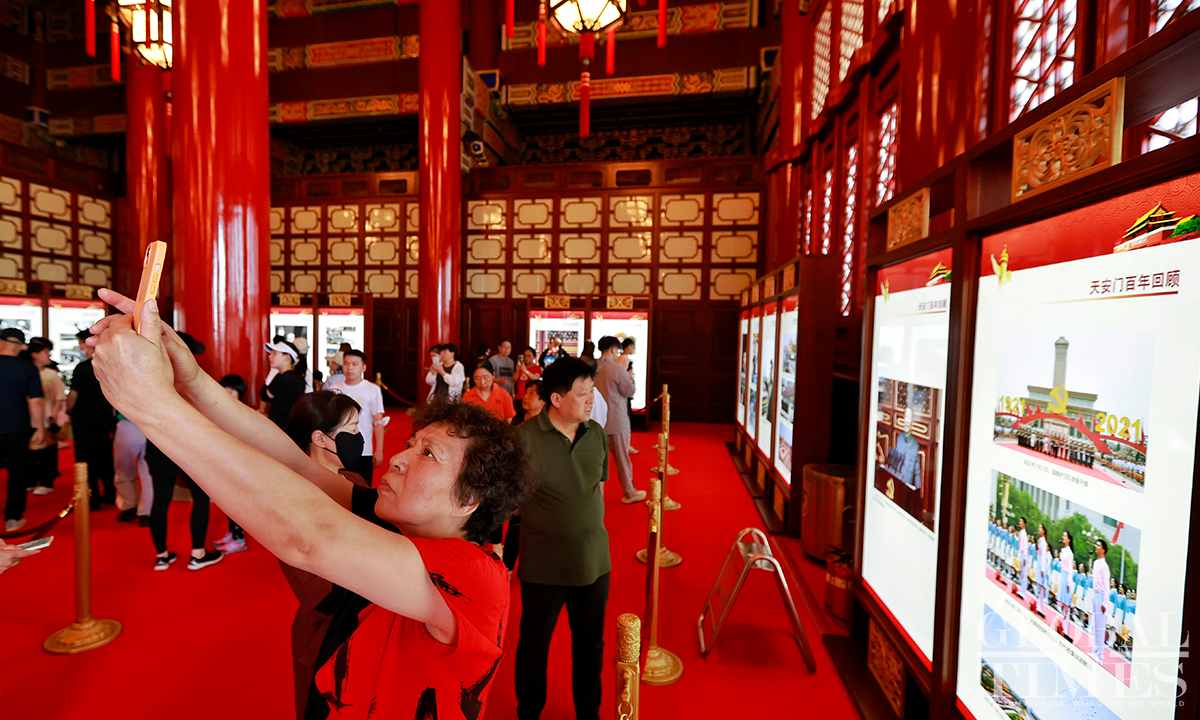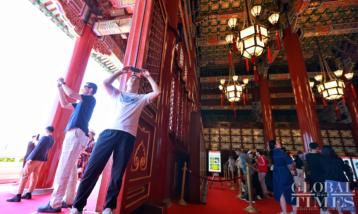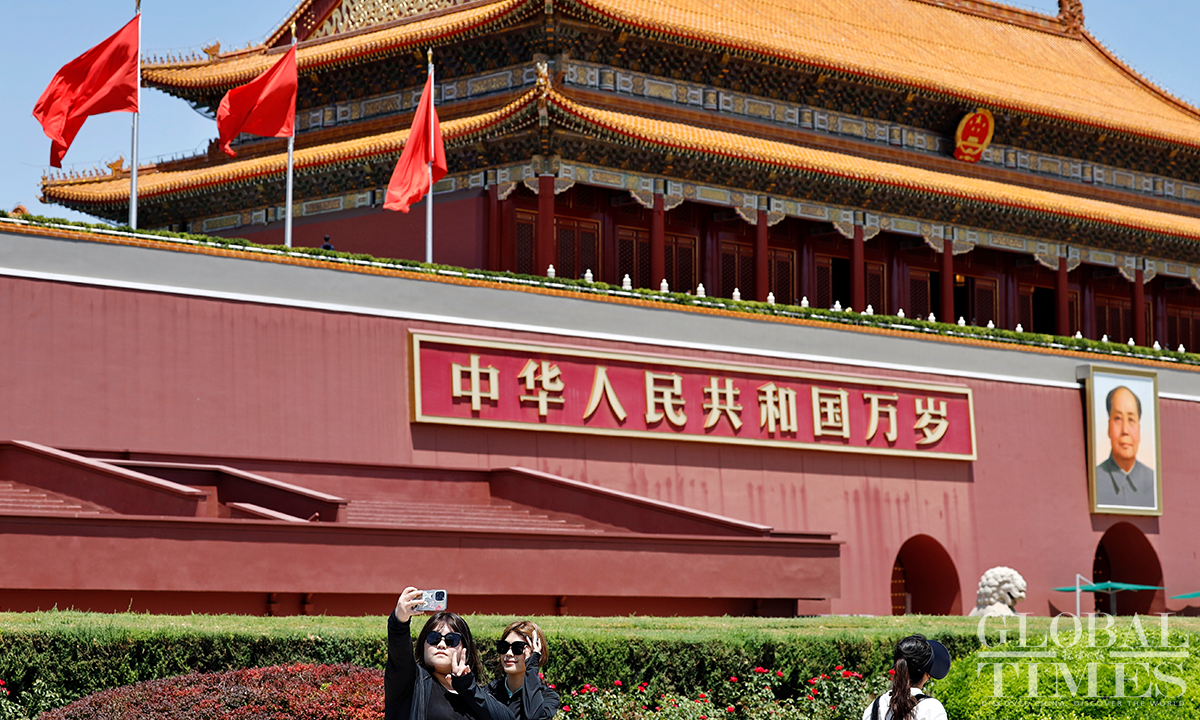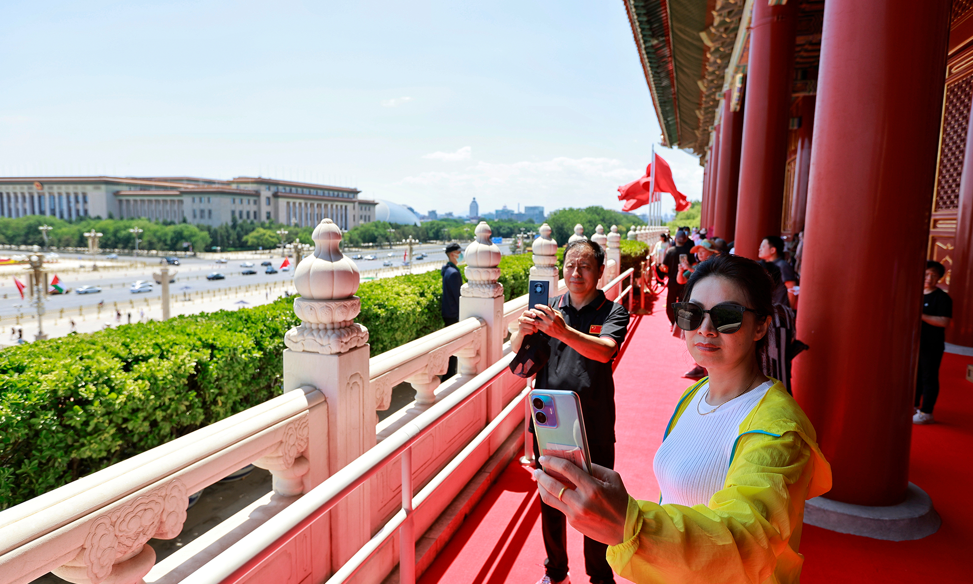 Beijing's Gate of Heavenly Peace at the Tiananmen Square reopened for visitors on June 13, 2023, with synchronized resumption of appointment bookings. Visitors are required to make a real-name reservation through official channels one day in advance and present valid identification documents. Since the reopening, there has been a surge in enthusiasm among tourists, with all tickets "fully booked" from June 13 to June 20. Photos: Li Hao/GT
