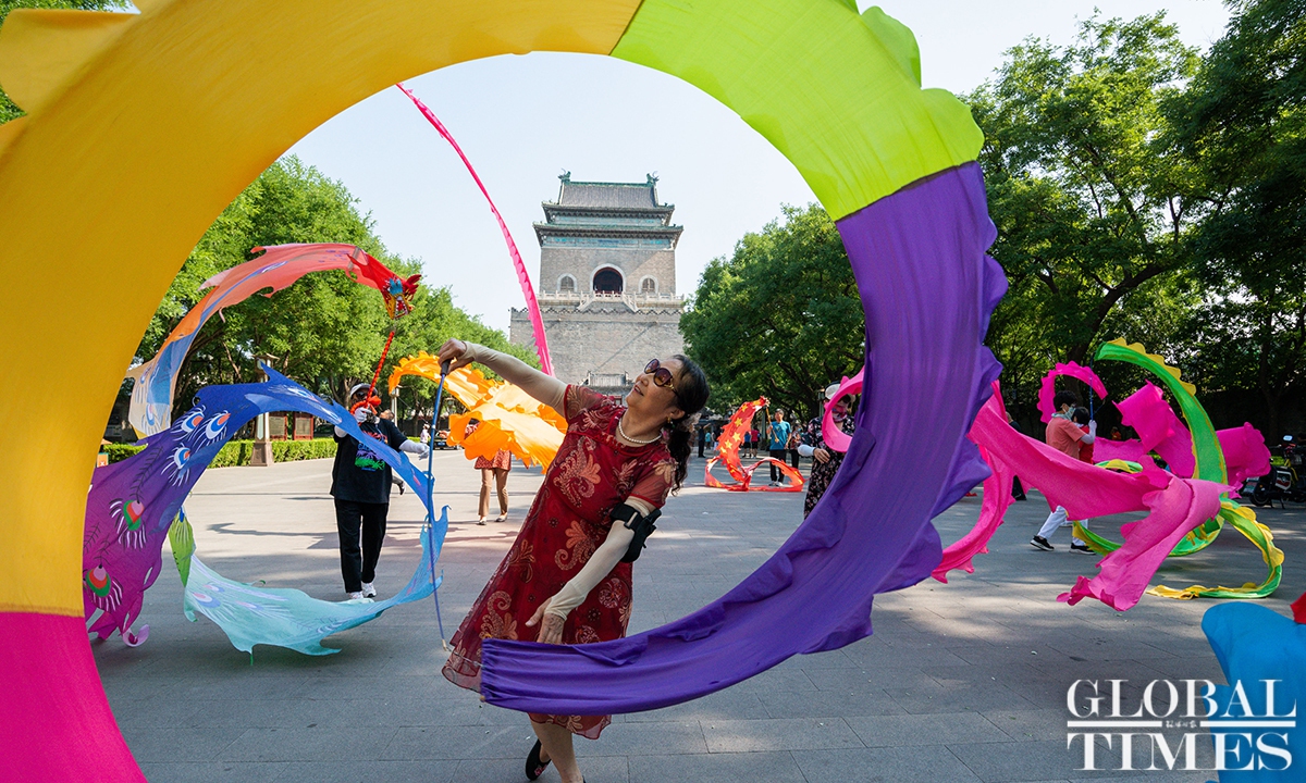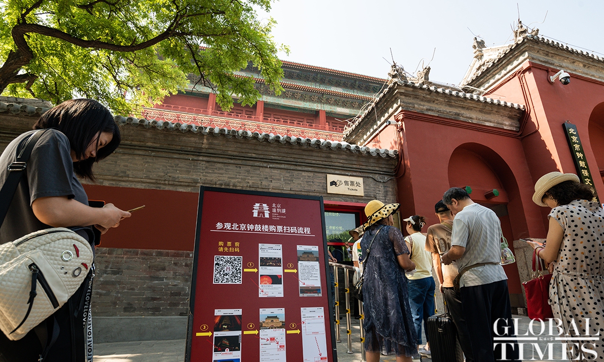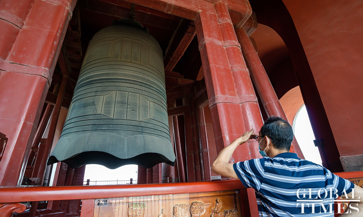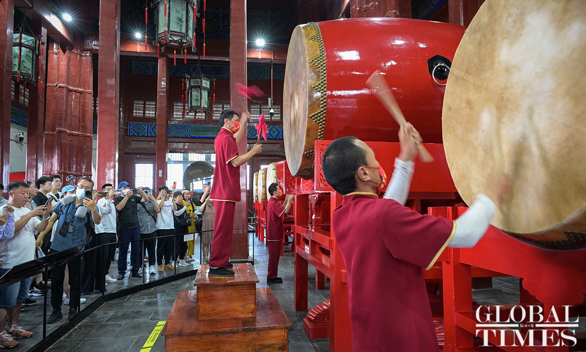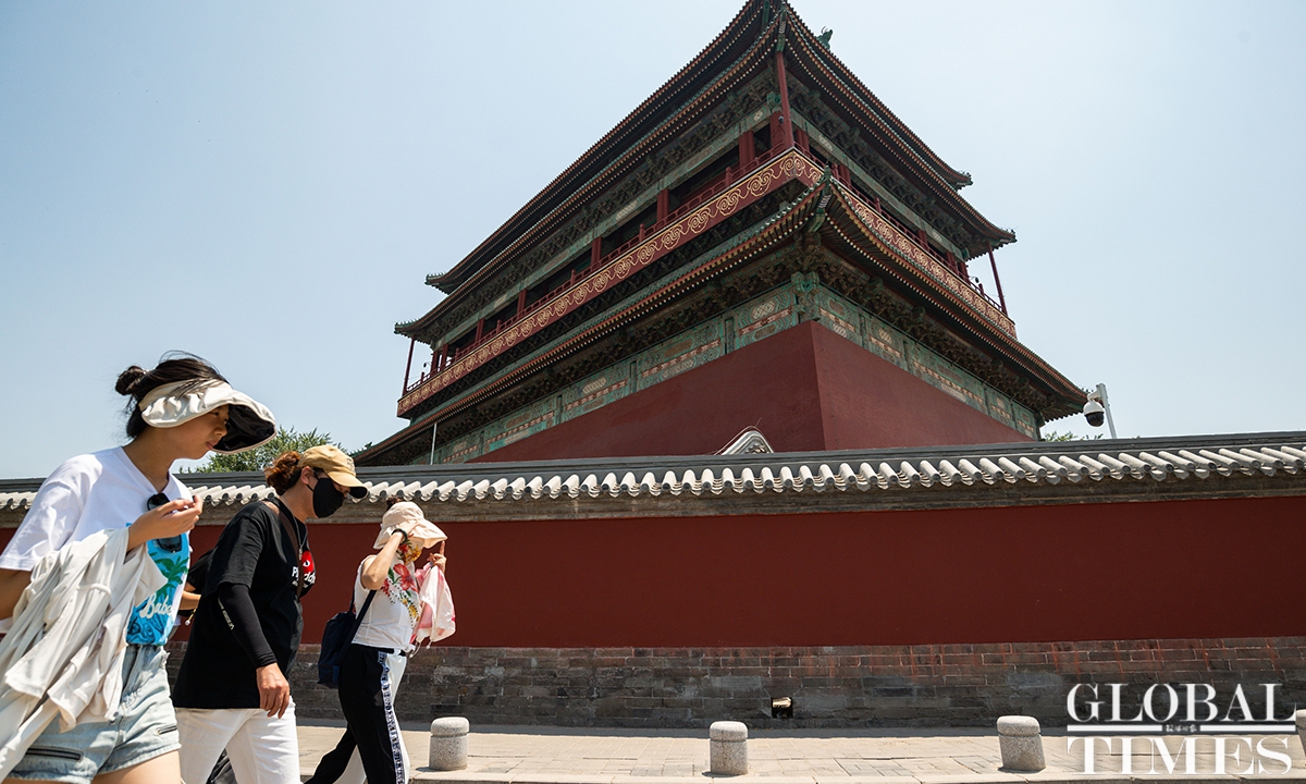 Despite the high temperature, tourists visited the Drum Tower and the Bell Tower in Beijing which were reopen to public on Thursday after almost 7 months’ closure. The Drum Tower and the Bell Tower were closed to the public for maintenance on November 19. Photos: Chen Tao/GT