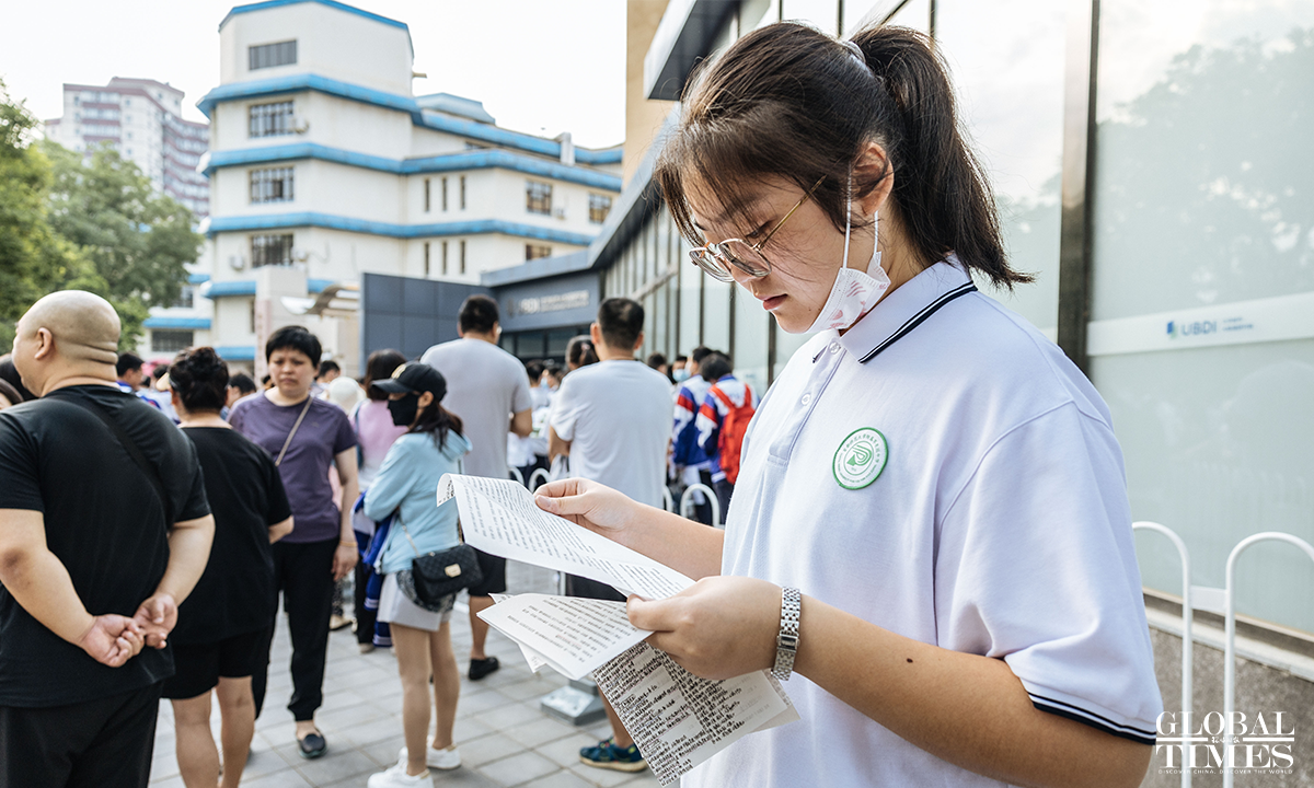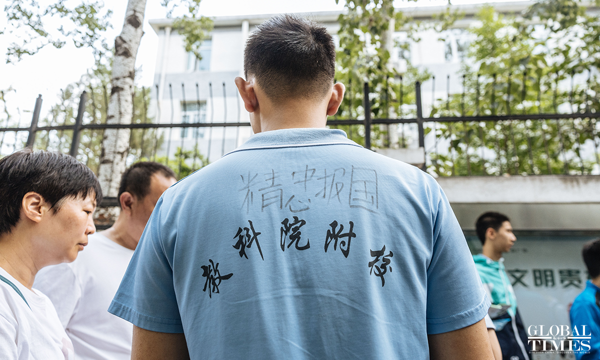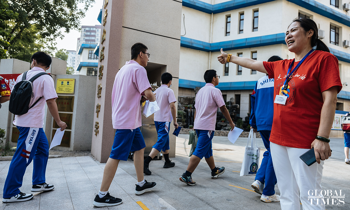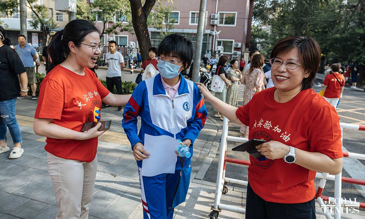 With 224,000 students sitting in the exam, the senior high school entrance examinations kicked off in Beijing on Saturday amid scorching temperatures of up to 40 C. A Global Times reporter saw that at one of the exam centers, the Shijingshan Experimental Middle School, students entered in an orderly manner. This year, the manual security checks have been added, with students required to pass through a metal detector before entering the exam center, and electronic devices such as mobile phones are strictly prohibited. Photos: Li Hao/GT