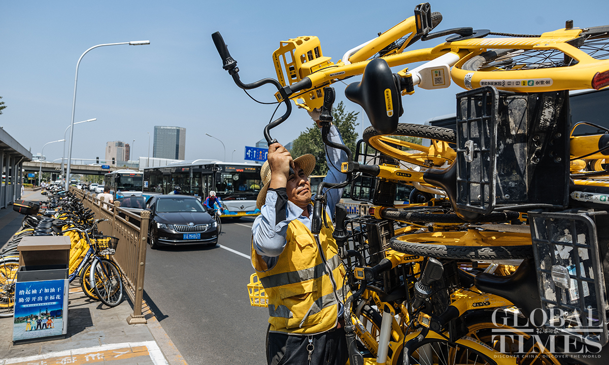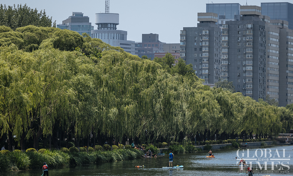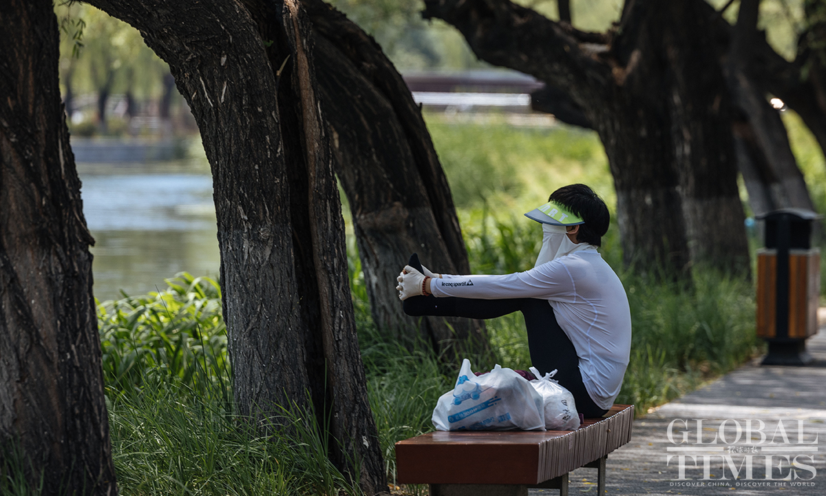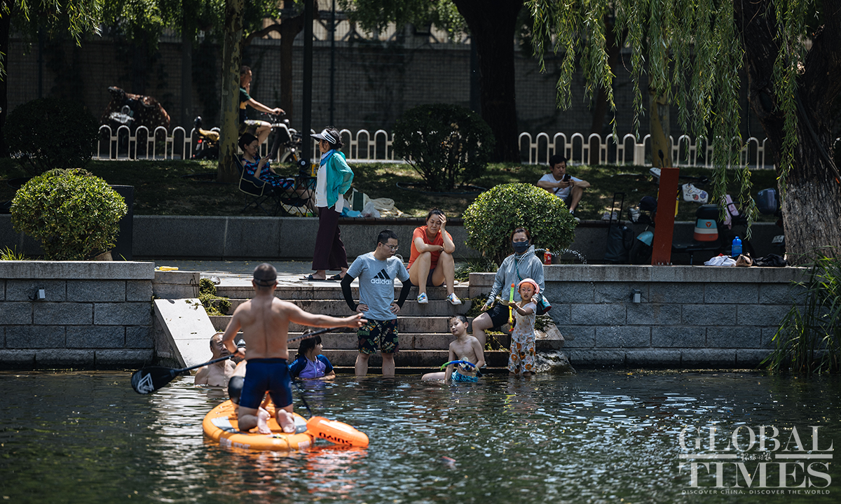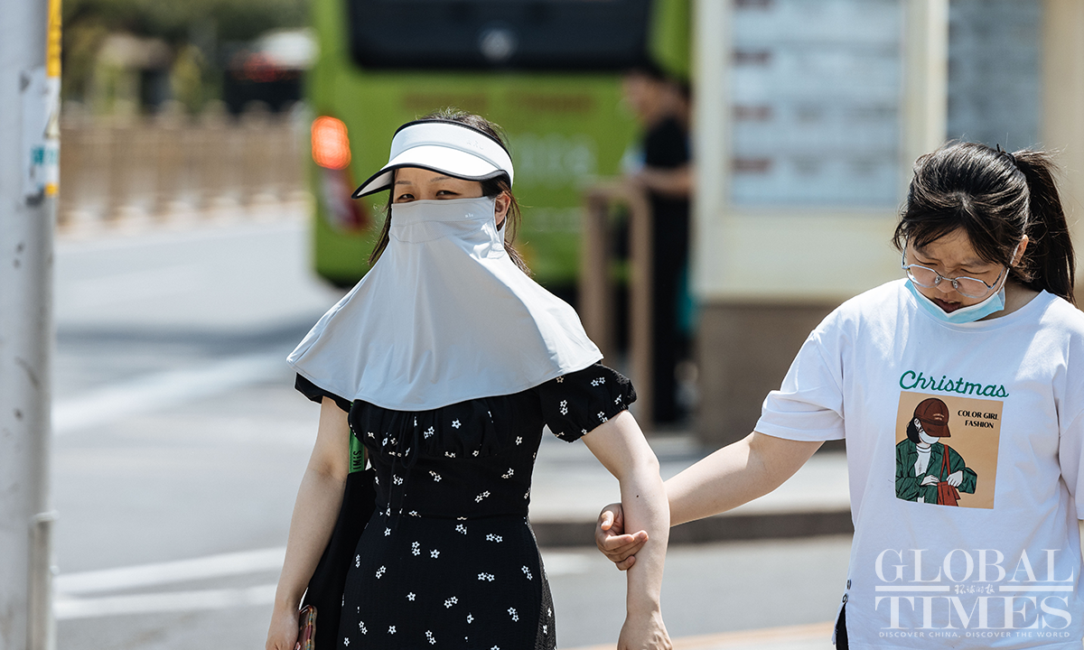 Residents in Beijing take various protective measures to cope with scorching heat. On June 23, 2023, the Beijing Municipal Meteorological Observatory issued a red alert for high temperatures in the Chinese capital, where peak temperatures were expected to hit as high as 40 C. Photos: Li Hao/GT