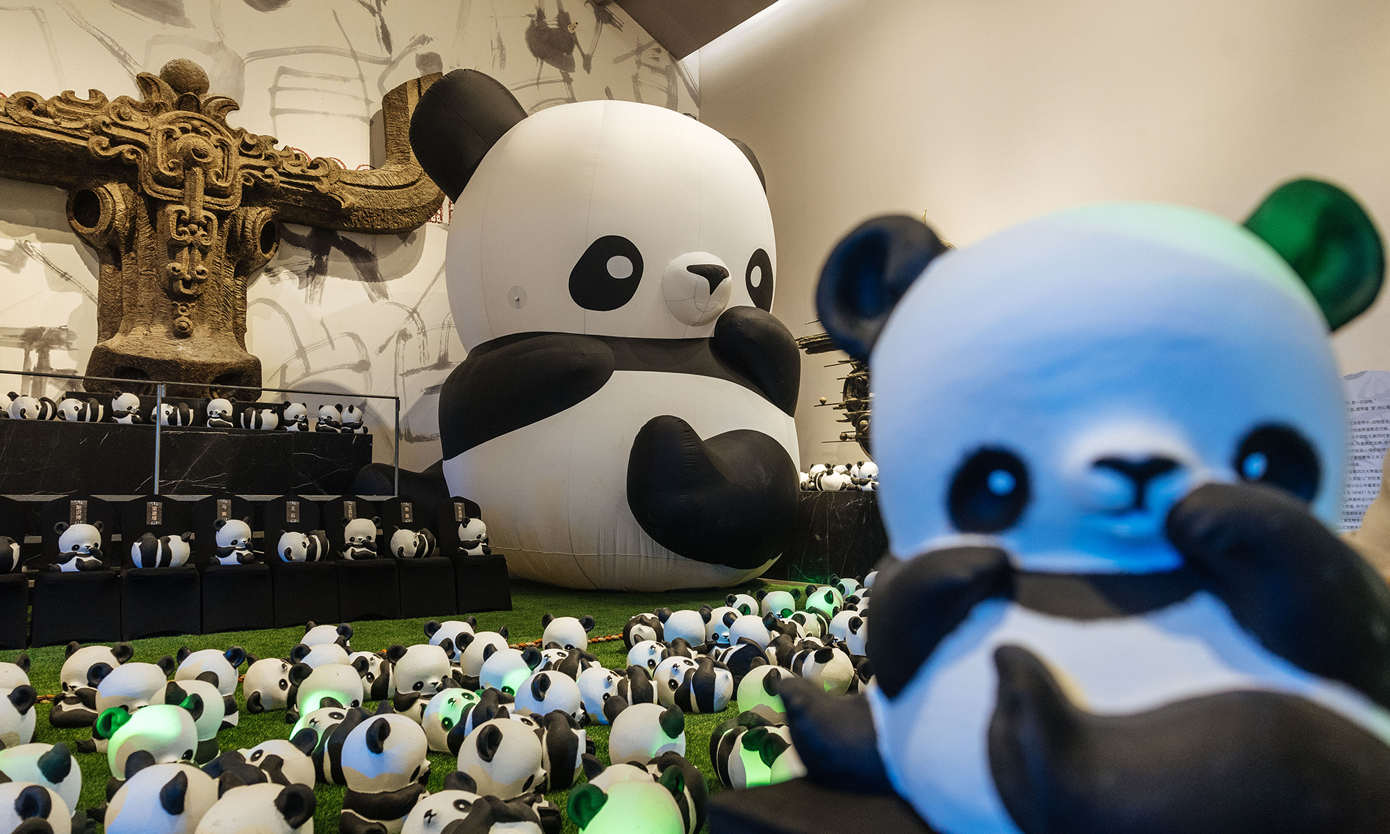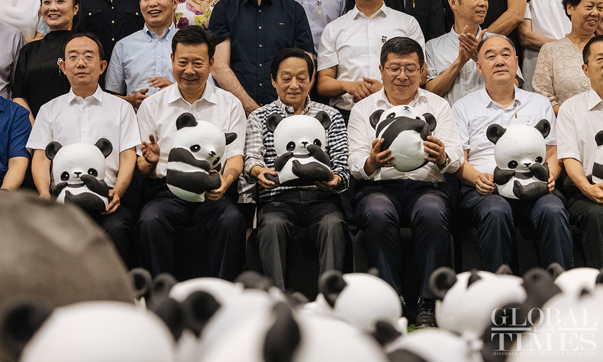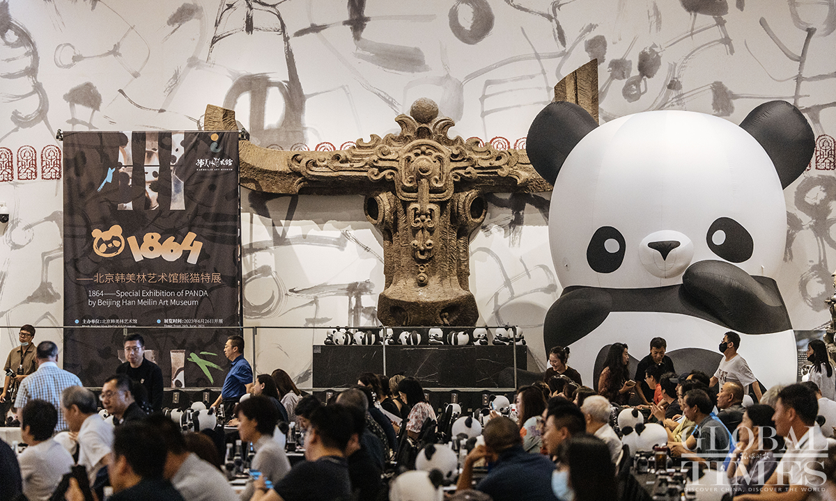 The launch ceremony for the Beijing Han Meilin Art Museum's 15th anniversary was held in Beijing on June 25, 2023. Han Meilin is a renowned art master both domestically and internationally, with remarkable achievements in calligraphy, painting, sculpture, ceramics, and design. On June 26, 2023, the renovated and upgraded museum will officially reopen to the public. At the same time, the "1864 - Special Exhibition of PANDA by Beijing Han Meilin Art Museum" will also open. The exhibition showcases Han Meilin's creative concept of "harmonious coexistence between humans and nature, and the integration of art and nature," while highlighting the number of wild pandas discovered during the fourth national panda survey, which is 1864. Photos: Li Hao/GT