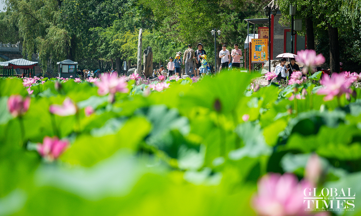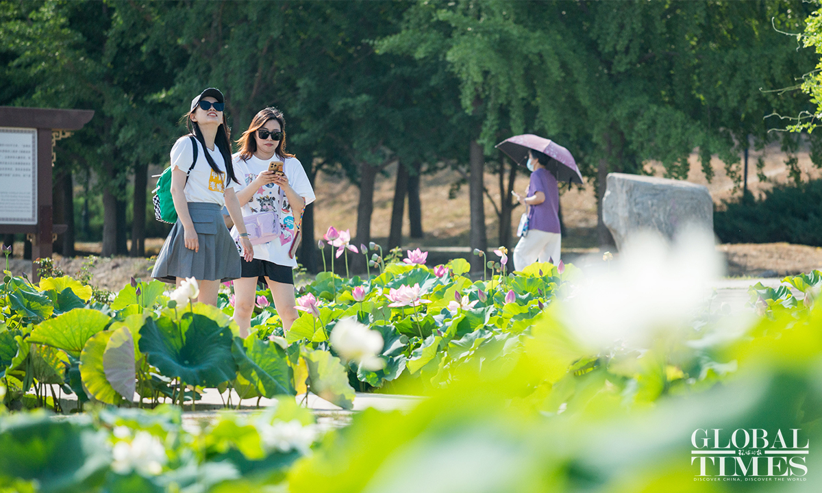 The 28th Lotus Festival of the Yuanmingyuan Ruins Park opens on June 29 and will last until August 21. Renowned as a royal garden of the Qing Dynasty (1644-1911), Yuanmingyuan, or the Old Summer Palace, is known for its enchanting lotus flowers. More than 200 lotus species are cultivated there, covering over 1,000 acres. During the festival, visitors can also enjoy various lotus-related cultural activities. (Photos: Chen Tao/GT)