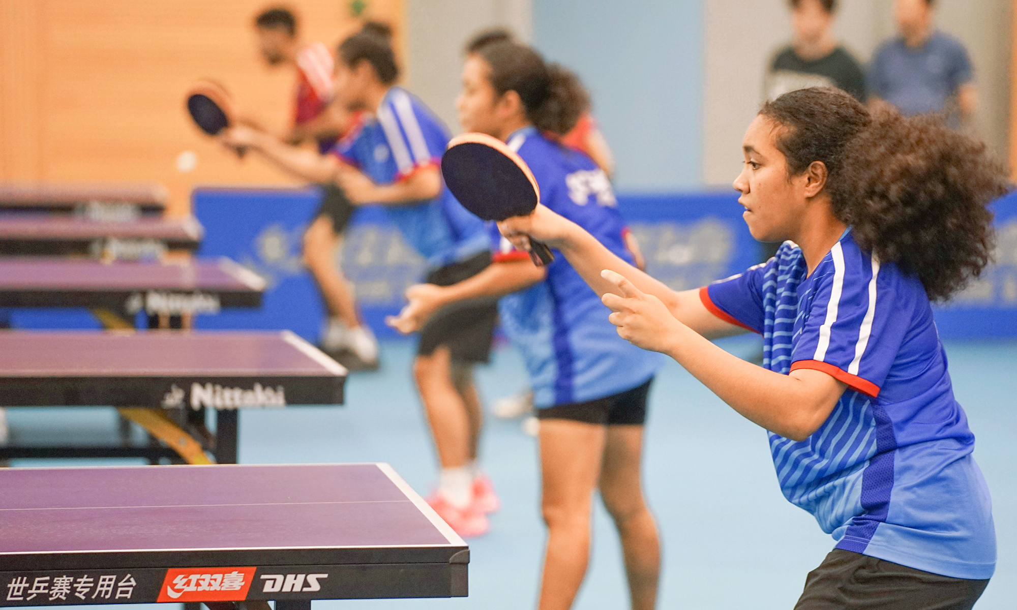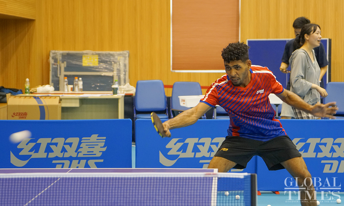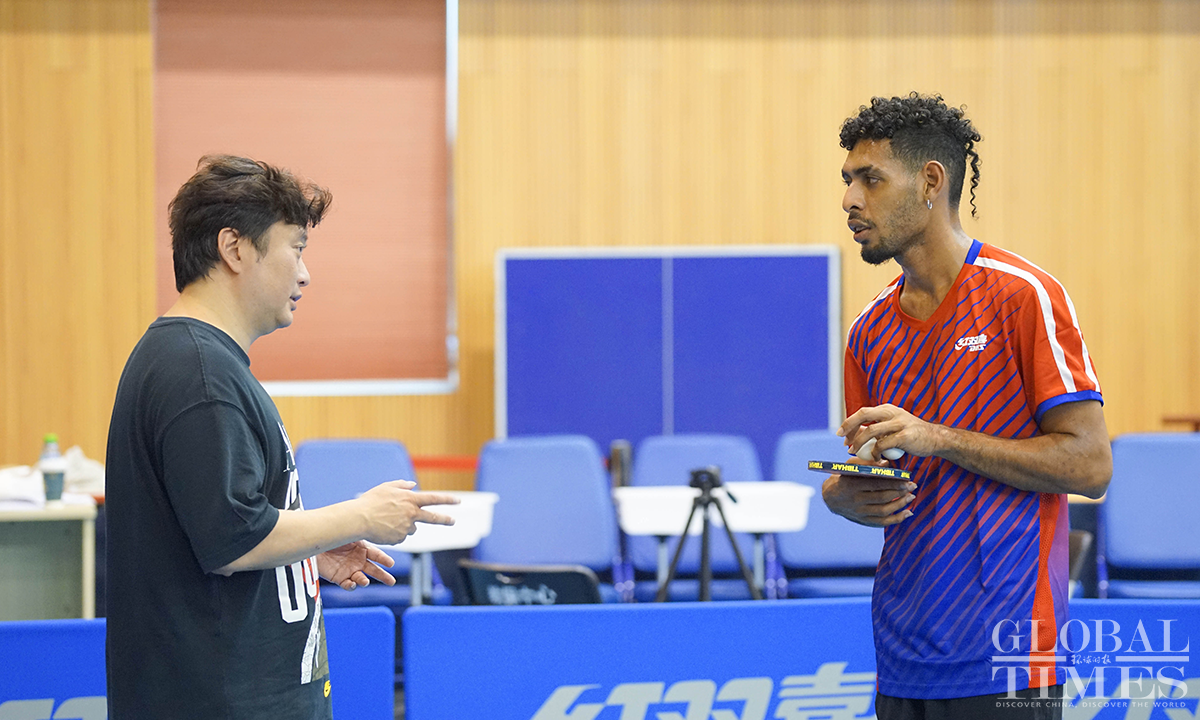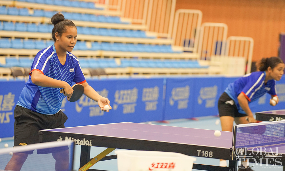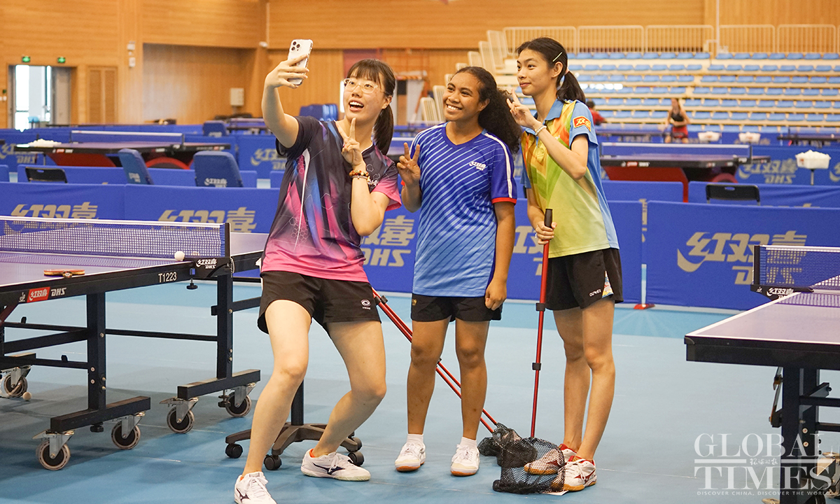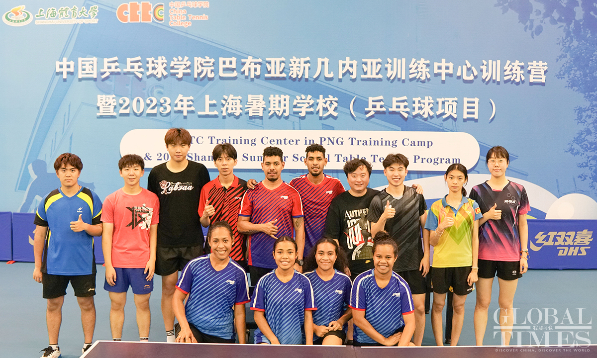 Eight Ping-Pong players from the national team of Papua New Guinea (PNG) are receiving training at the China Table Tennis College of Shanghai University of Sport. The one-month training camp for PNG athletes is part of the project "China Table Tennis College Training Center in PNG," which was set up in 2018 with the support of the Chinese and PNG governments and the expectations of ping-pong enthusiasts from both countries. The project helped PNG players win two silver medals at the 2019 Pacific Games, the best-ever result in PNG history. China and PNG signed the Belt and Road Initiative (BRI) MoU on June 22, 2018. PNG is the first country in the South Pacific to sign an MoU on the construction of the China-proposed BRI. Photos: Lu Ting/GT