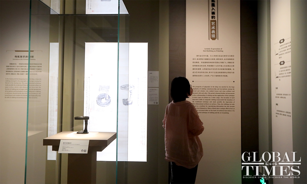 As a vital documentary medium in Chinese history, bronze and stone artifacts started to record important information before the Qin Dynasty (221BC–206BC). In order to preserve and spread the information on these artifacts, ancient Chinese developed rubbing, a simple yet productive technique for duplicating the information. (Photo: Chen Xia/GT)