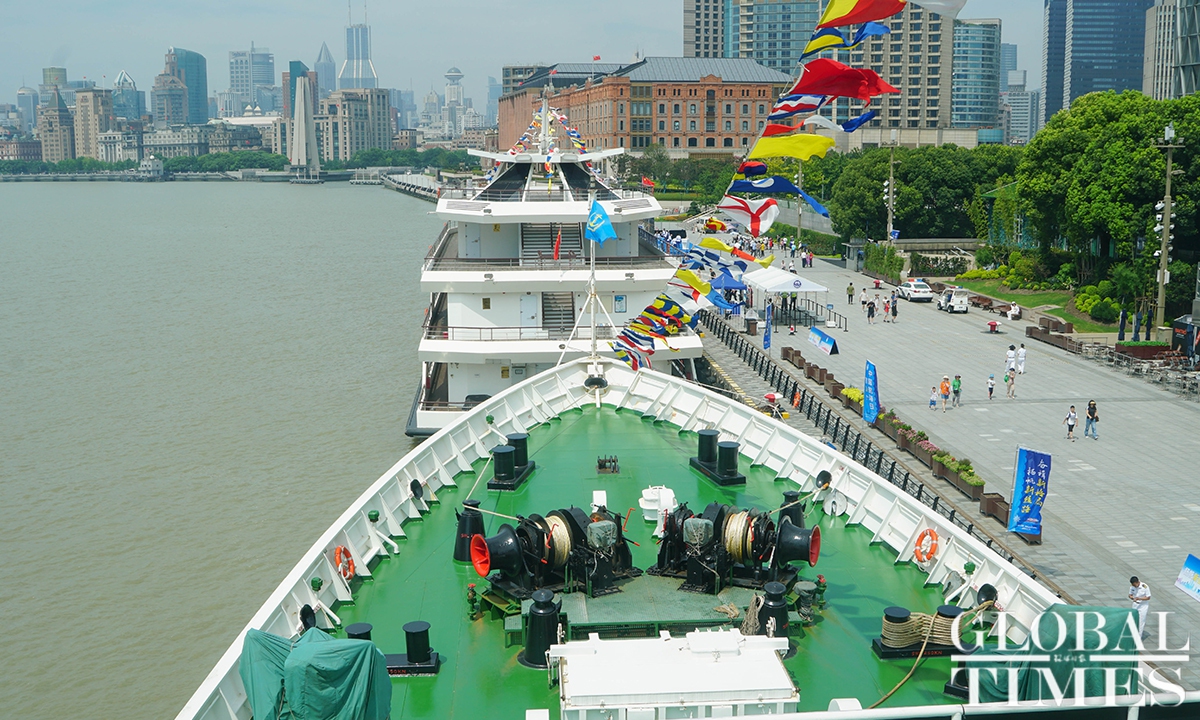 Patrol ship, icebreaker open to public in Shanghai to celebrate China Maritime Day