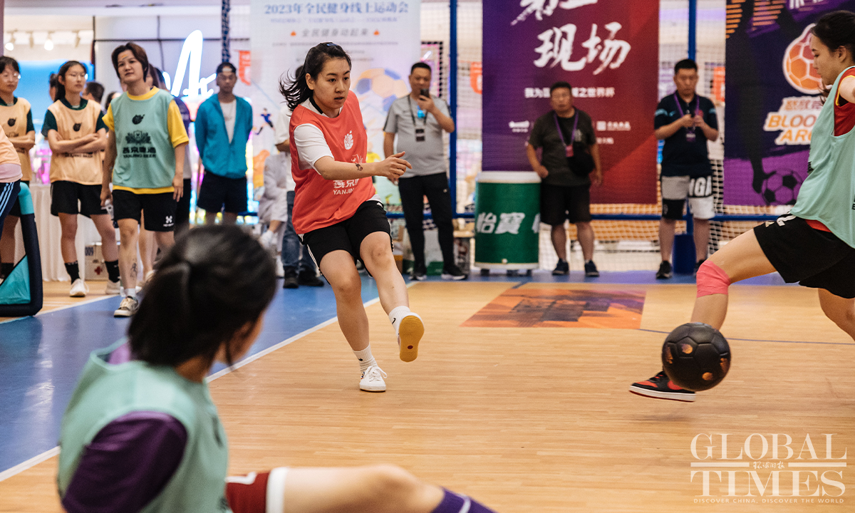 The opening of Women's World Cup has ignited Chinese people's passion for football. A 3v3 indoor women's football competition is held in Beijing on July 22, 2023, attracting citizens to watch the exciting games. The competition is China's first women's street football event. Photos: Li Hao/GT