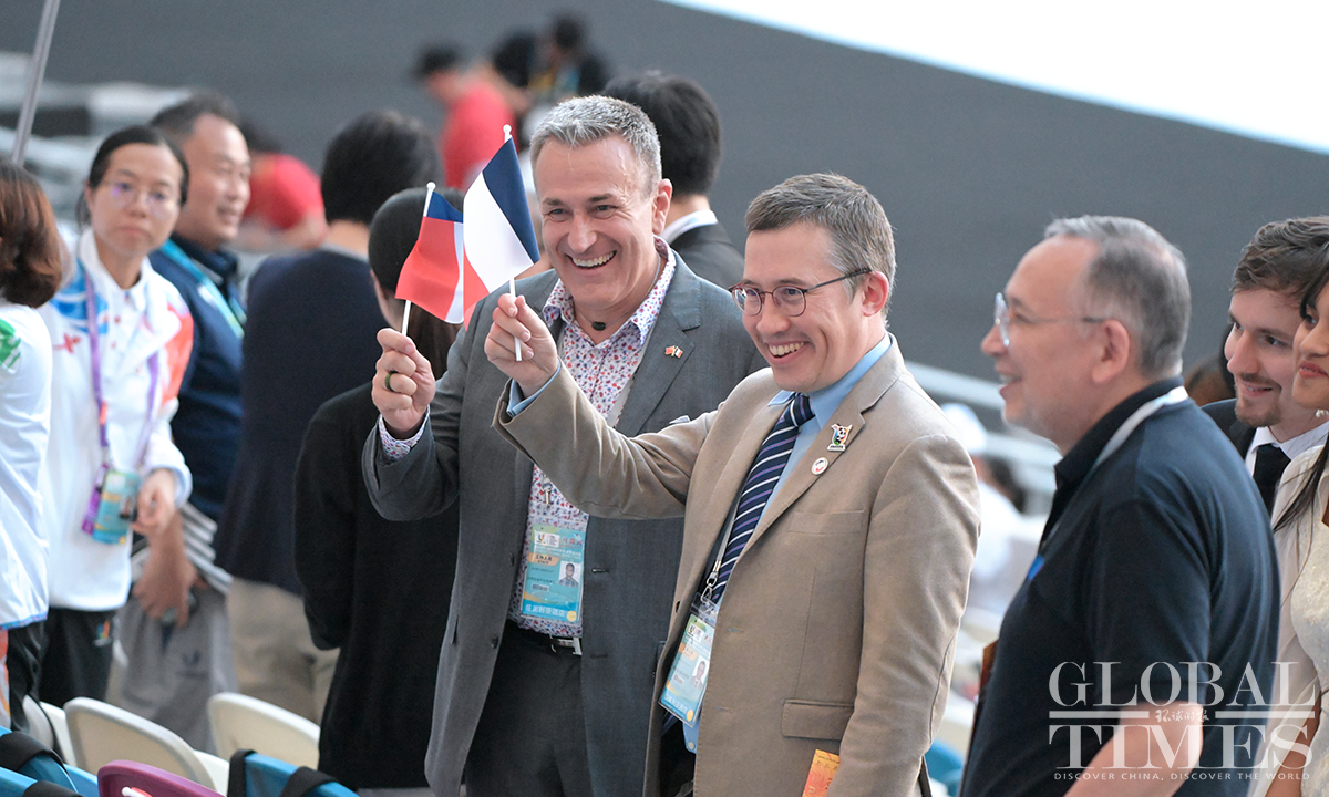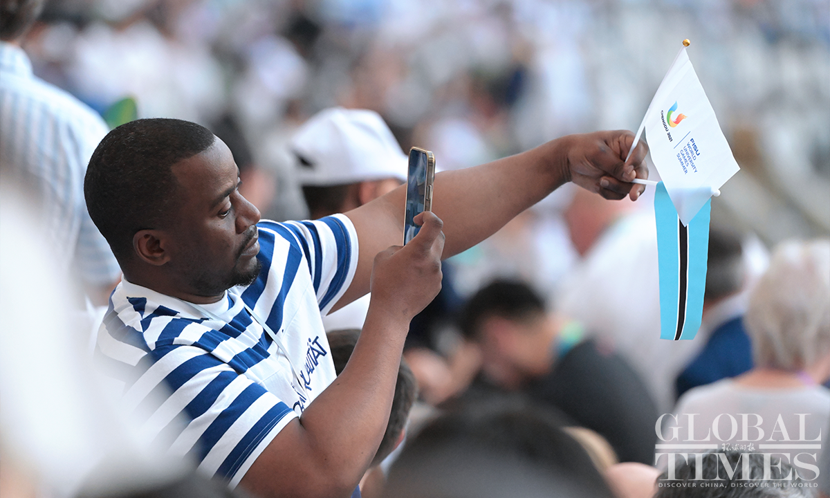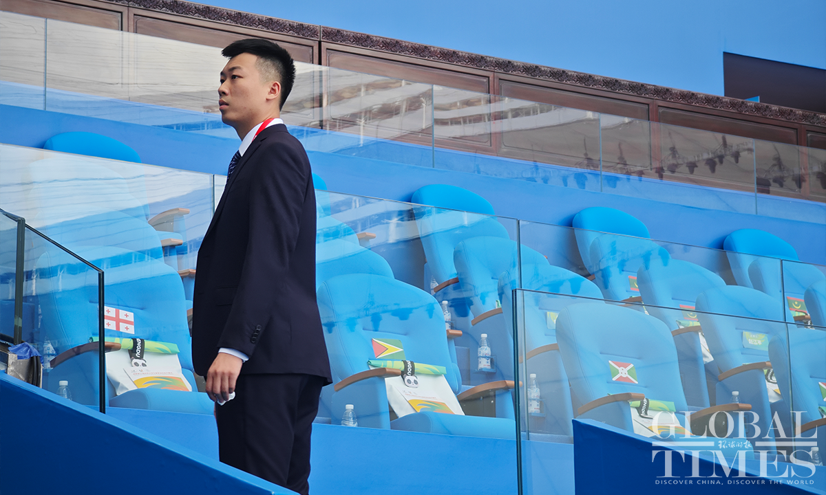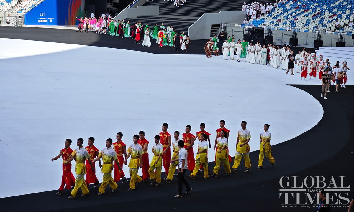 The Dong'an Lake Sports Park Stadium is designed with the theme of "bird of sun god," symbolizing the ancient Shu civilization and the Tianfu culture. The entire venue is in the shape of a circular flying saucer, blending traditional and modern elements, reflecting a sense of harmony, space, and the future. It has been recognized as one of the 40 new landmarks in China. Photos: Chen Tao/GT