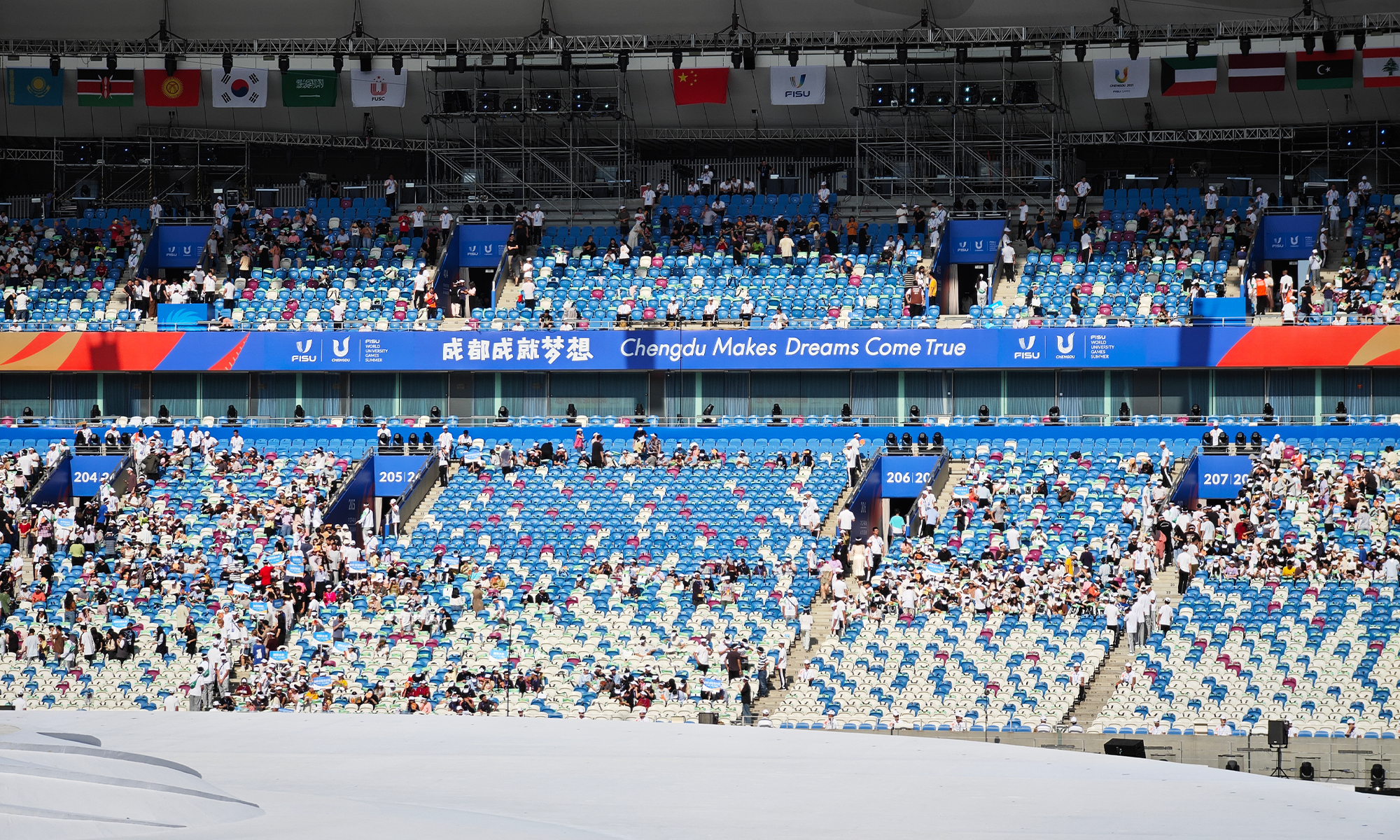 The opening ceremony of the 31st FISU World University Games will take place at 8 pm on July 28, 2023, at the Dong'an Lake Sports Park Stadium in Chengdu, Southwest China's Sichuan Province. At 5 pm, actors, spectators, and reporters gradually entered the venue.
